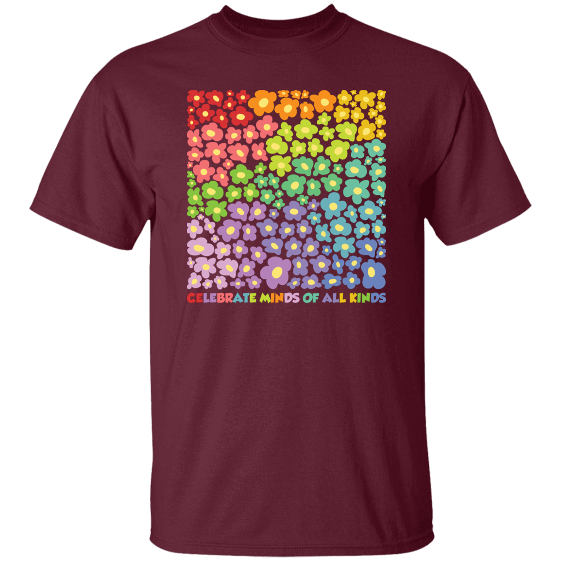 Celebrate Minds Of All Kinds, Colorfull Flower Unisex T-Shirt