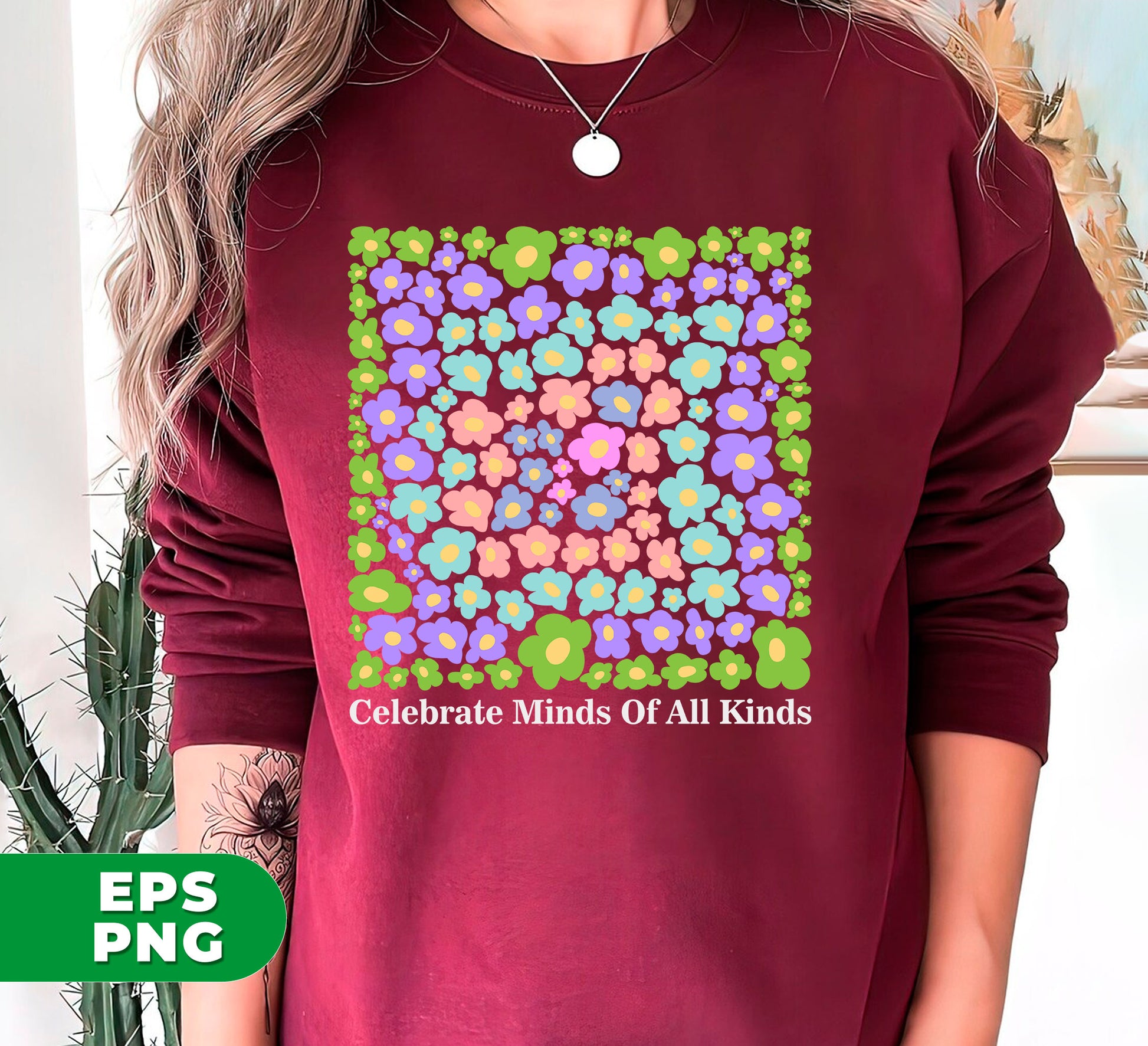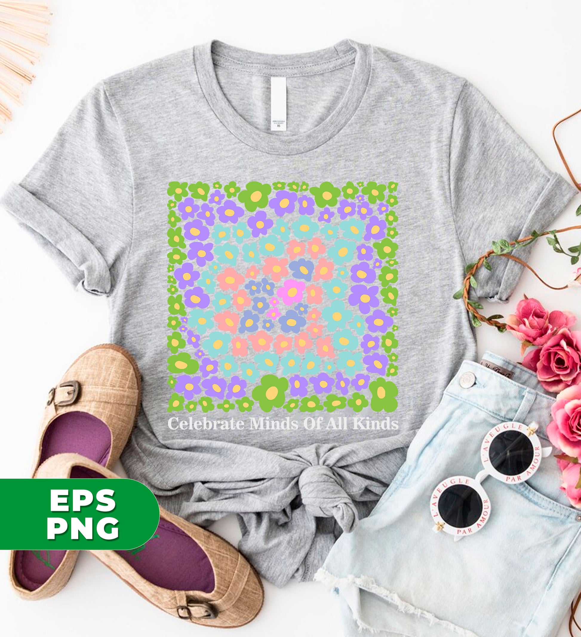 Celebrate Minds Of All Kinds, Love Flower, Colorful Flowers, Digital Files, Png Sublimation