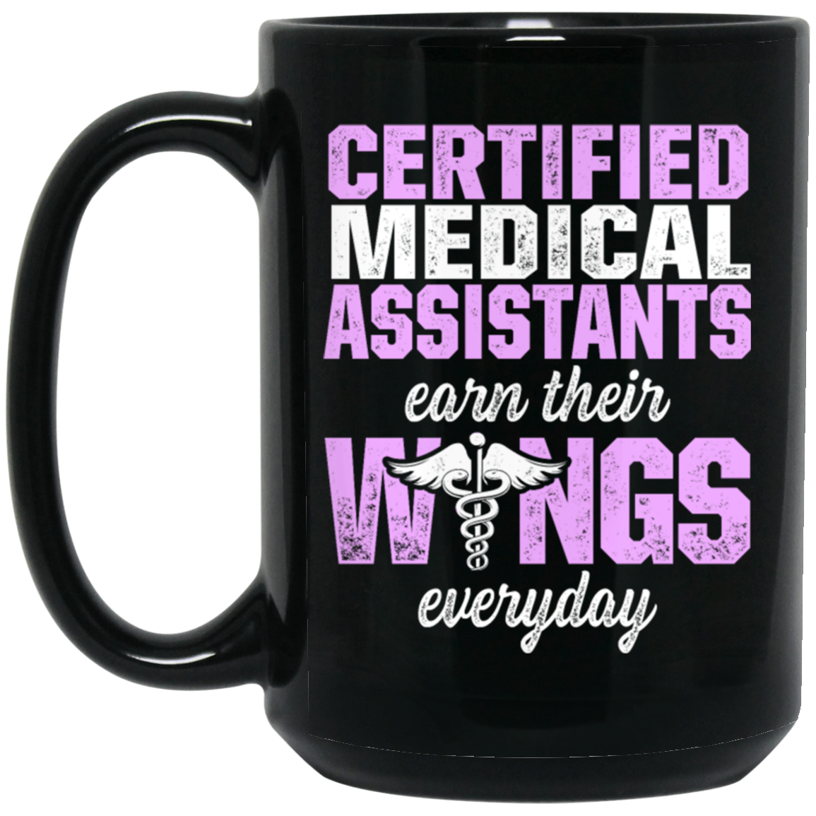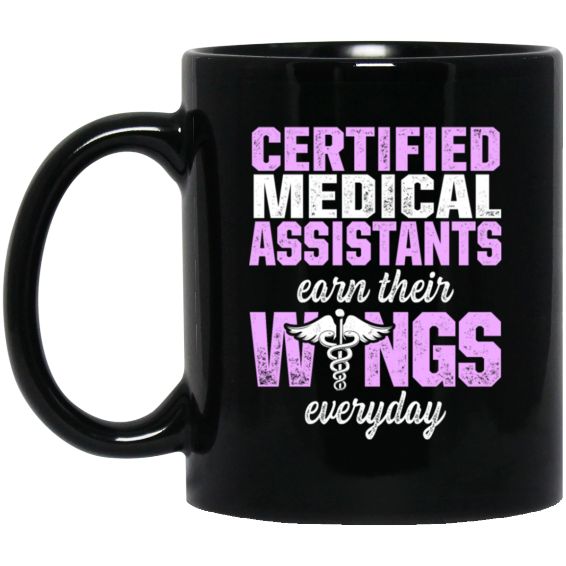 Certified Medical Assistants Earn Wings Everyday, CMA Certified, Doctor Black Mug