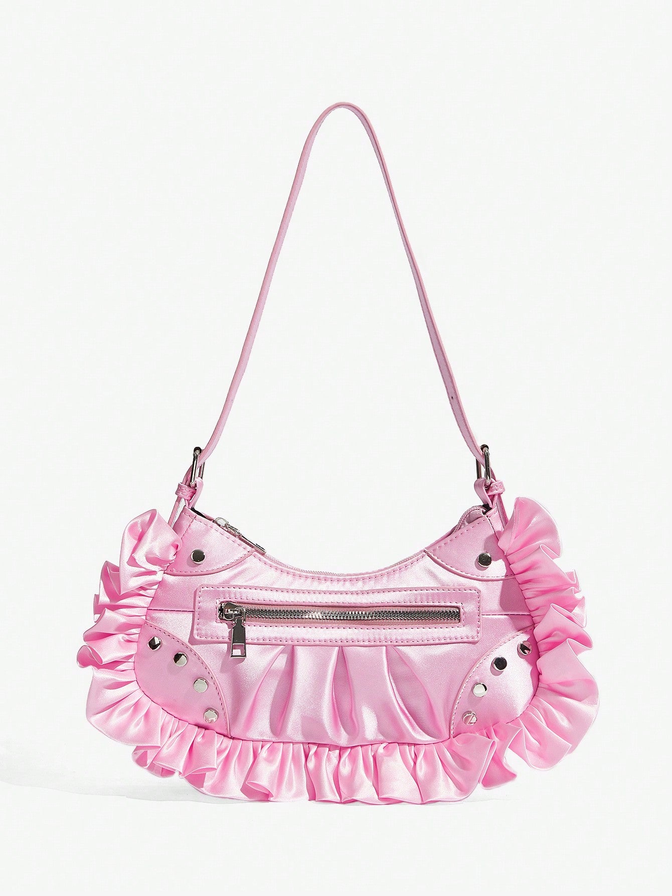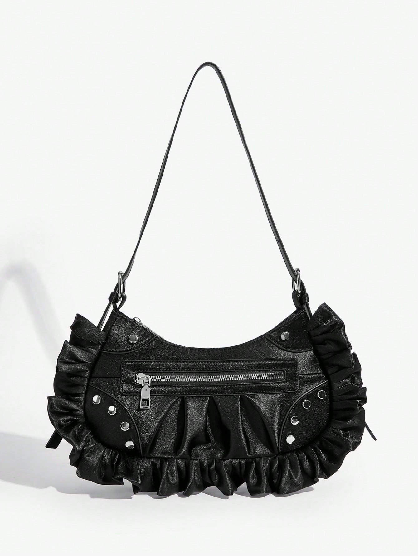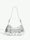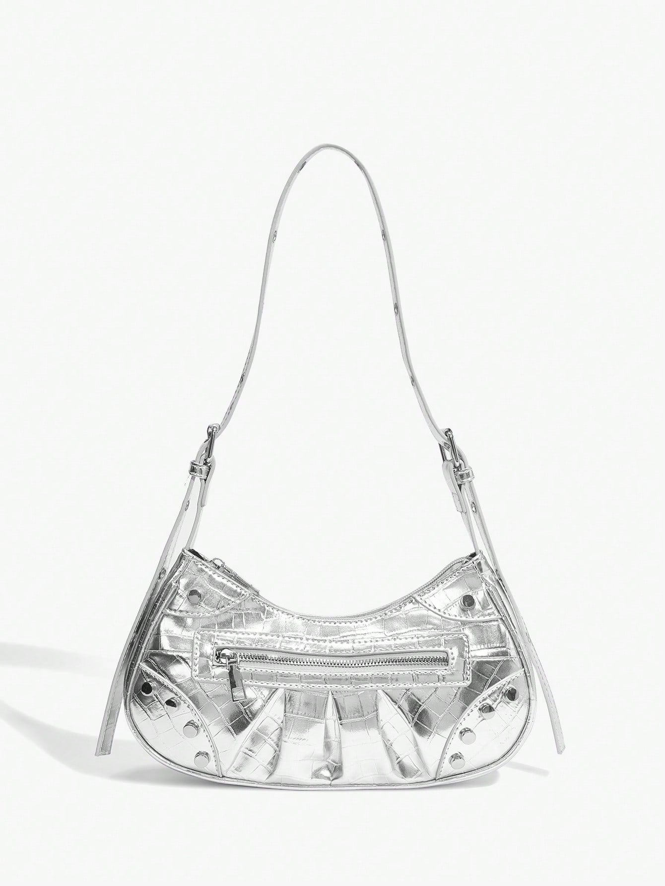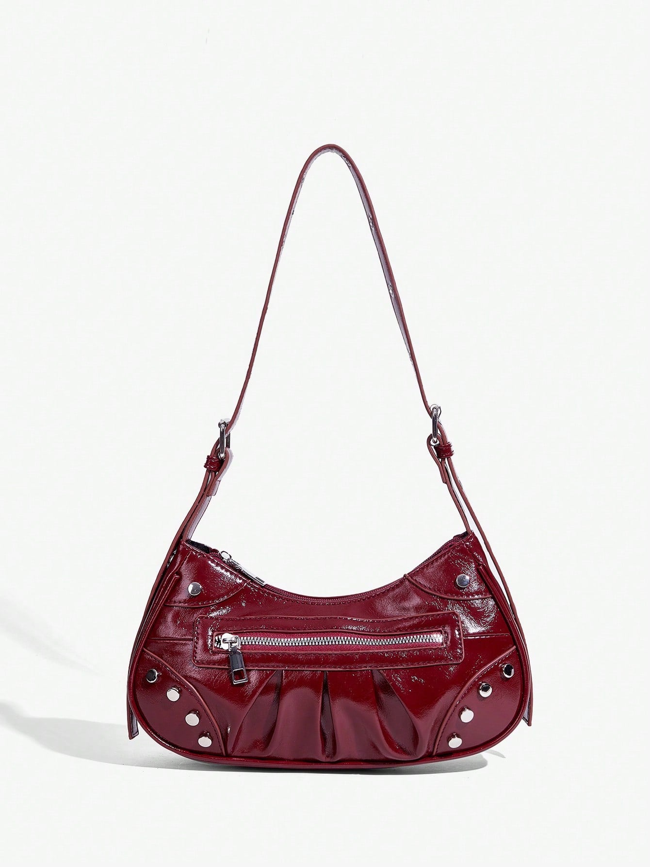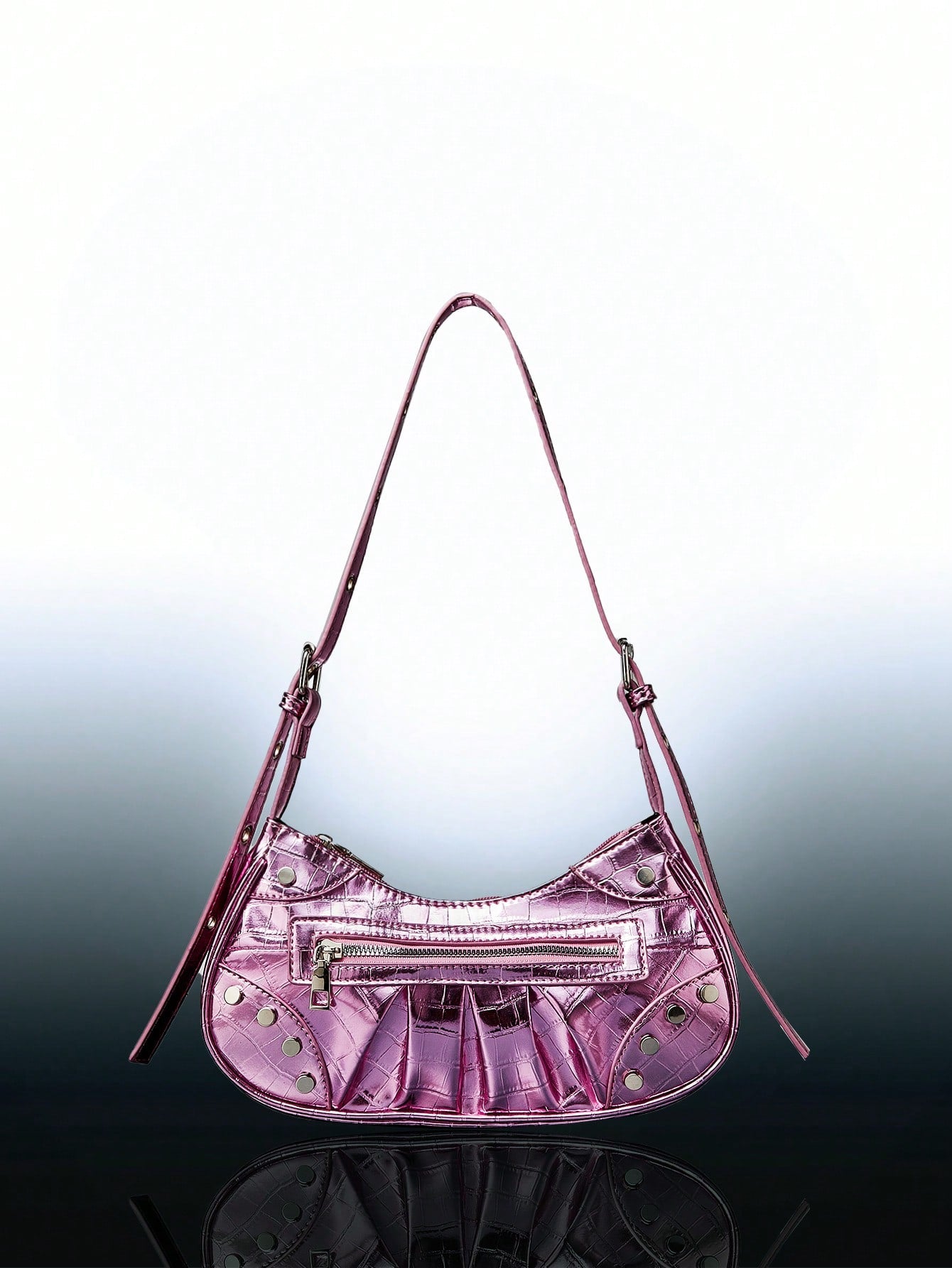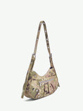 This motorcycle style hobo bag exudes street style chic with its camo rivets. Its edgy design adds a touch of rebelliousness to any outfit. Made with high-quality materials, it offers durability and functionality for everyday use. Stay on trend while keeping your essentials within reach with this stylish bag.