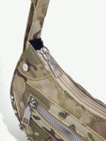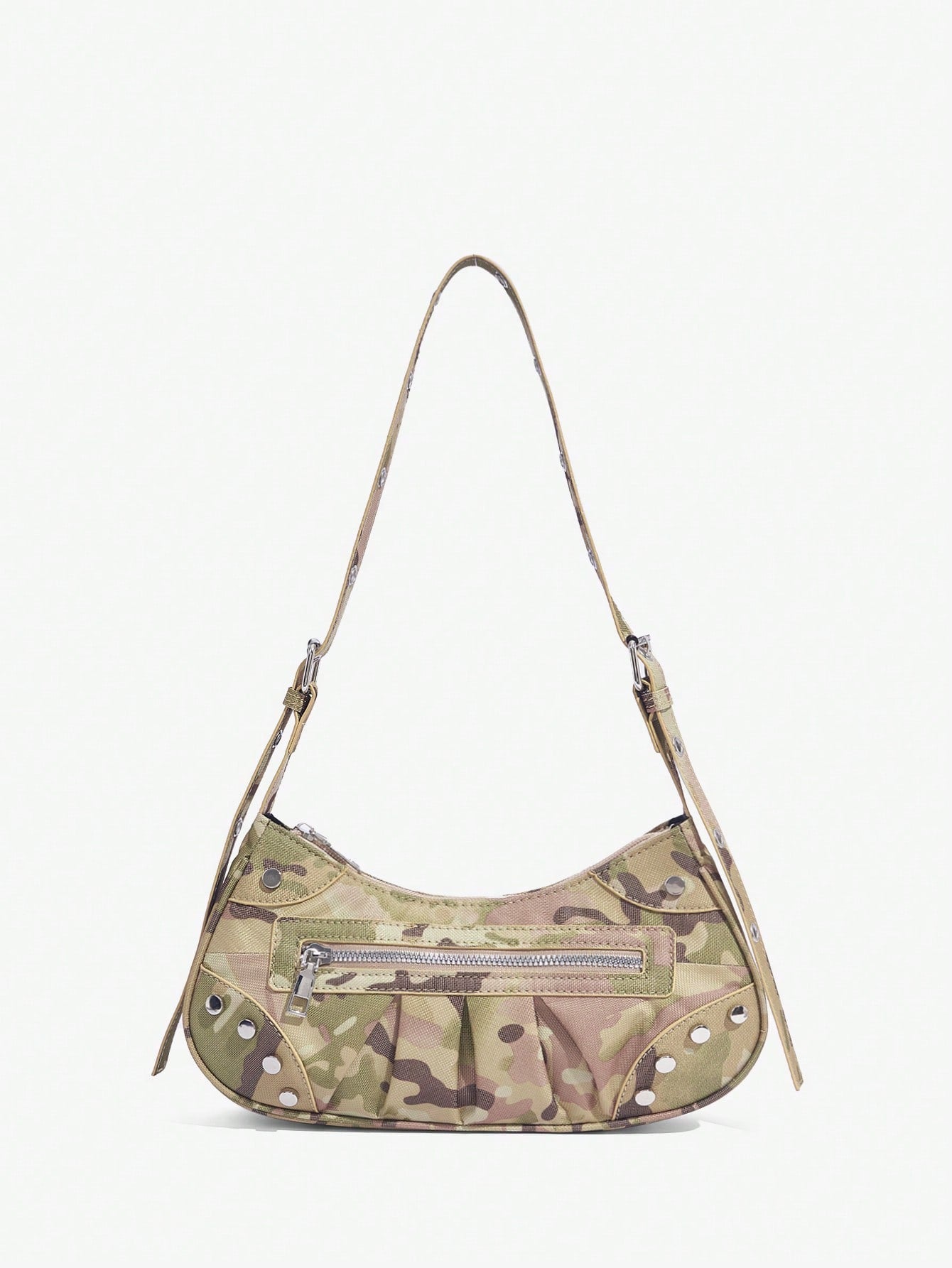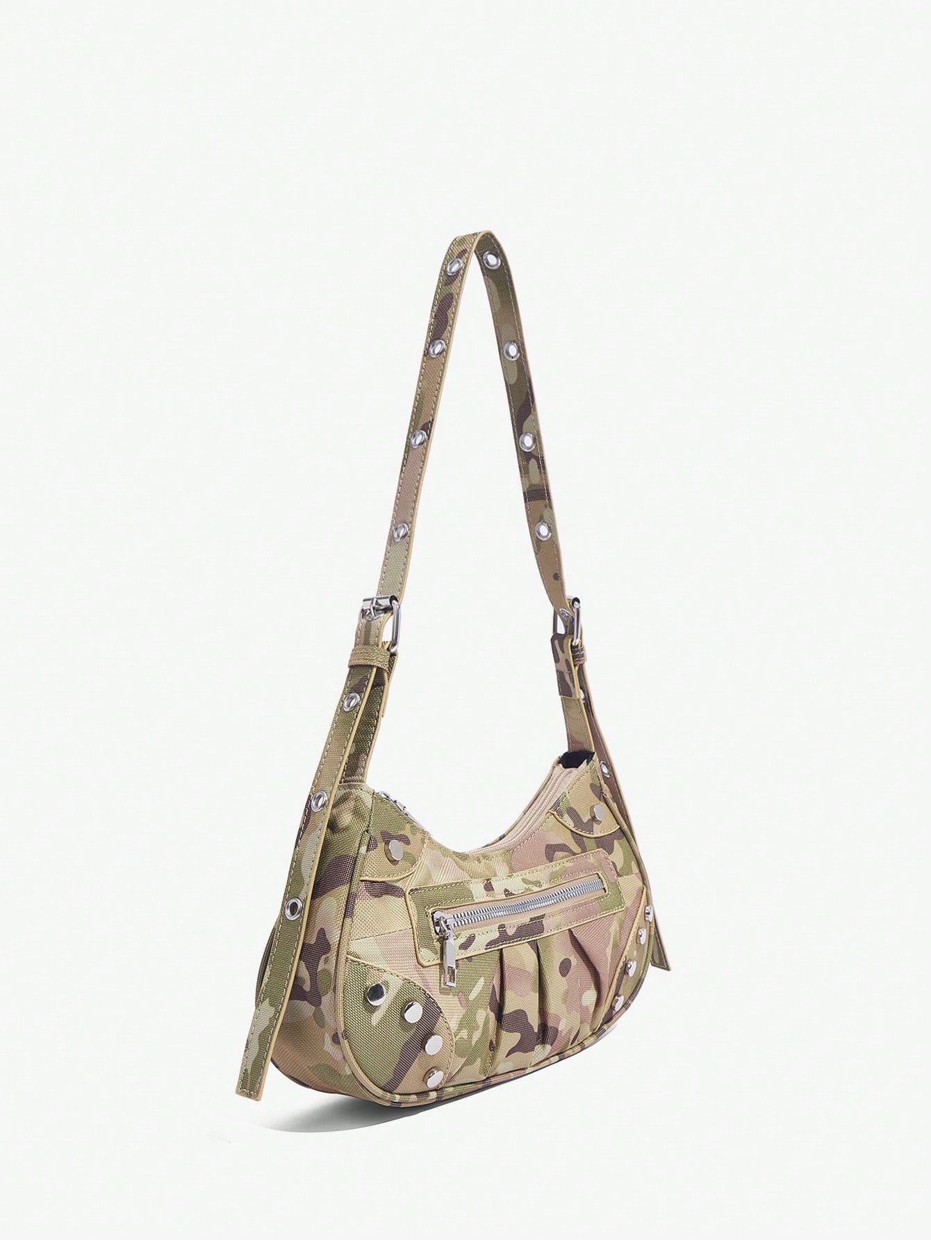 Channeling Street Style Chic with Camo Rivets Motorcycle Style Hobo Bag