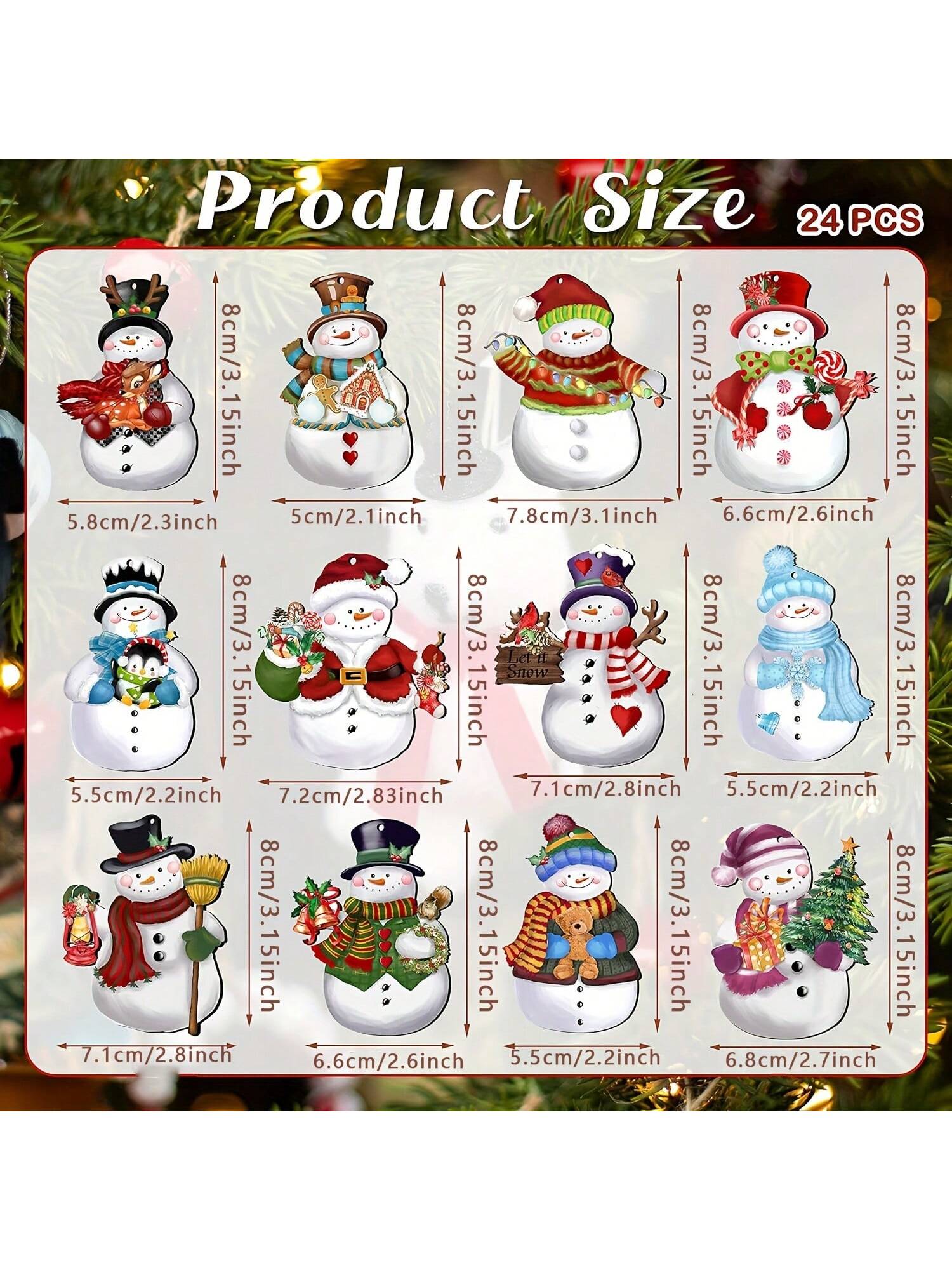 Charming 24-Piece Wooden Snowman Ornament Set – Perfect for Holiday Decor & Crafts
