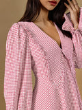 Charming Autumn Plaid Dress with Peter Pan Collar and Ruffled V-Neck