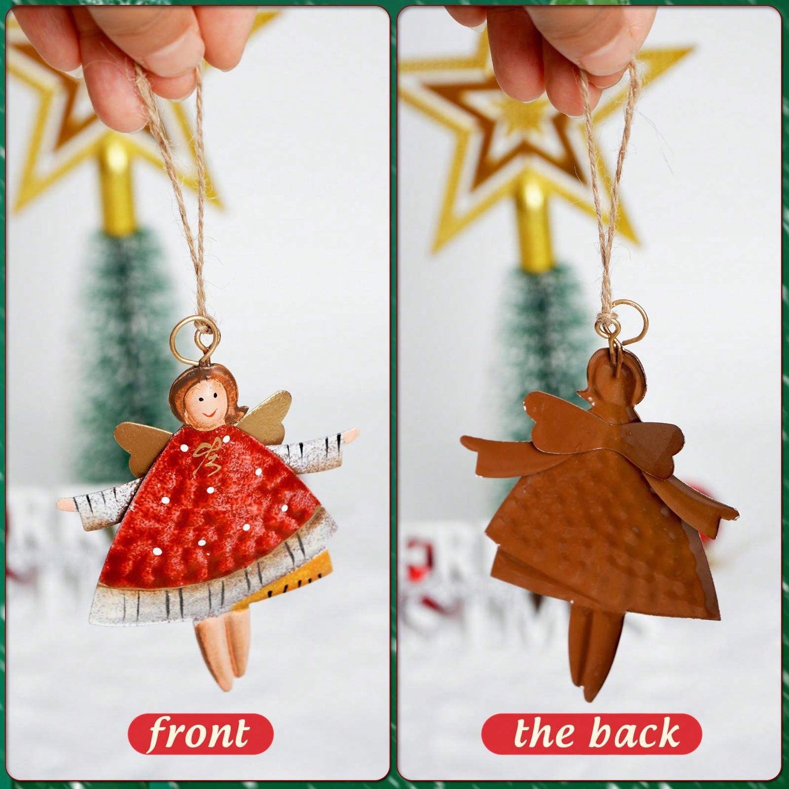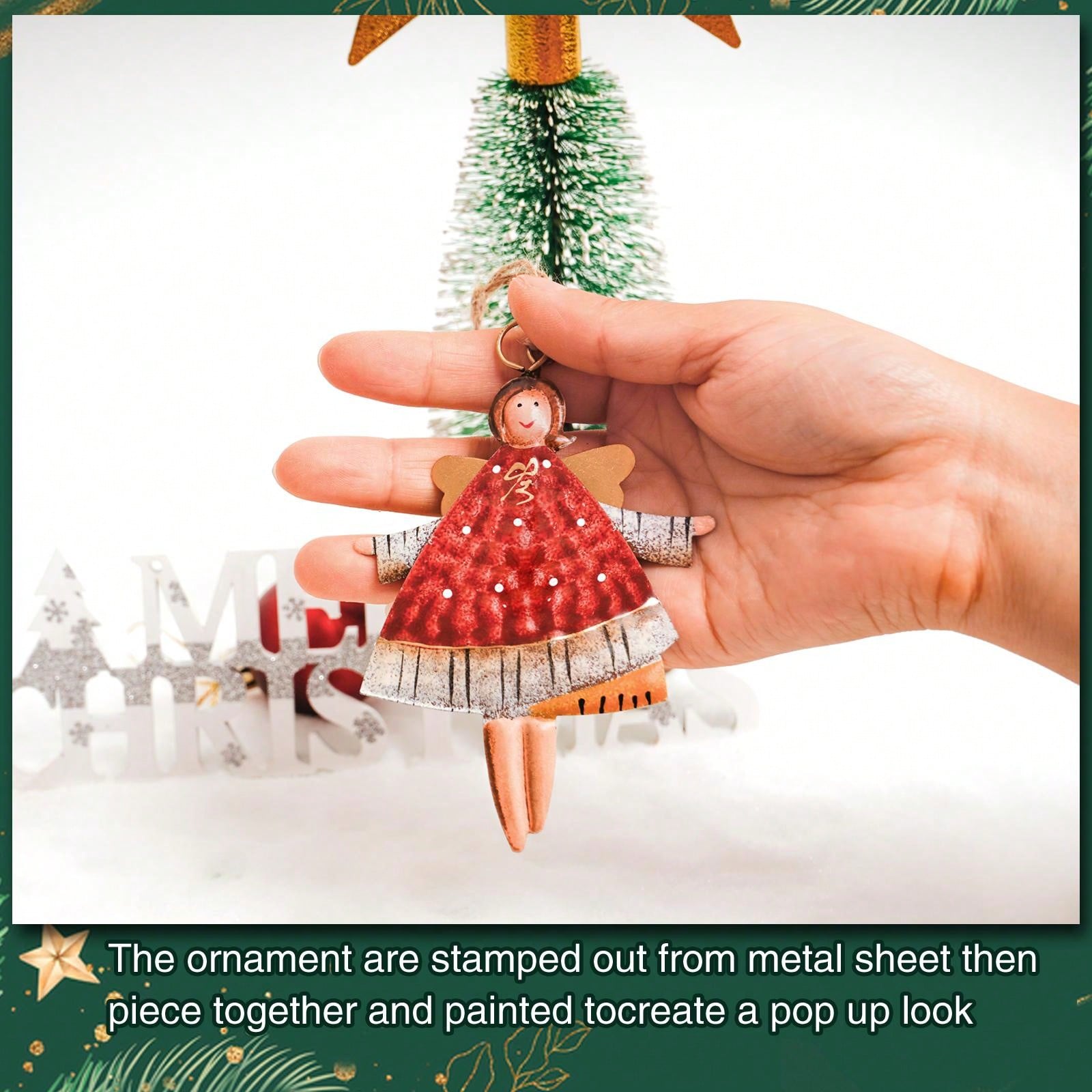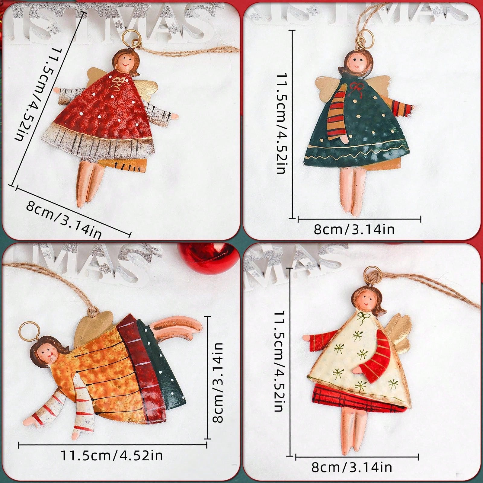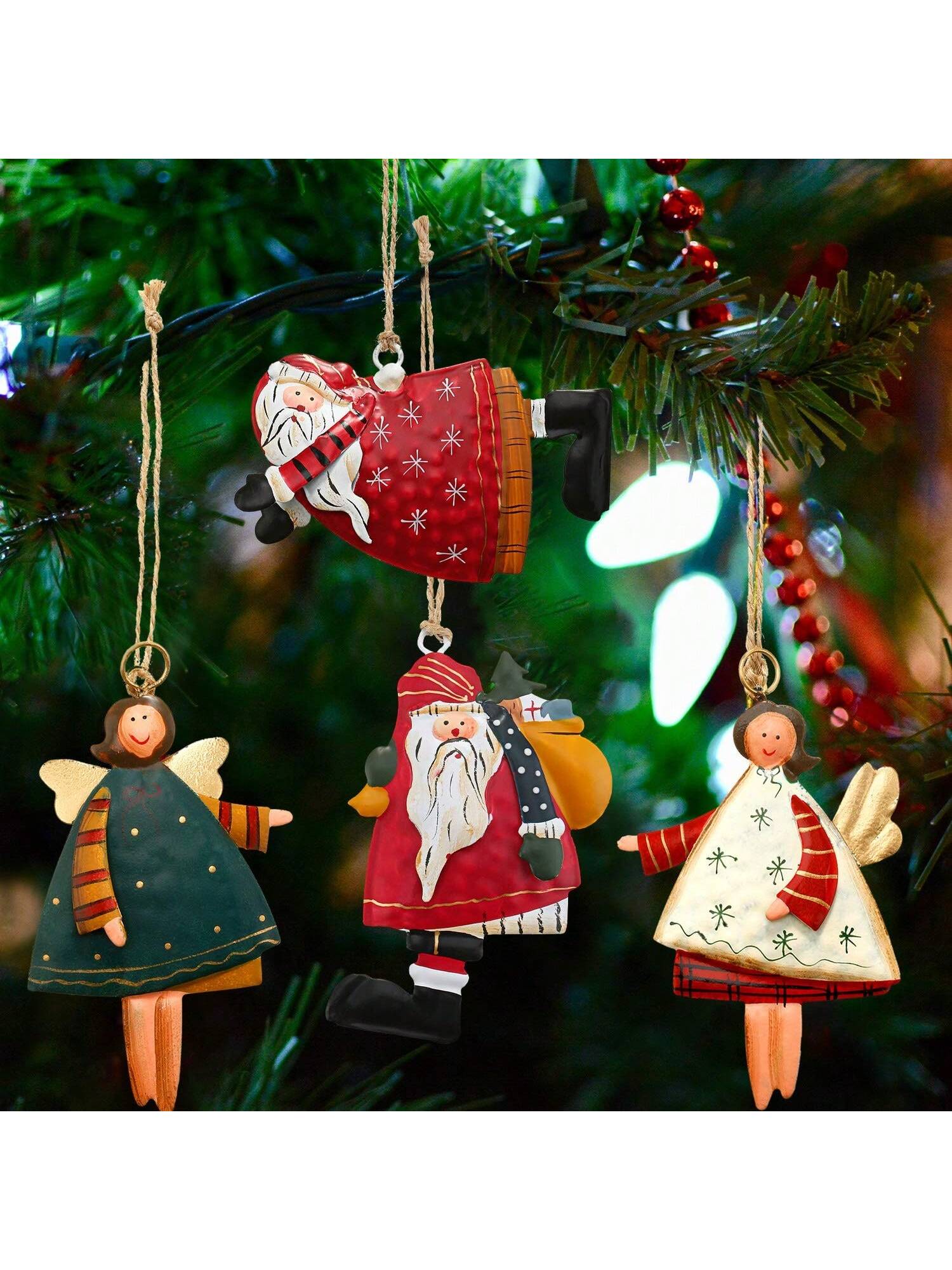 Charming Countryside Double-Sided Metal Christmas Tree Ornaments - Set of 4 Santa Claus Pendants