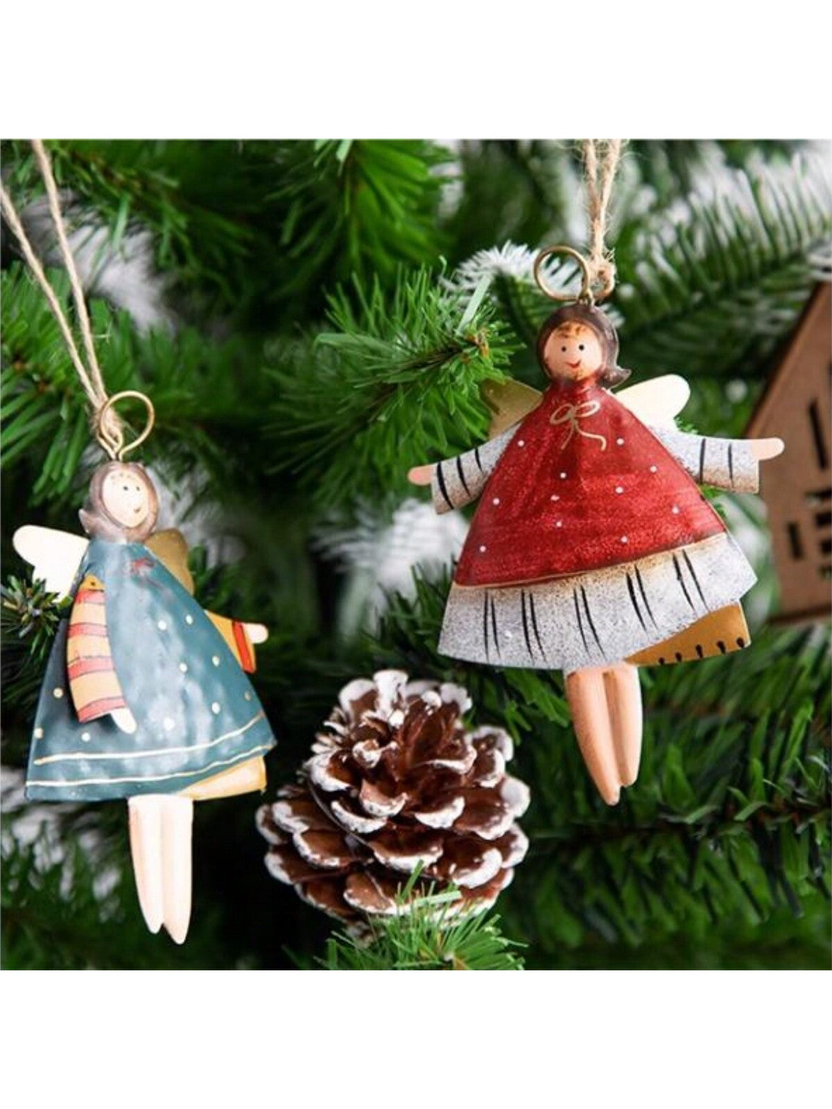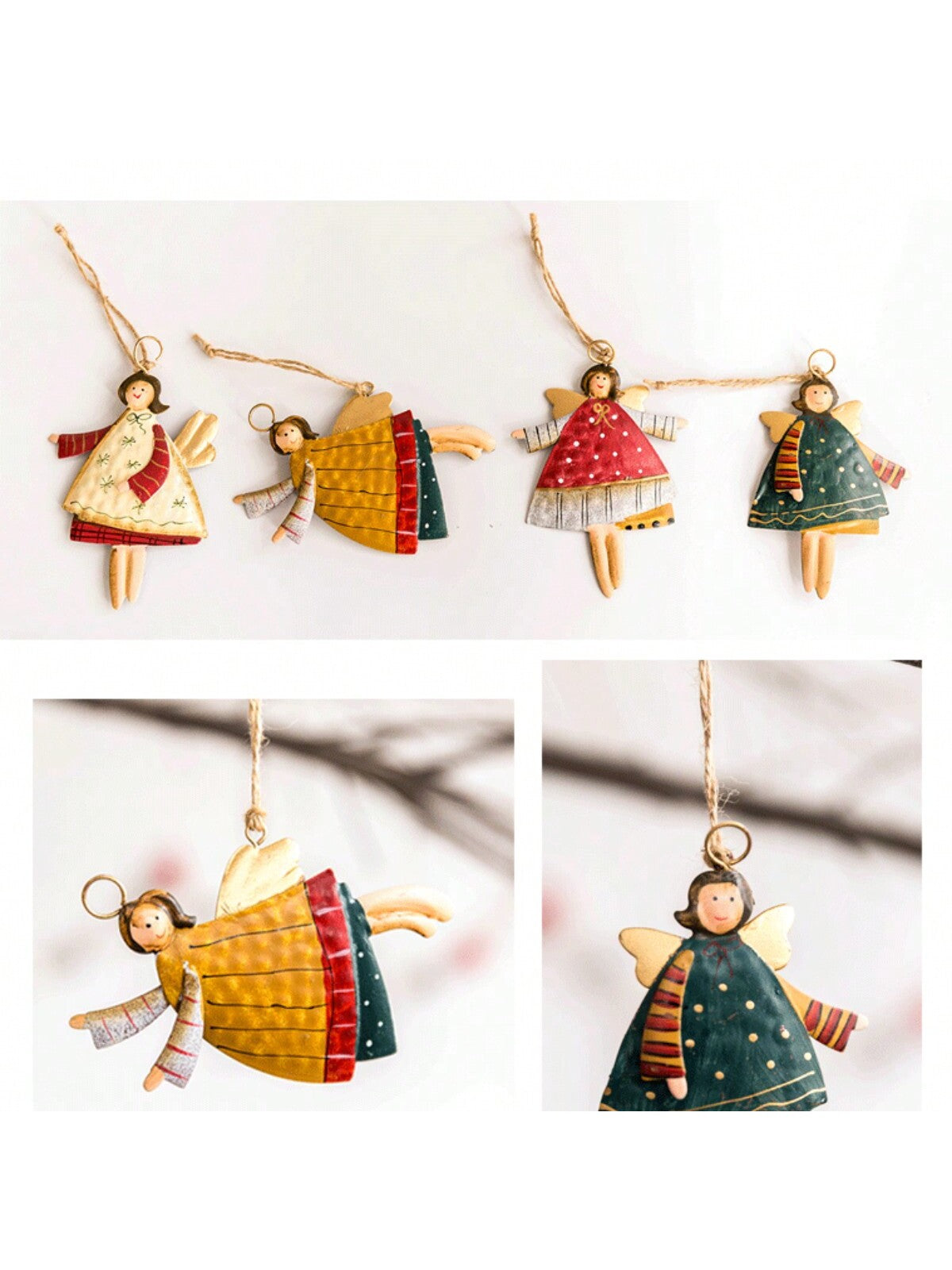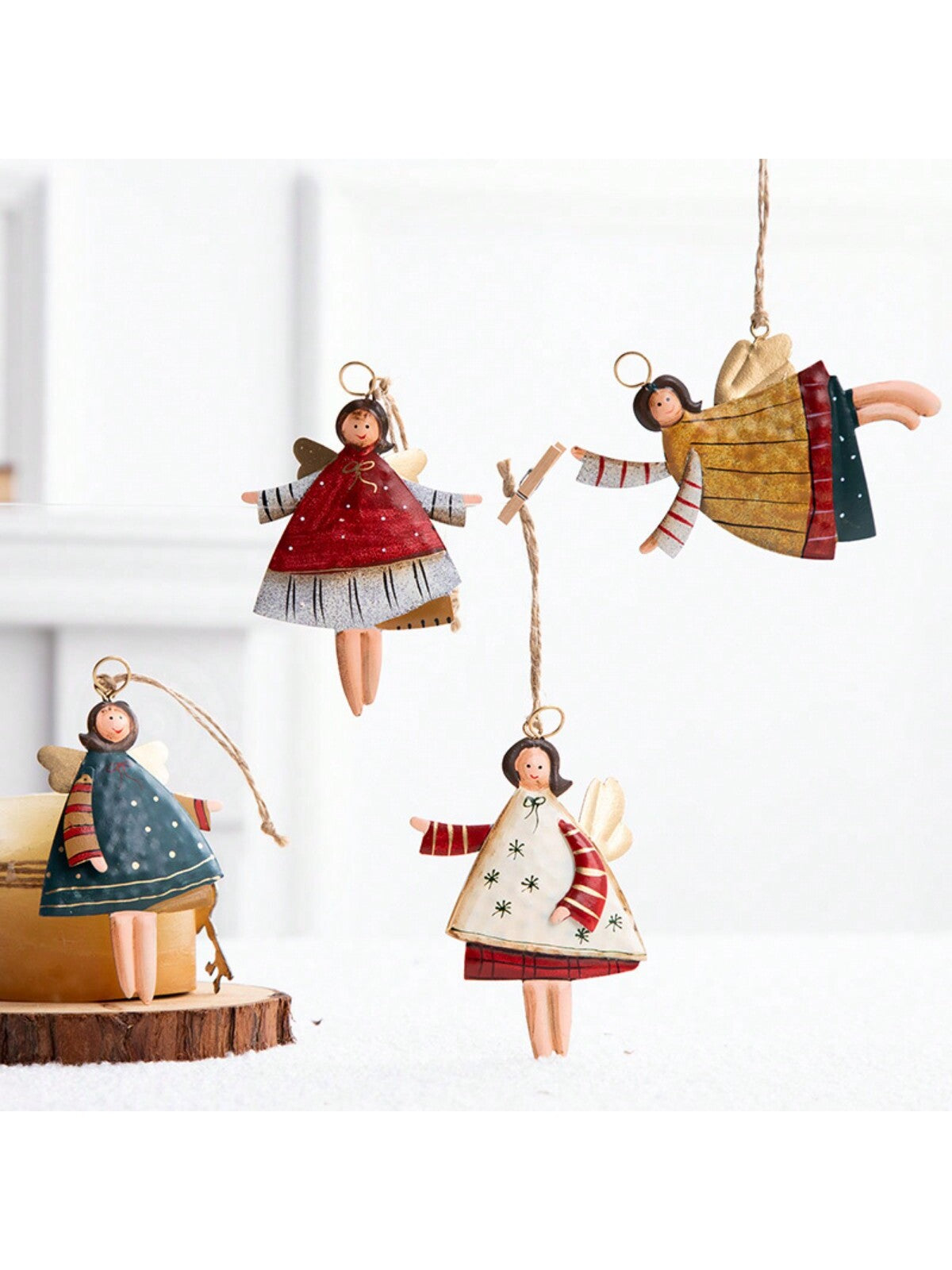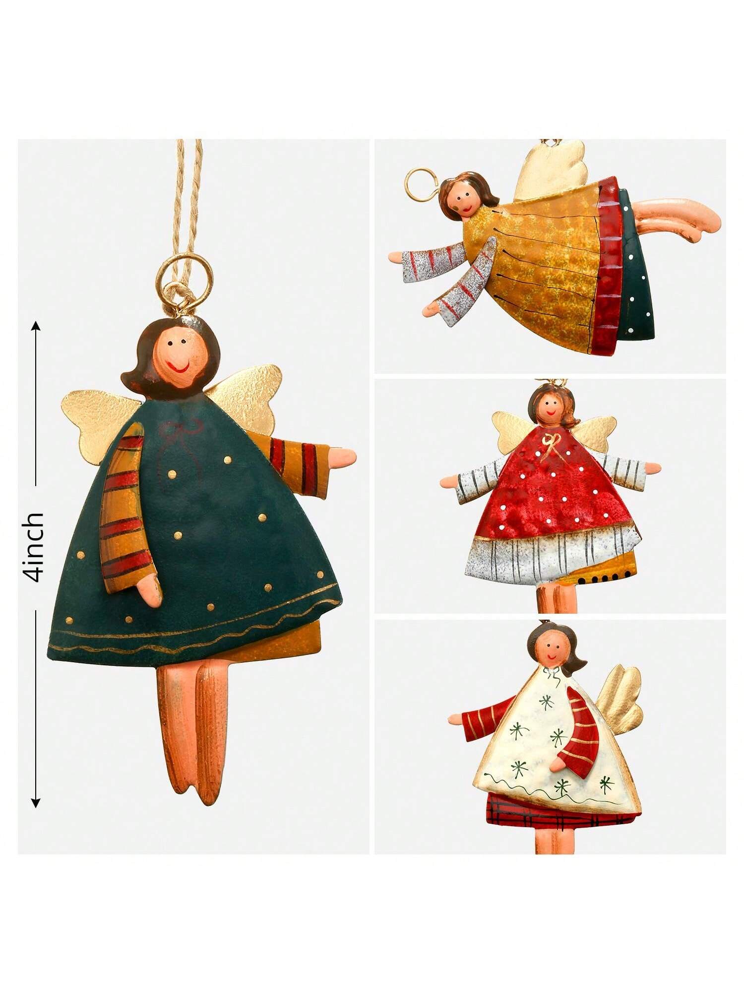 Charming Countryside Double-Sided Metal Christmas Tree Ornaments - Set of 4 Santa Claus Pendants