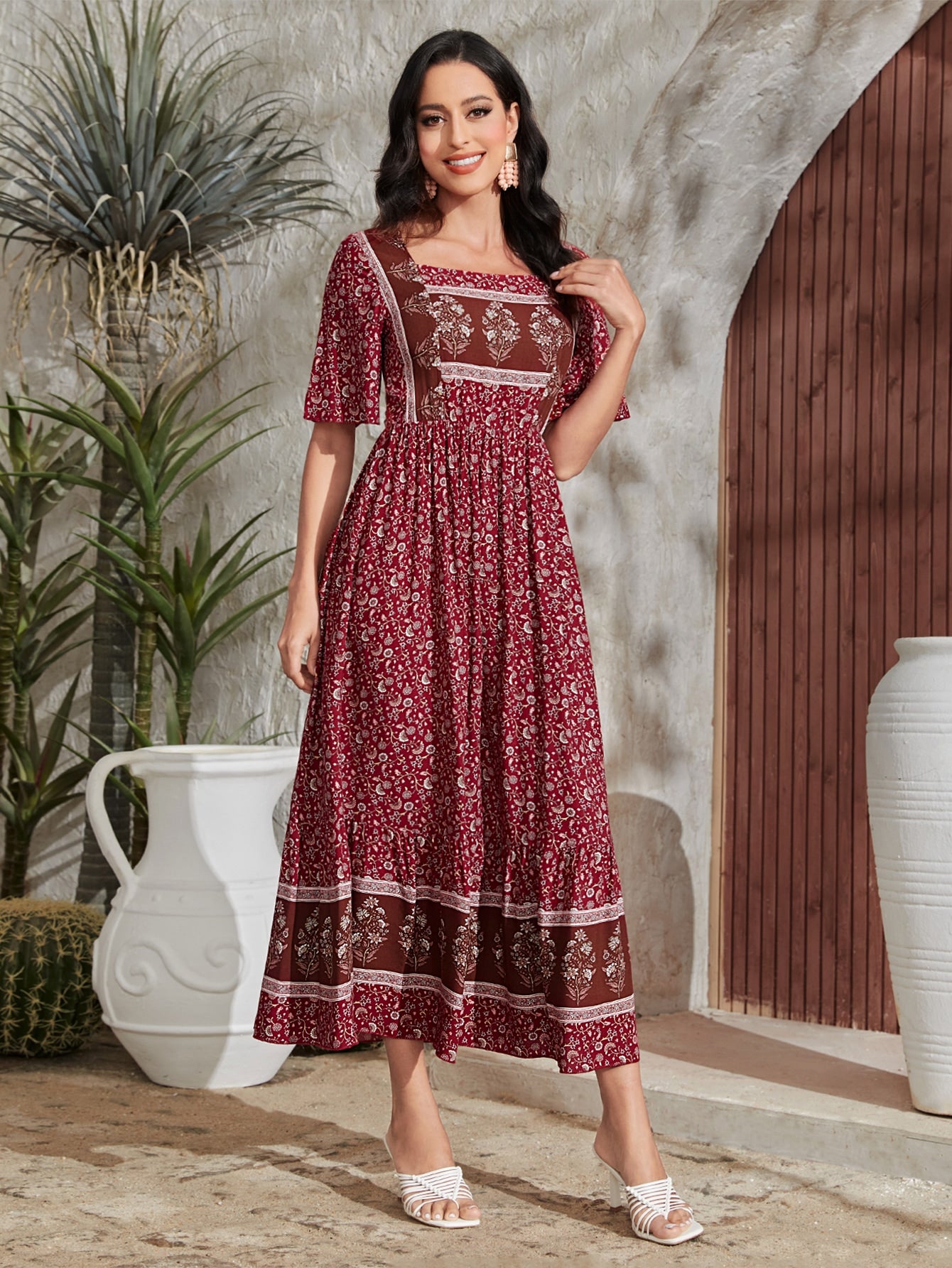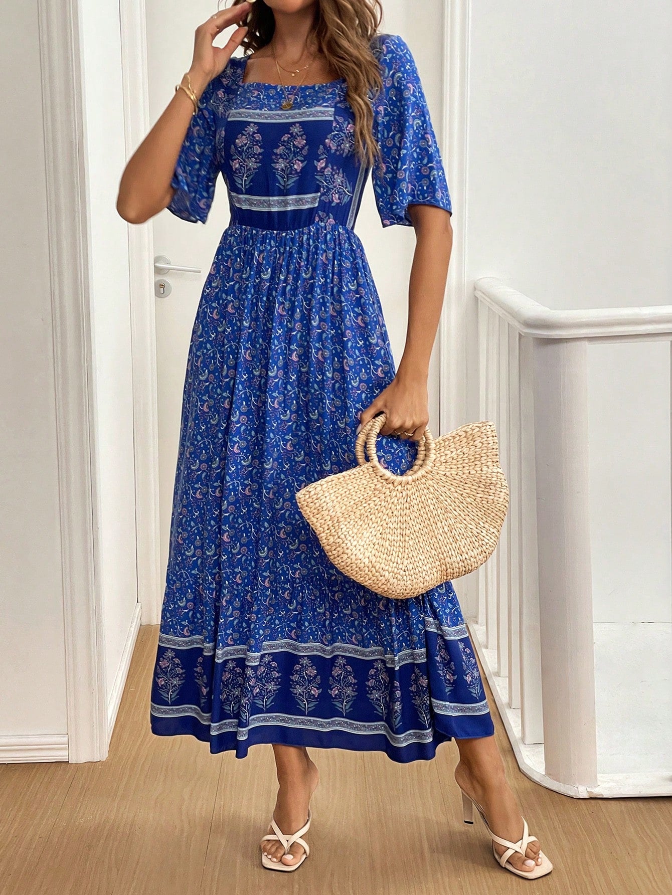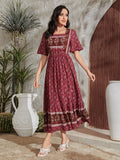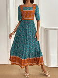 Charming Ditsy Floral A-Line Dress with Square Neckline