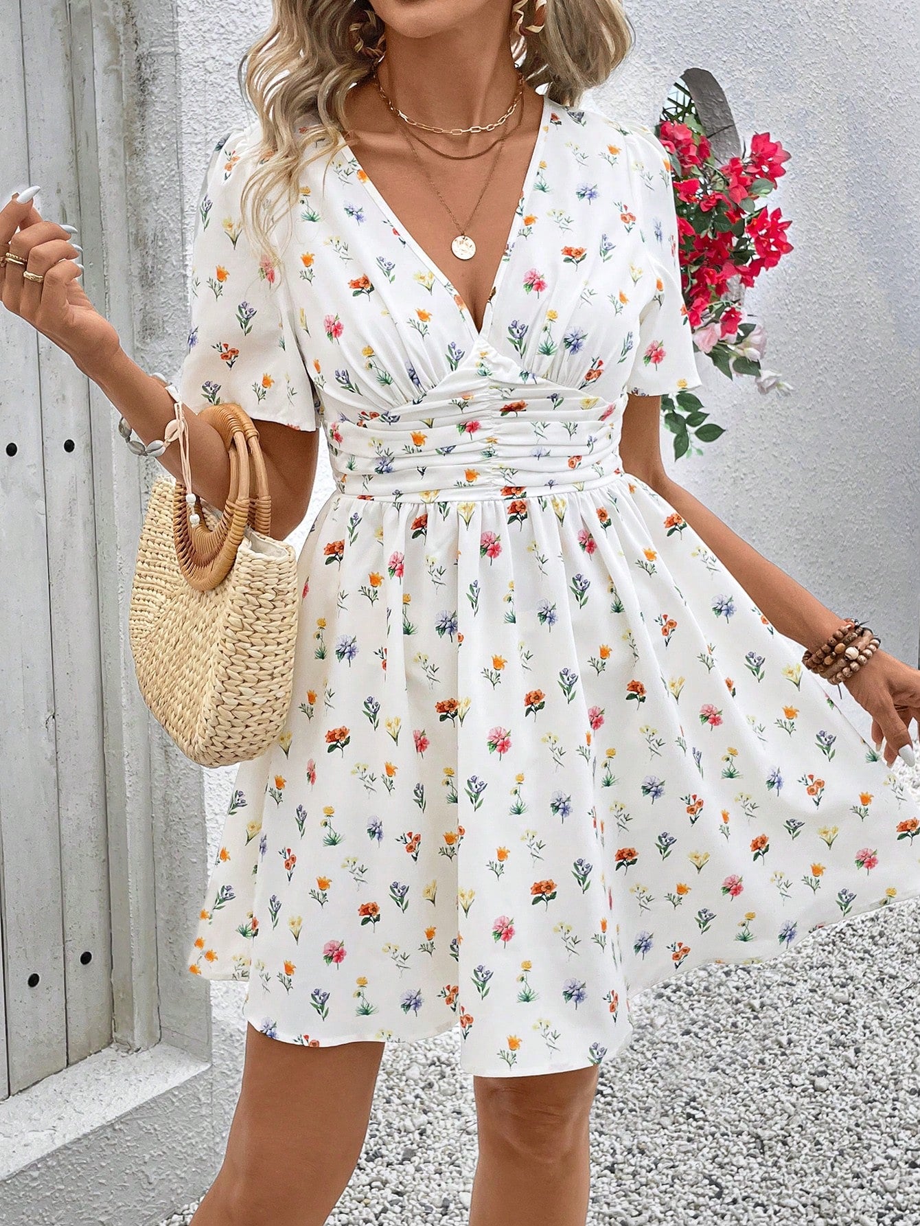 Charming Ditsy Floral Cinching Waist Dress for Effortless Summer Style
