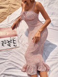 Charming Floral Tie-Front Cami Dress with Mermaid Hem