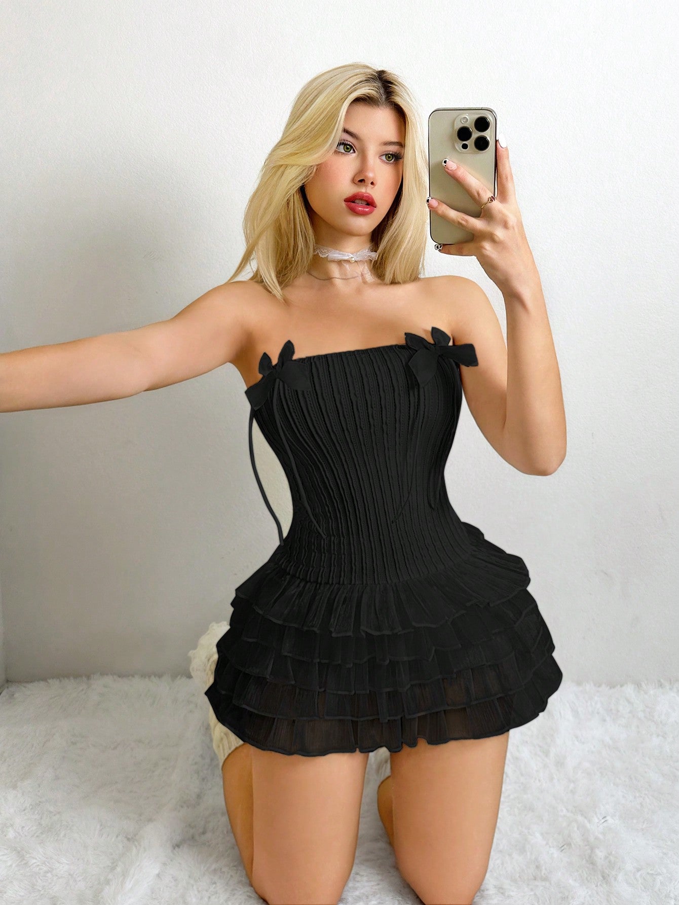 Charming Y2K Style Bustier Bow Bodycon Dress with Ruffle Hem – Perfect for Homecoming and Fall Fashion