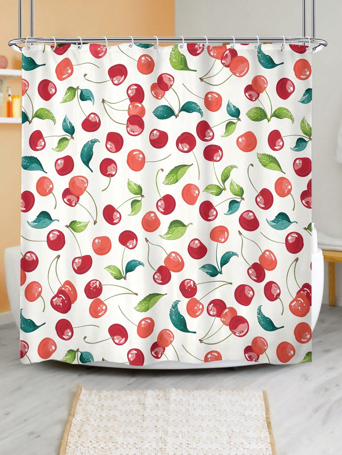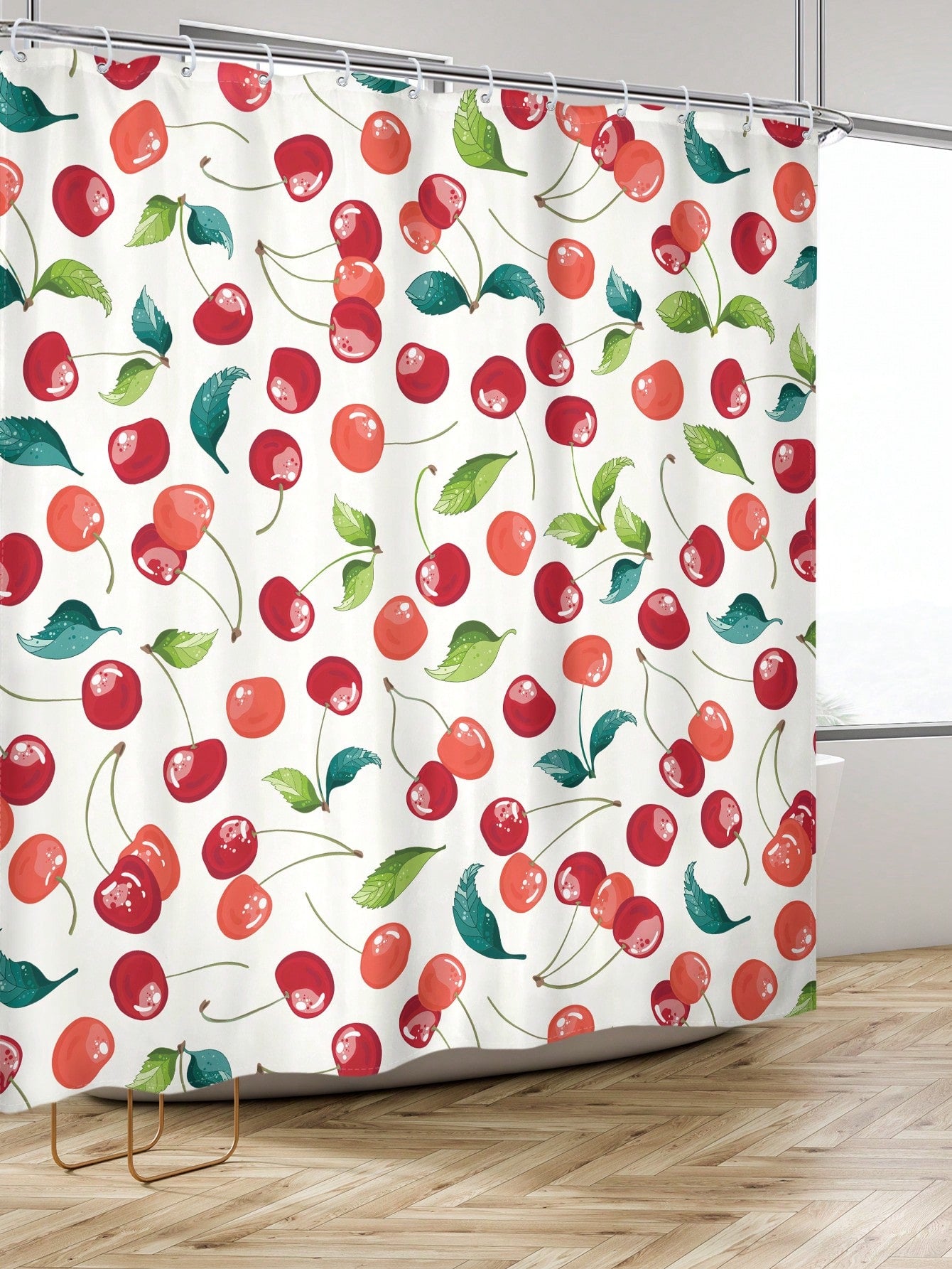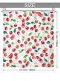 Cherry Fruit and Leaf Cartoon Shower Curtain Set - Waterproof Summer Plant Print Decor with Hooks