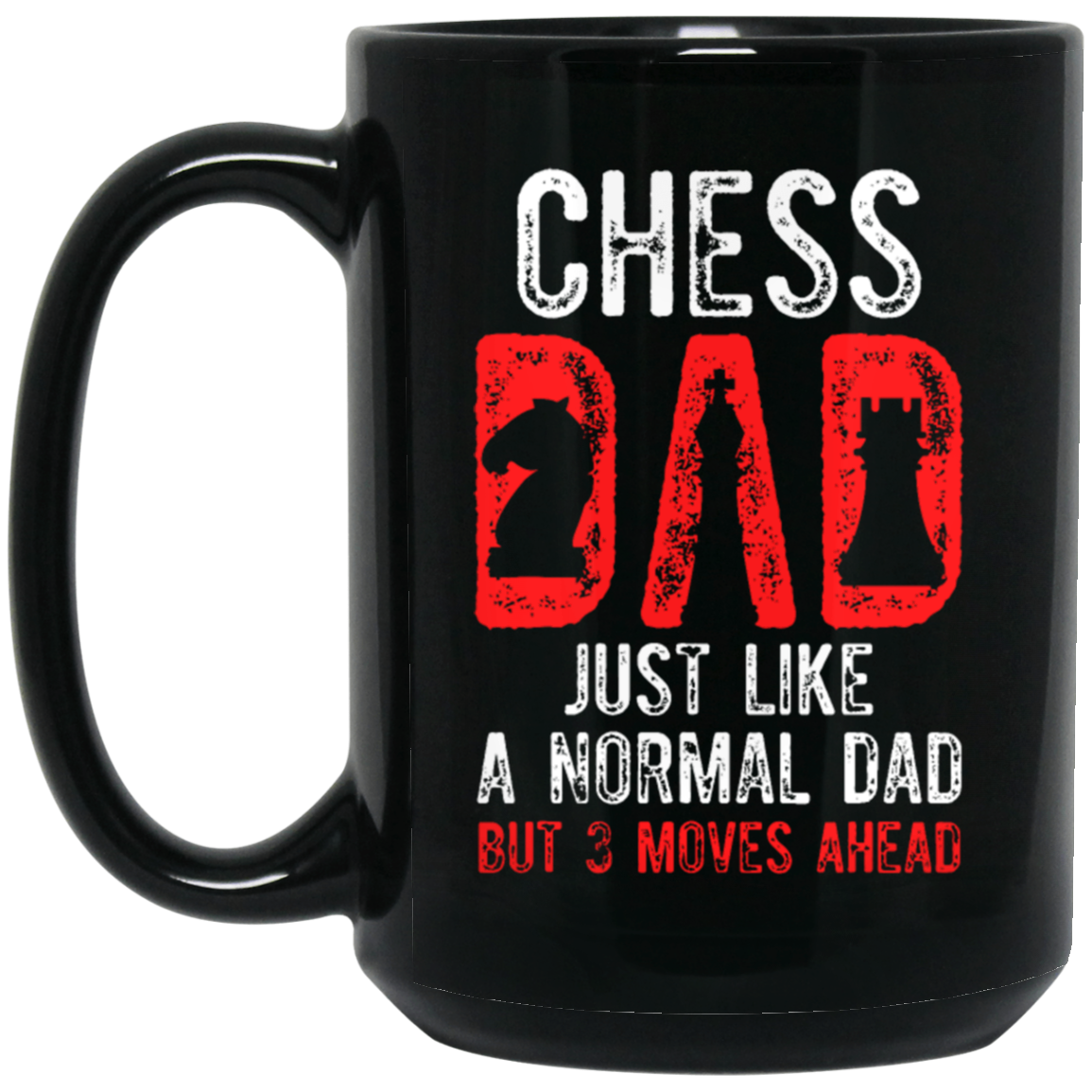 Chess Dad, Just Like A Normal Dad But 3 Moves Head Black Mug
