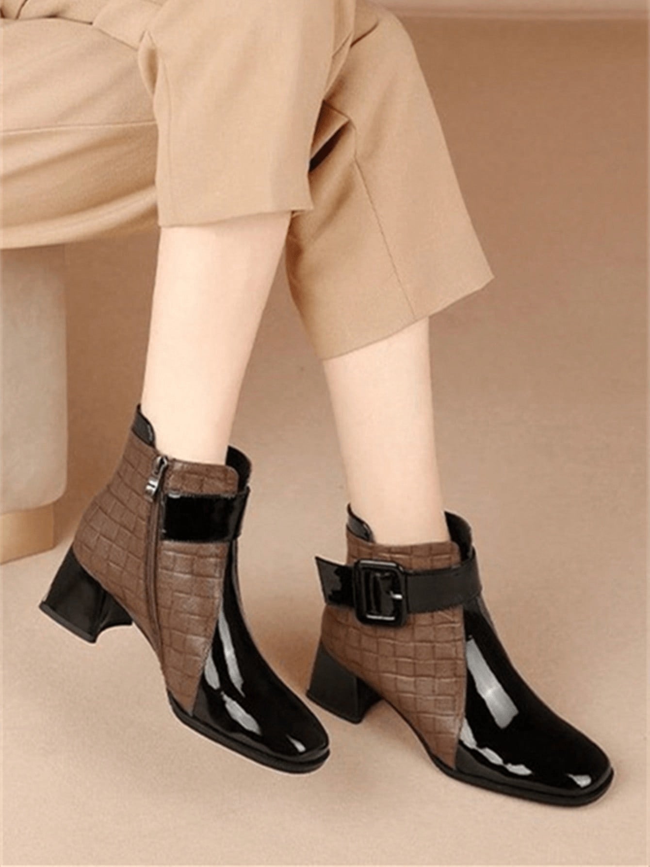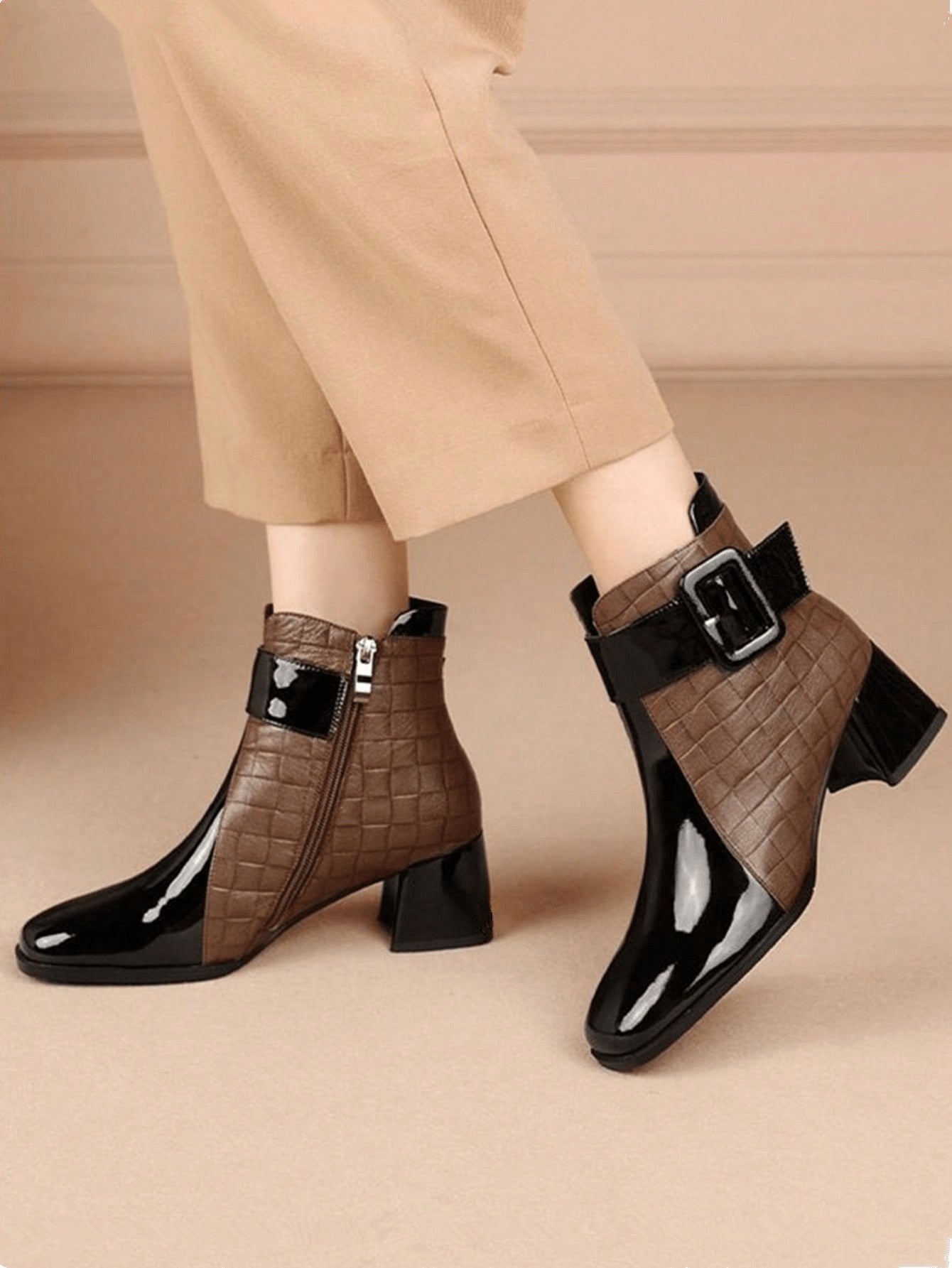 Chic and Cozy: Color Block Square Toe Ankle Boots for Fall/Winter