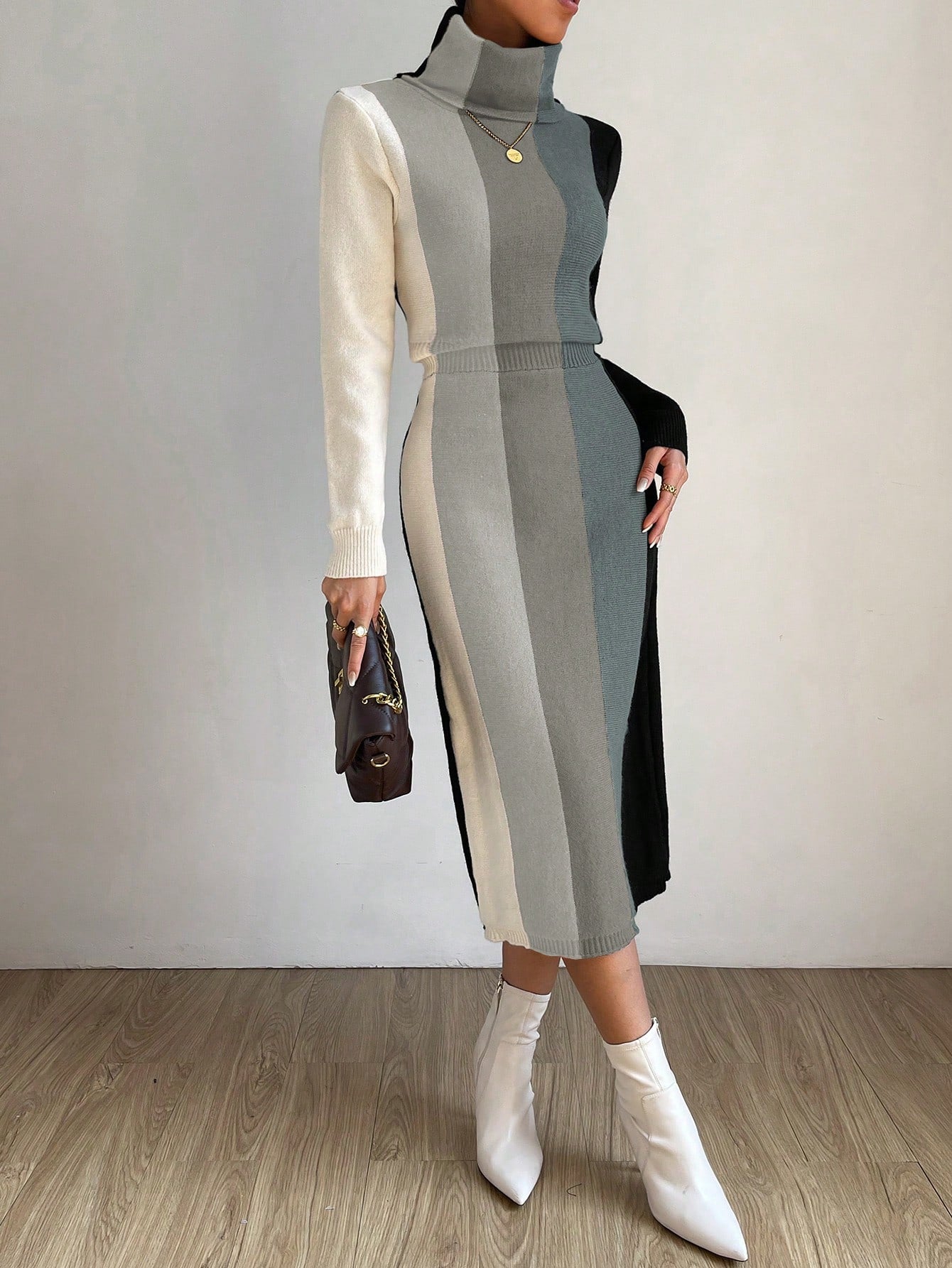 Chic and Cozy: Color Block Turtleneck Sweater Dress