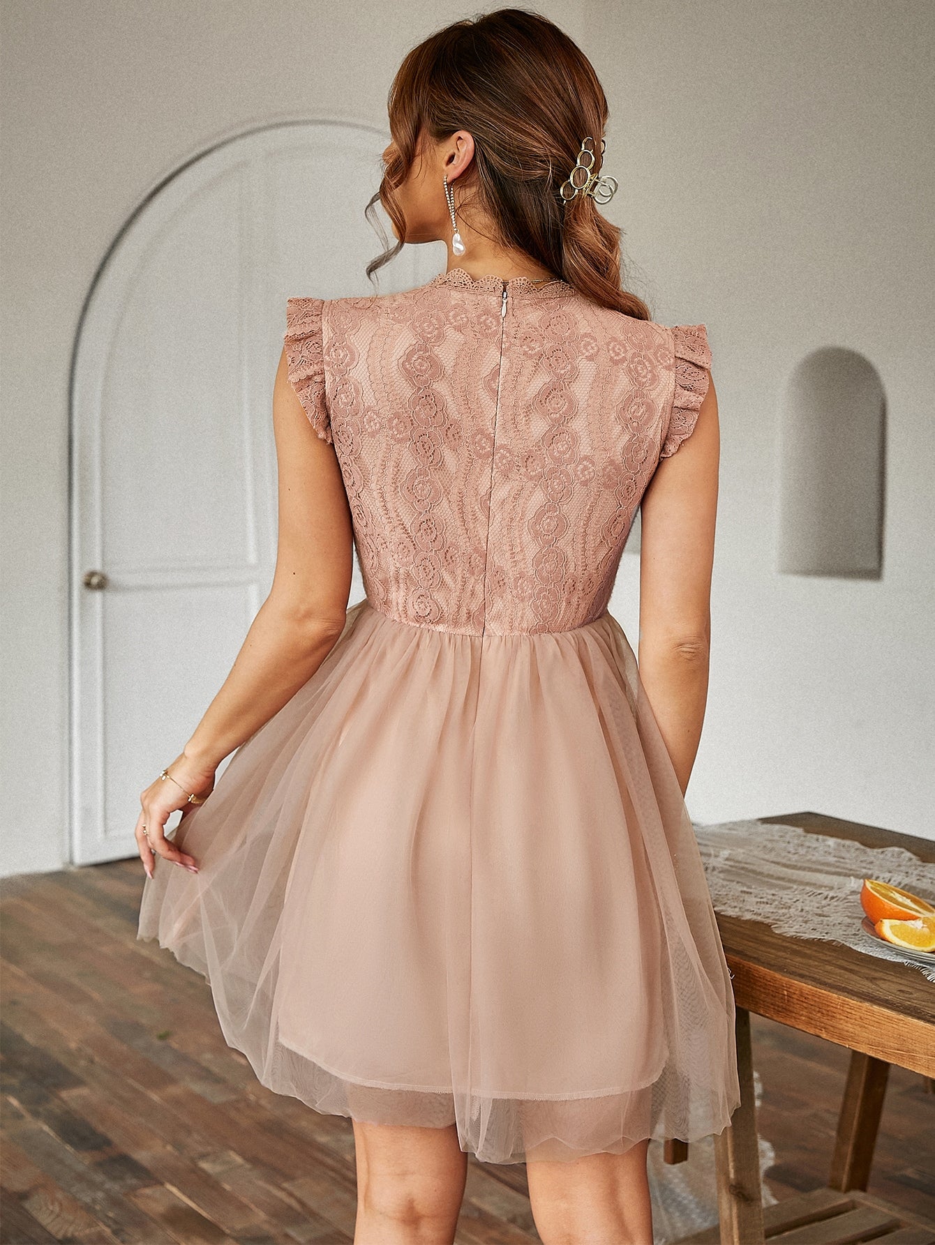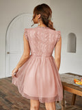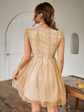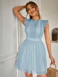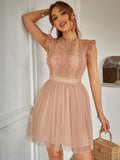 Chic and Elegant: Contrast Lace Ruffle Scallop Trim Mesh Dress