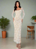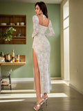 Chic and Elegant Fitted Lace Dress with Slit - Perfect for Fall & Winter