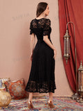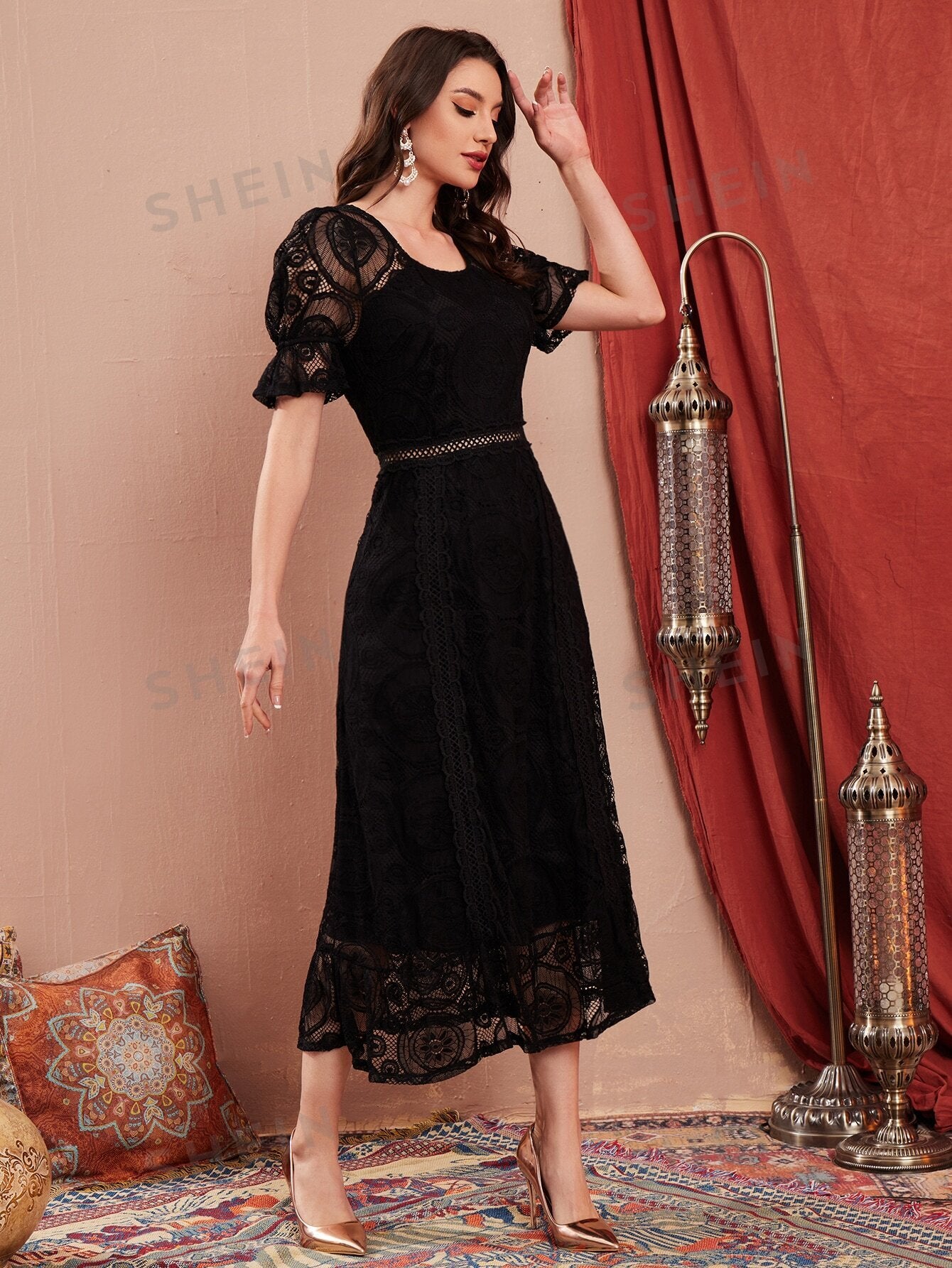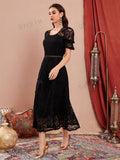 Chic and Elegant: Modely Flounce Sleeve Ruffle Hem Lace Dress