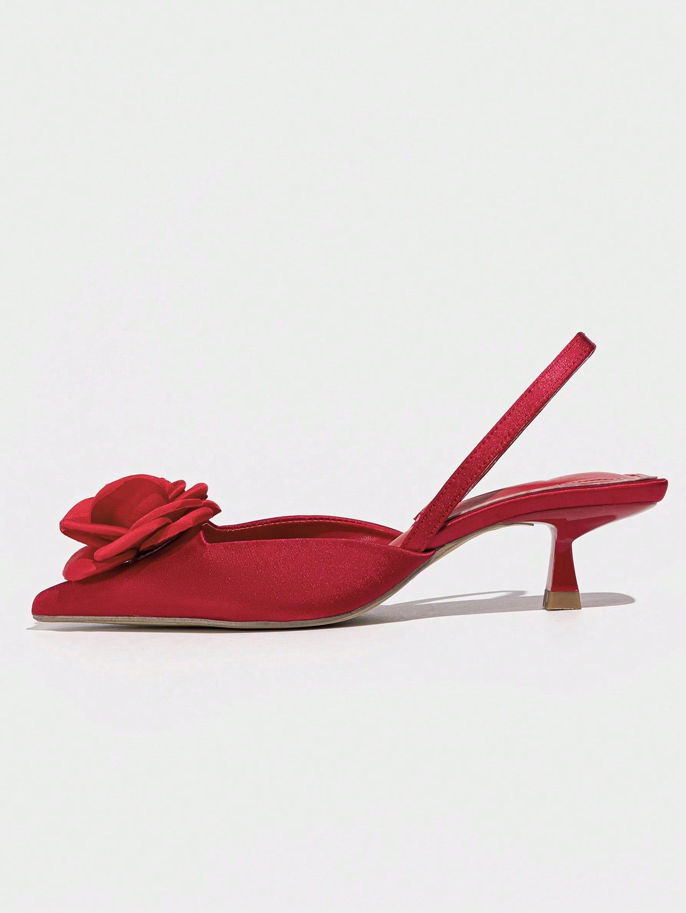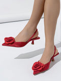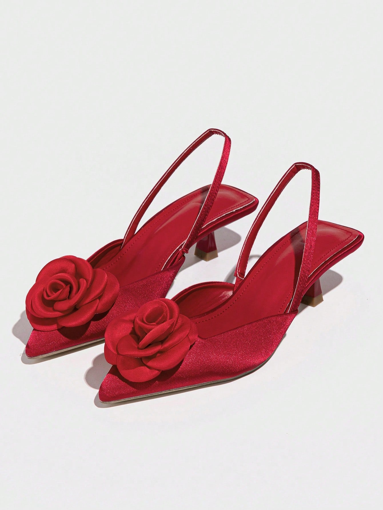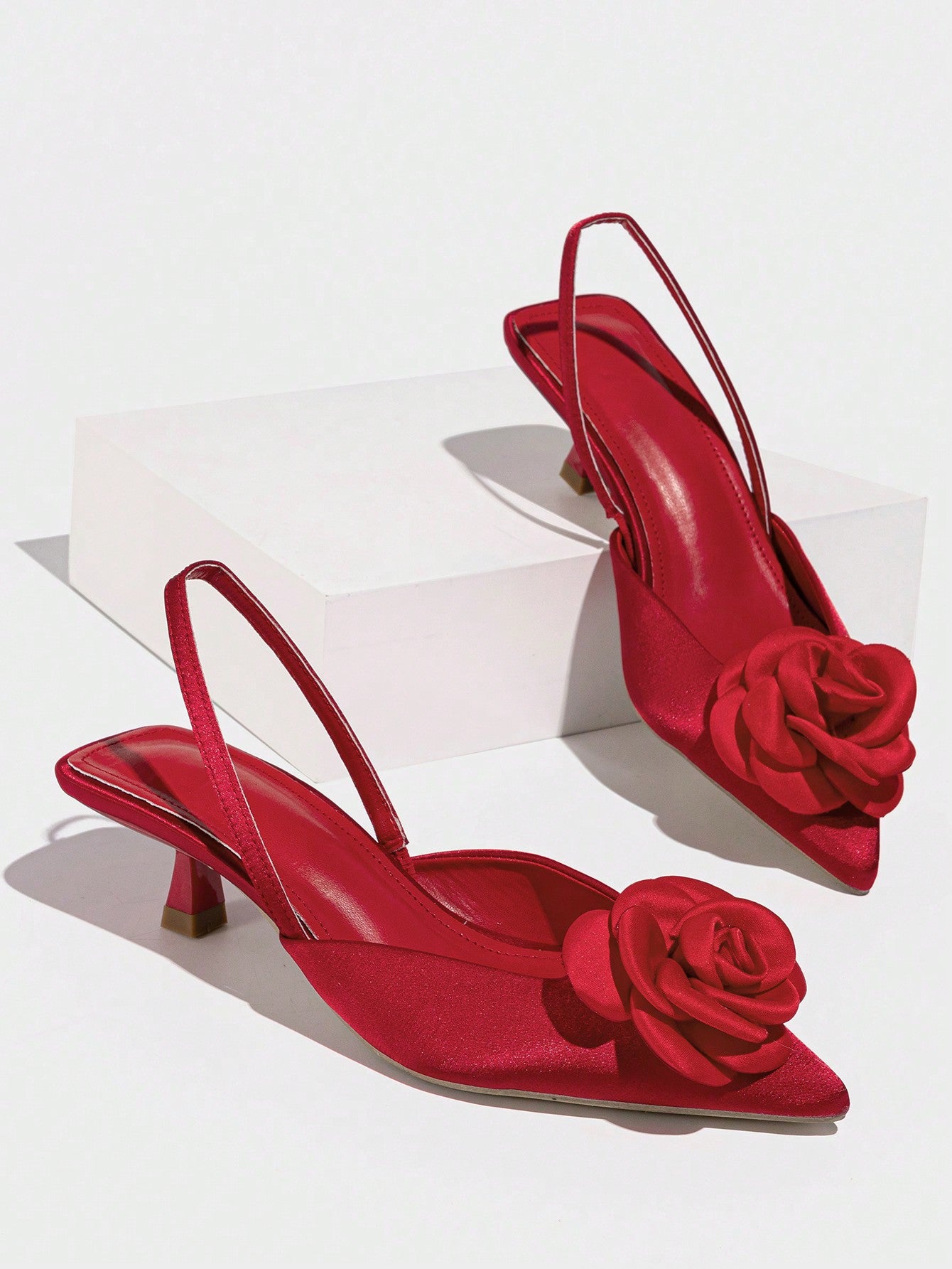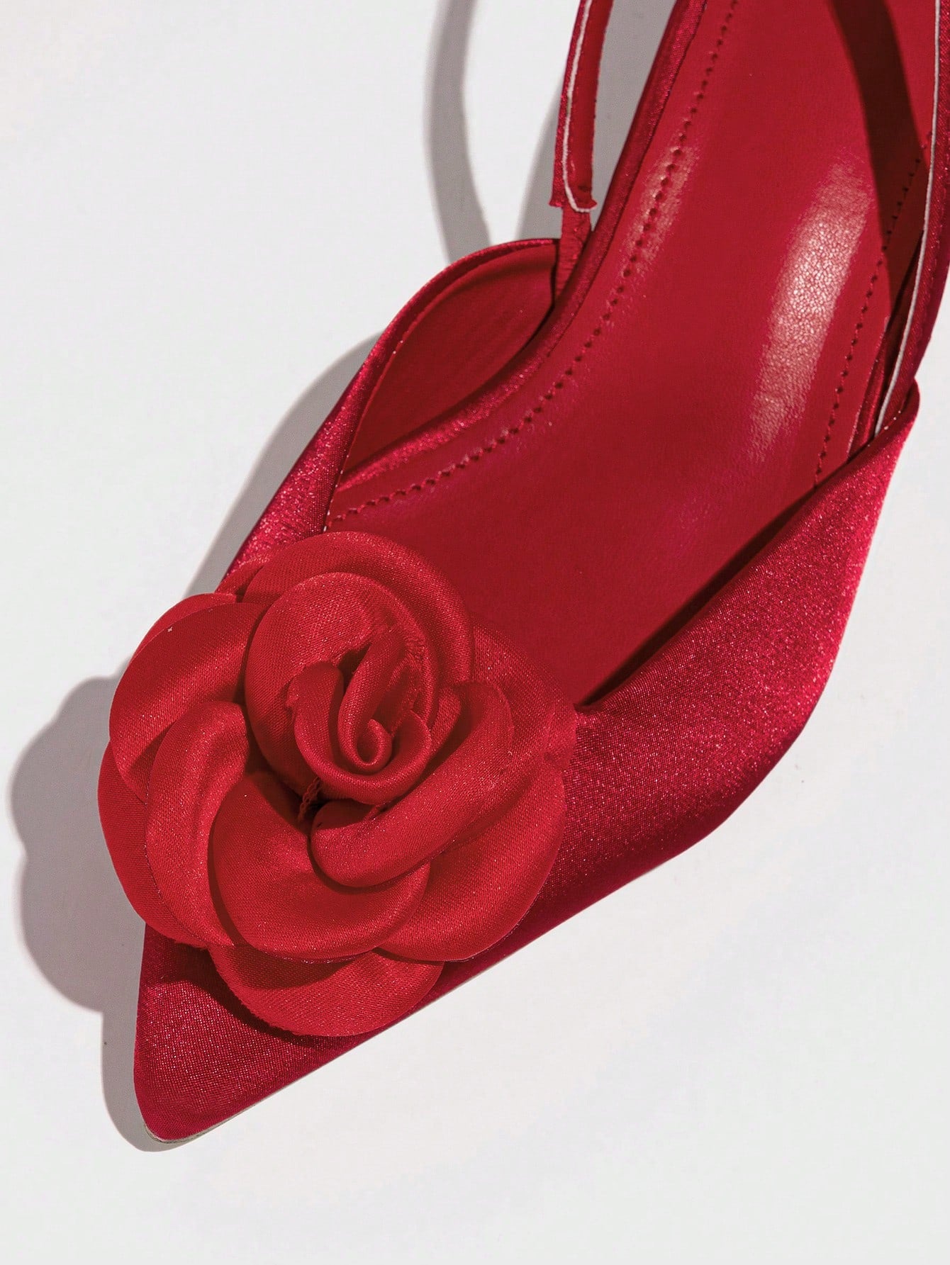 Chic and Elegant: Red Pointed Toe High Heeled Shoes with 3D Floral Design