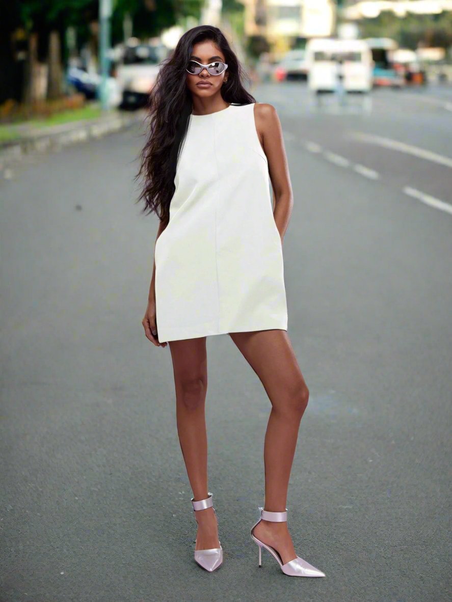 This chic and elegant sleeveless dress features a stylish bow tie and a backless design, making it perfect for any occasion. Its sleek and modern look is sure to make a statement, while the comfortable fit allows for effortless wearing. Perfect for those who want to look fashionable and sophisticated.