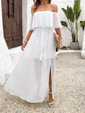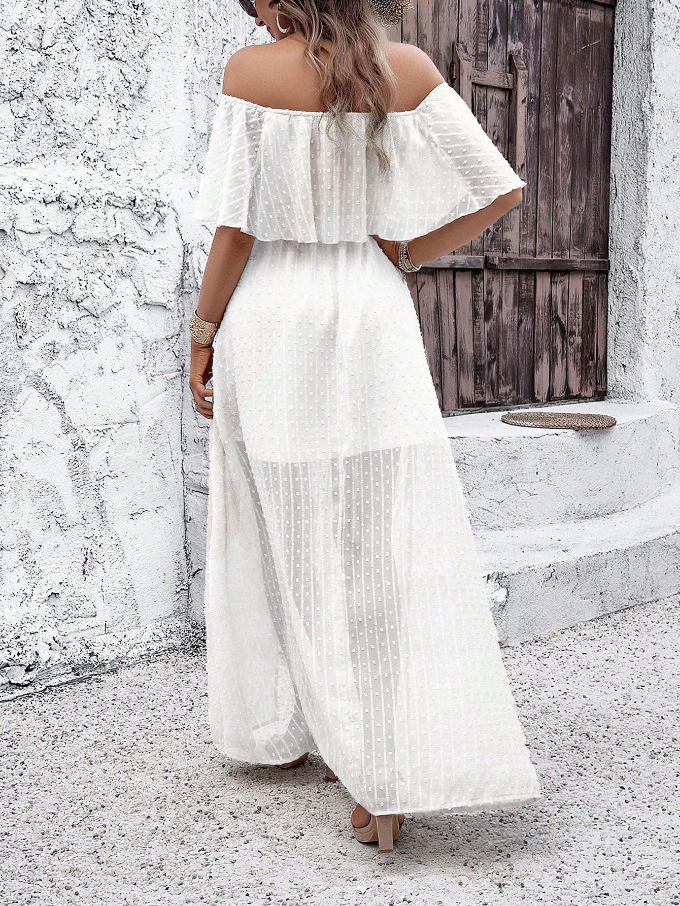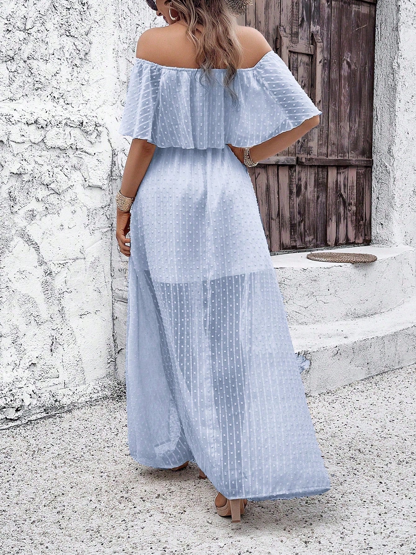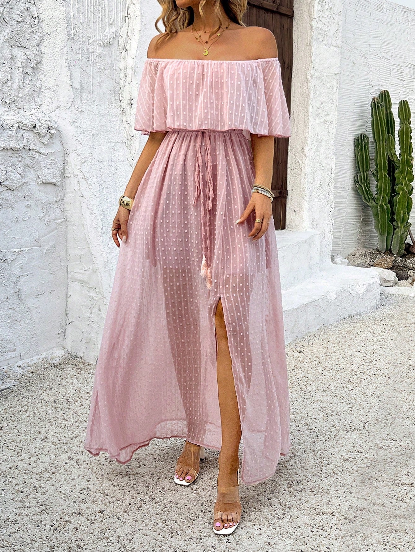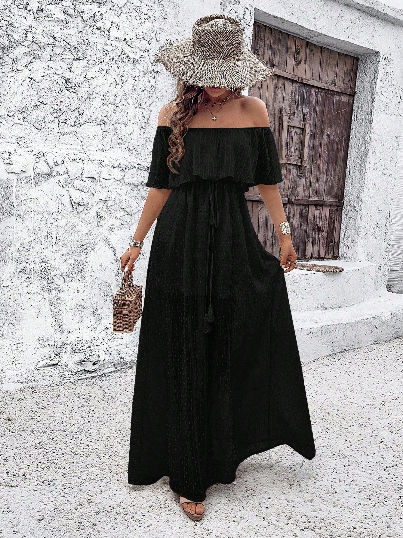 Introducing our Chic and Flirty: Ladies Fashionable Off-Shoulder Dress. Designed for the modern woman, this dress exudes elegance and charm with its off-shoulder style. Comfortable and stylish, it's the perfect addition to your wardrobe. Embrace your femininity and stand out with this fashionable dress.