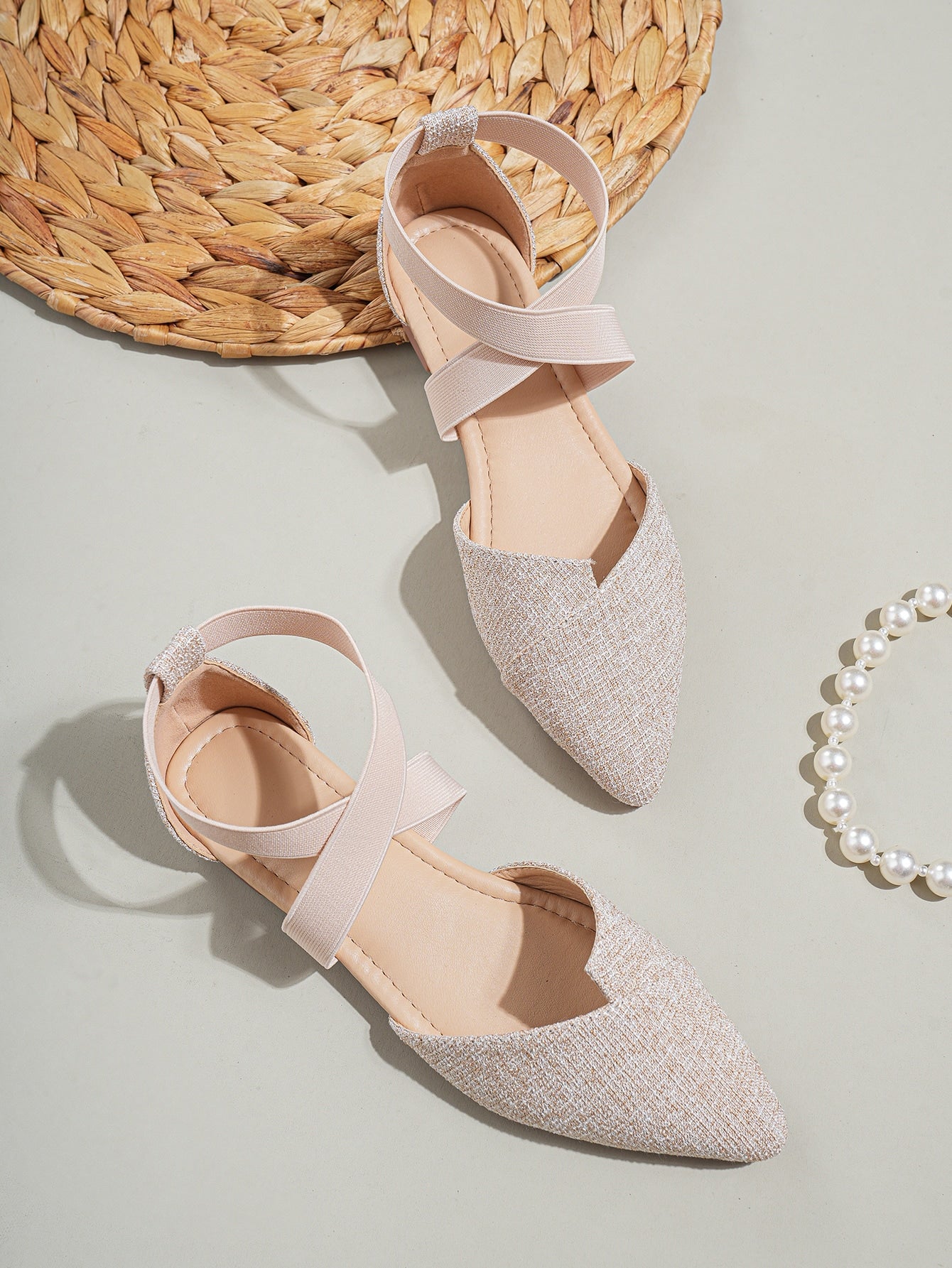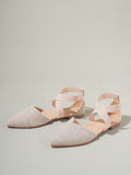 Chic and Stylish Point Toe Cross Strap Linen Flats for Women