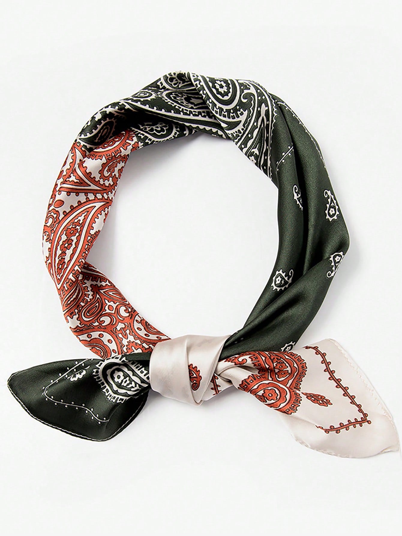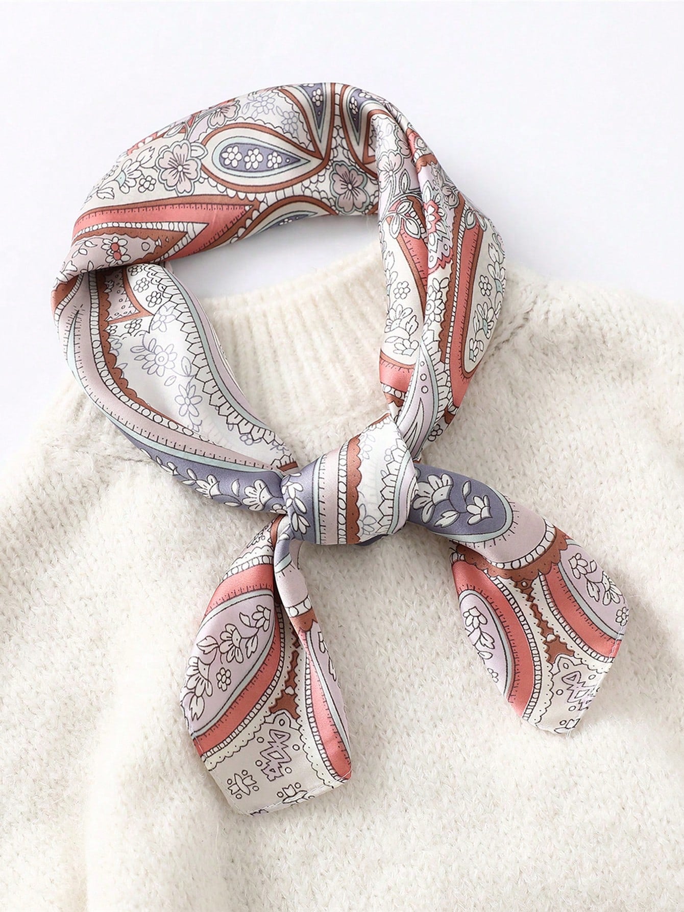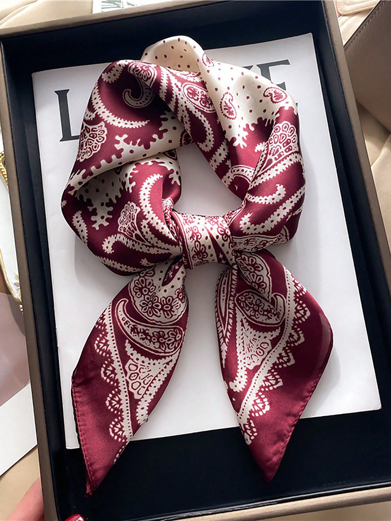 Chic and Stylish: Women's Geometric Printed Silk Square Scarf for Daily Wear