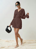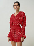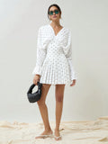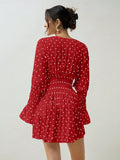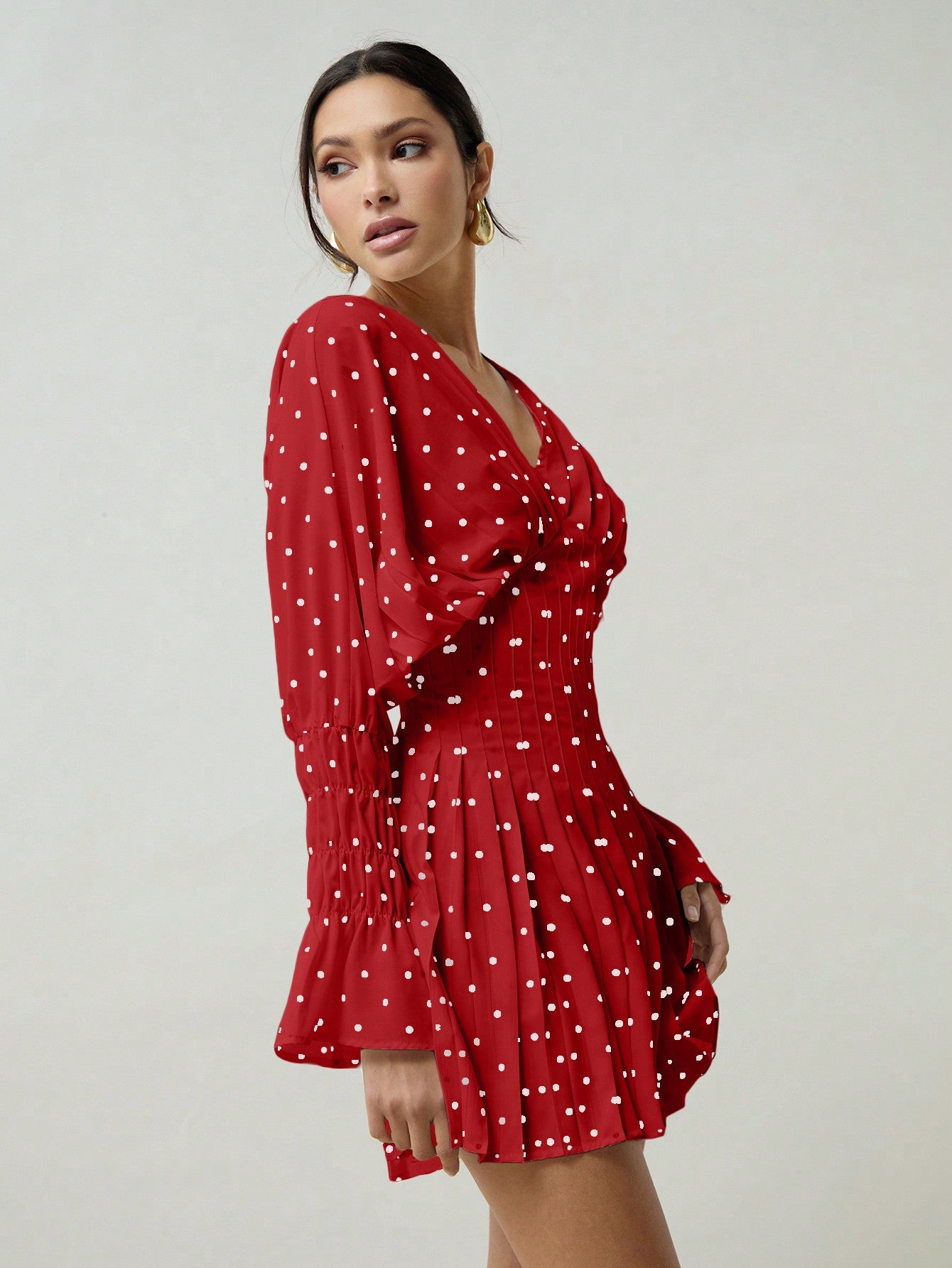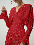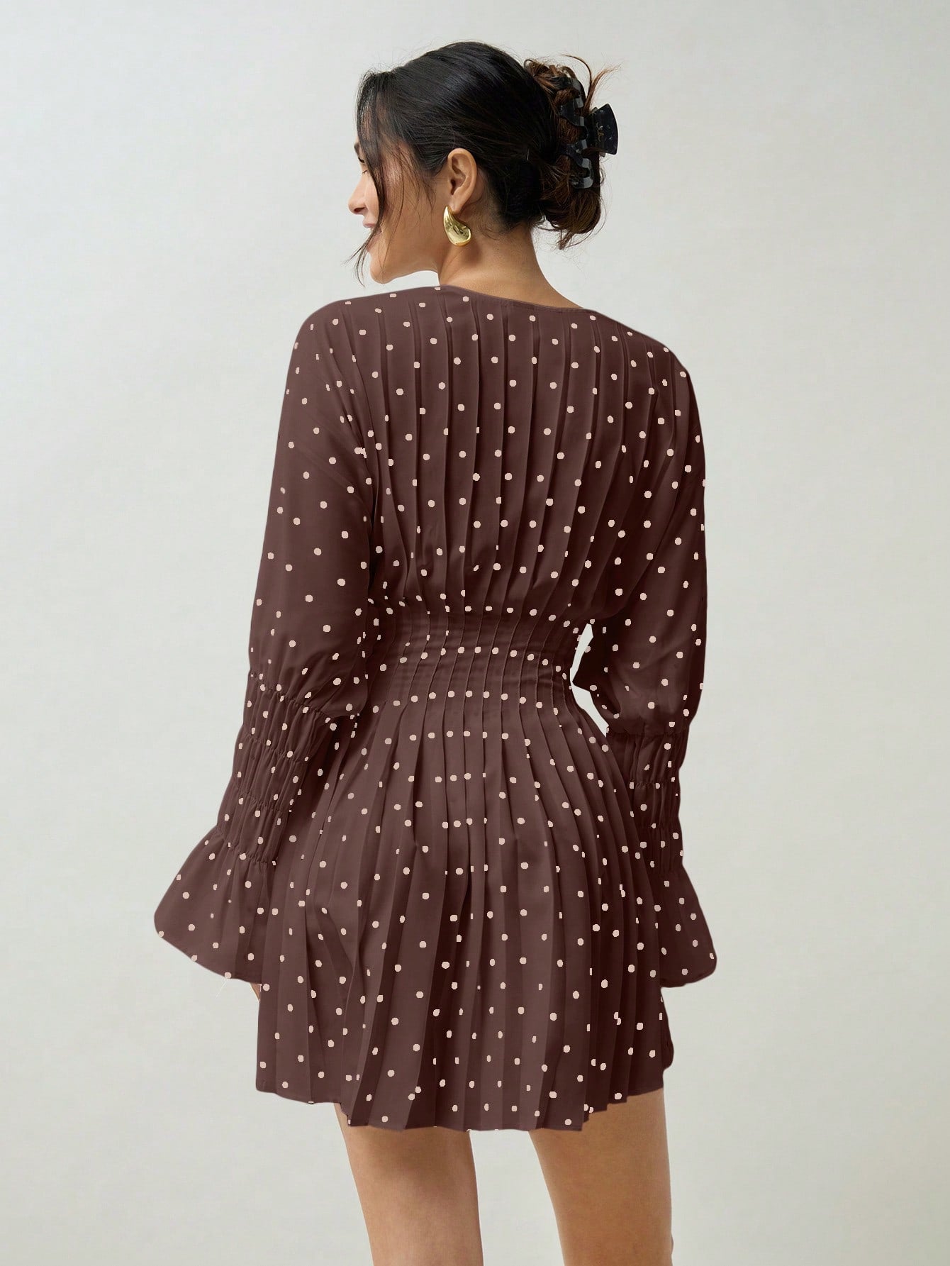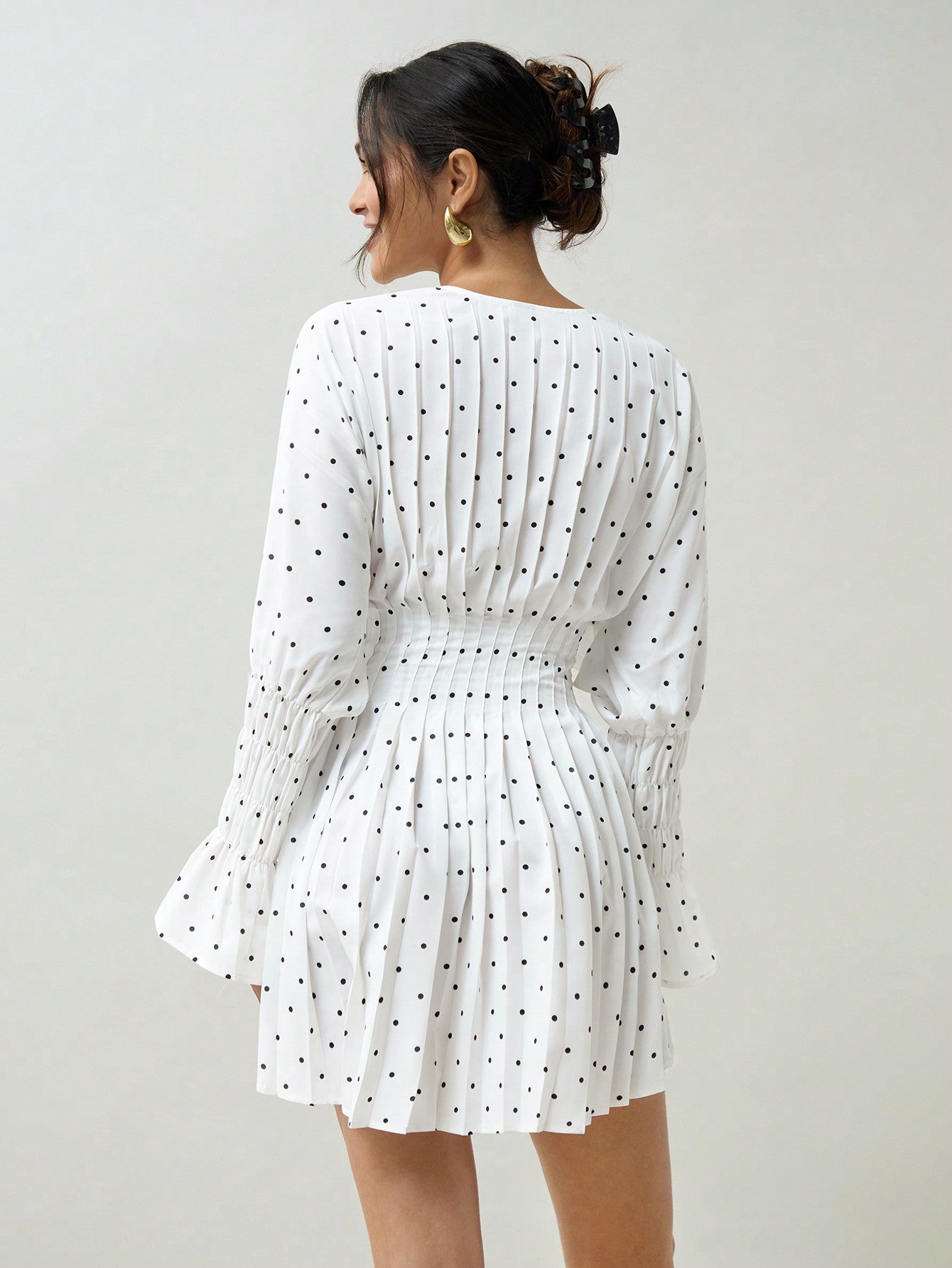 Chic and Timeless: Women's Polka Dot Pleated V-Neck Dress