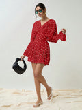 This stylish and elegant Women's V-Neck Dress features a classic polka dot pattern and flattering pleats. Made with high-quality materials, it's timeless and versatile, perfect for any occasion. The chic design and comfortable fit make it a must-have addition to any wardrobe.