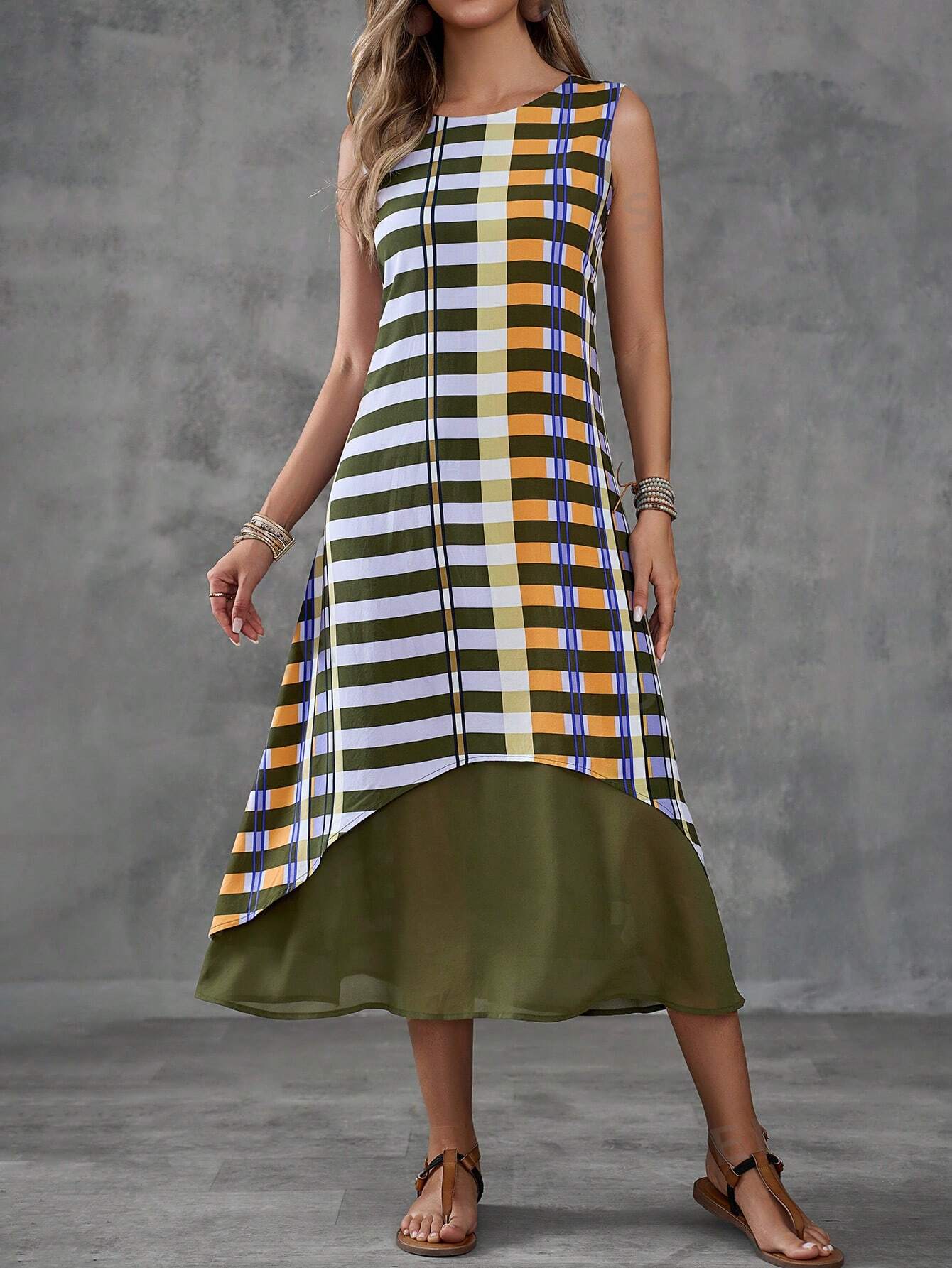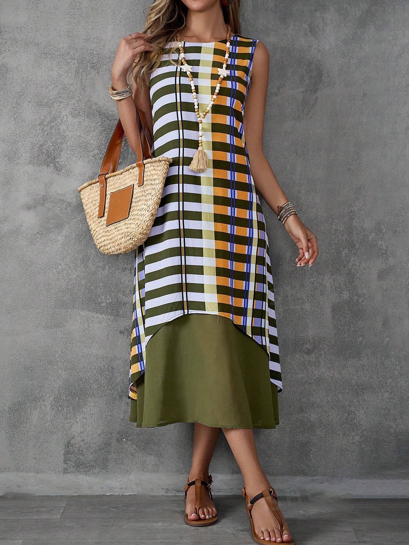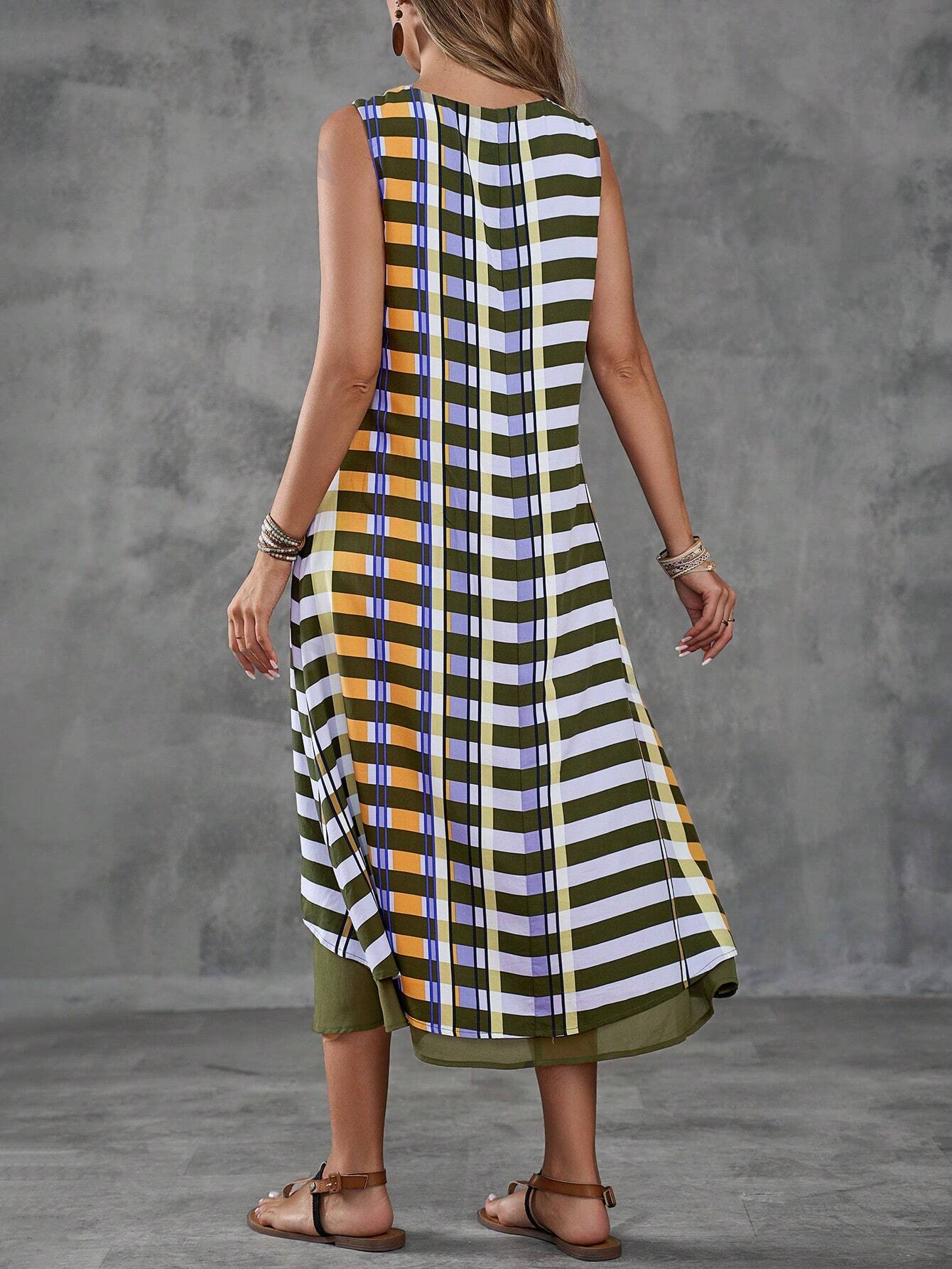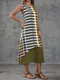Chic and Trendy: Color Block Striped Printed Sleeveless Dress
