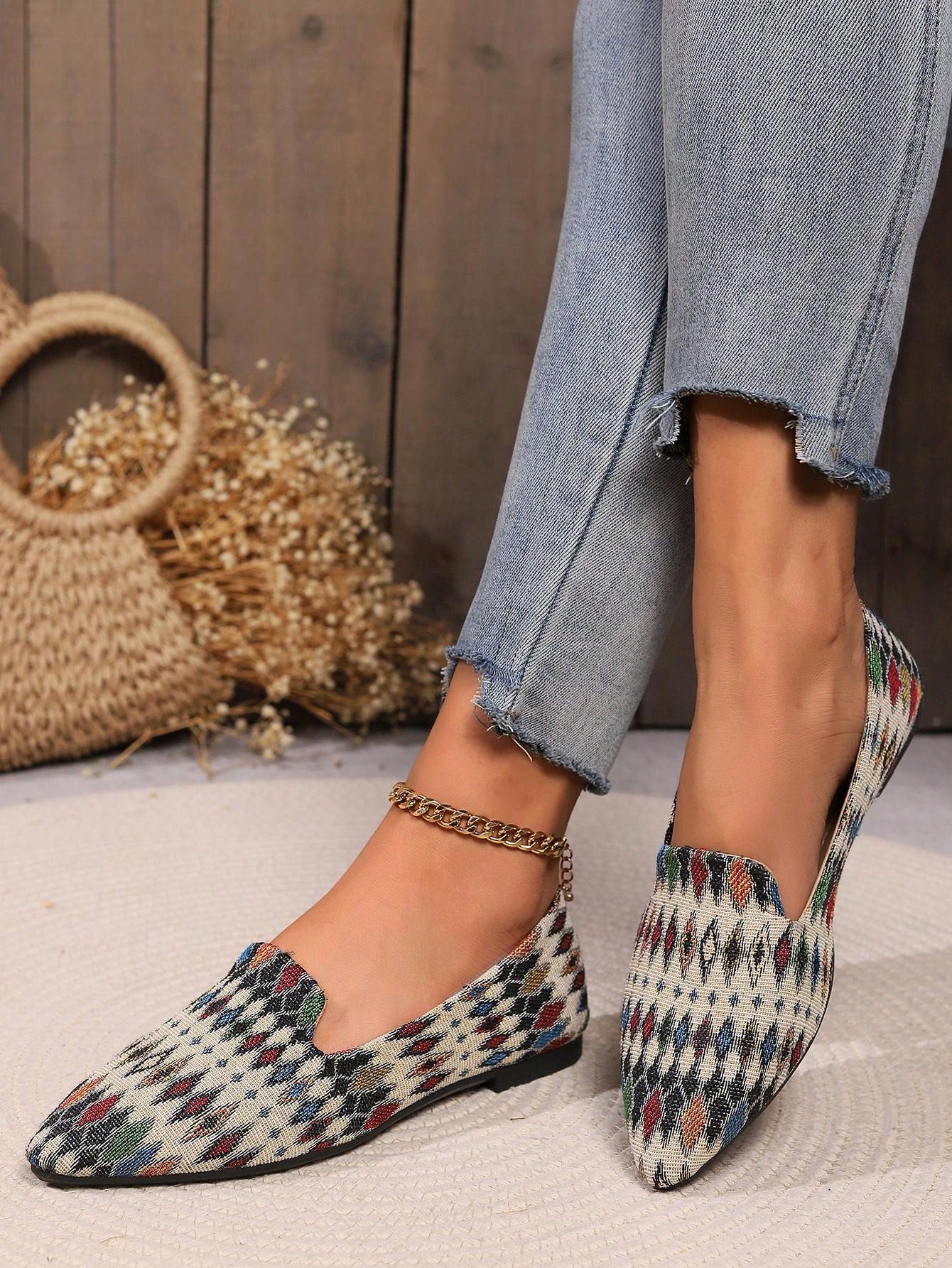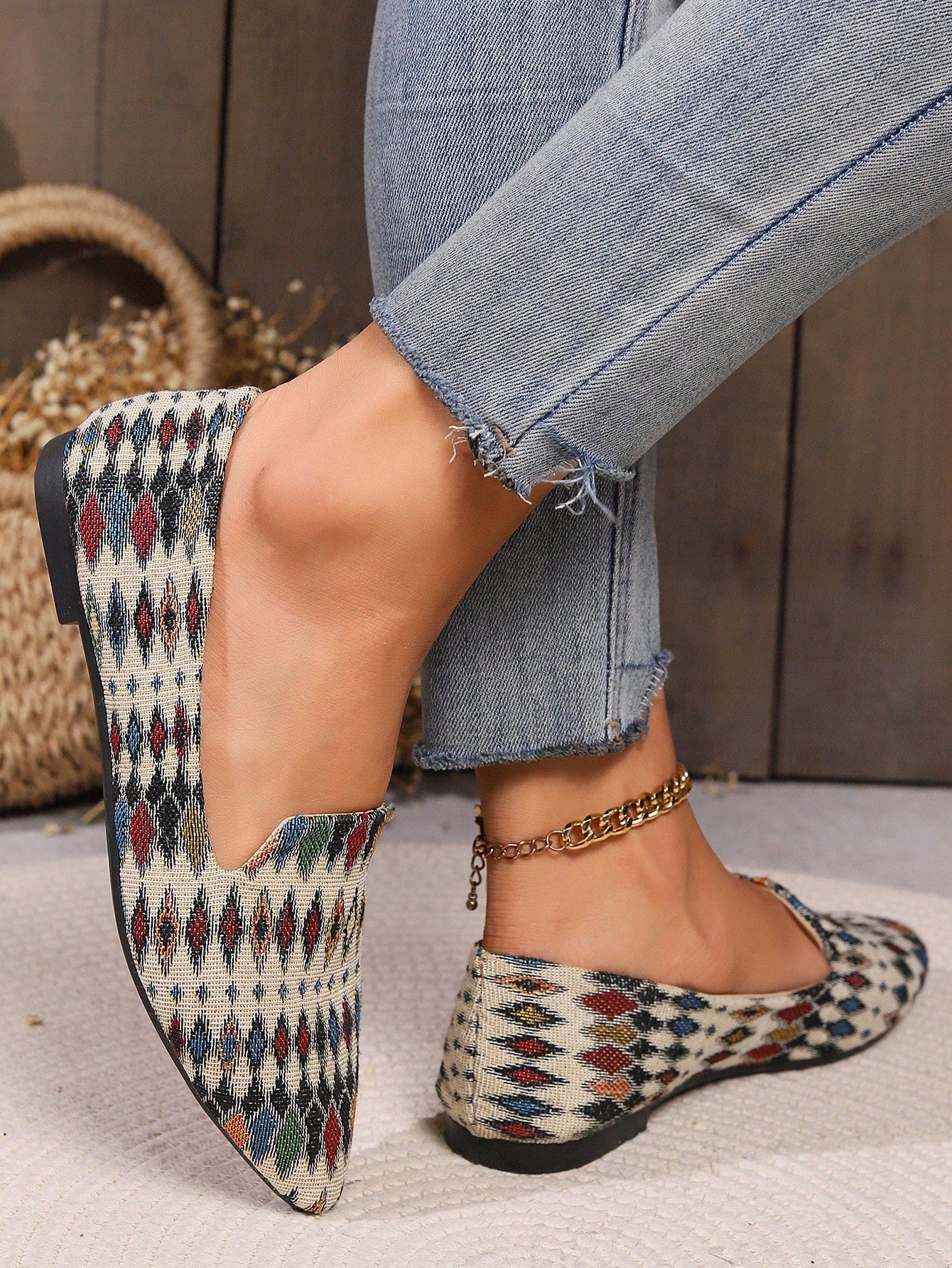 Chic Apricot Woven Diamond Pattern Flat Shoes - Breathable & Stylish for Every Occasion