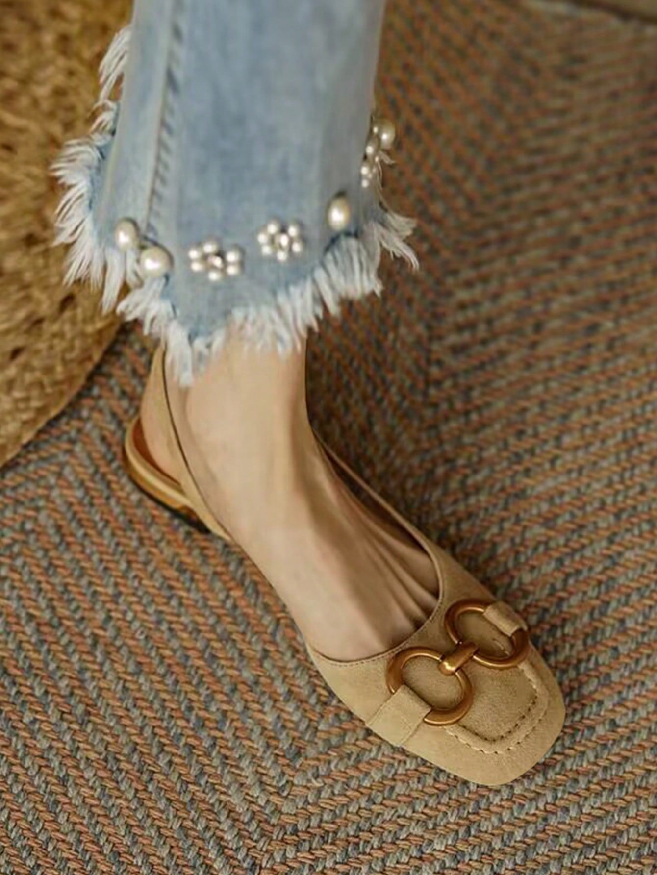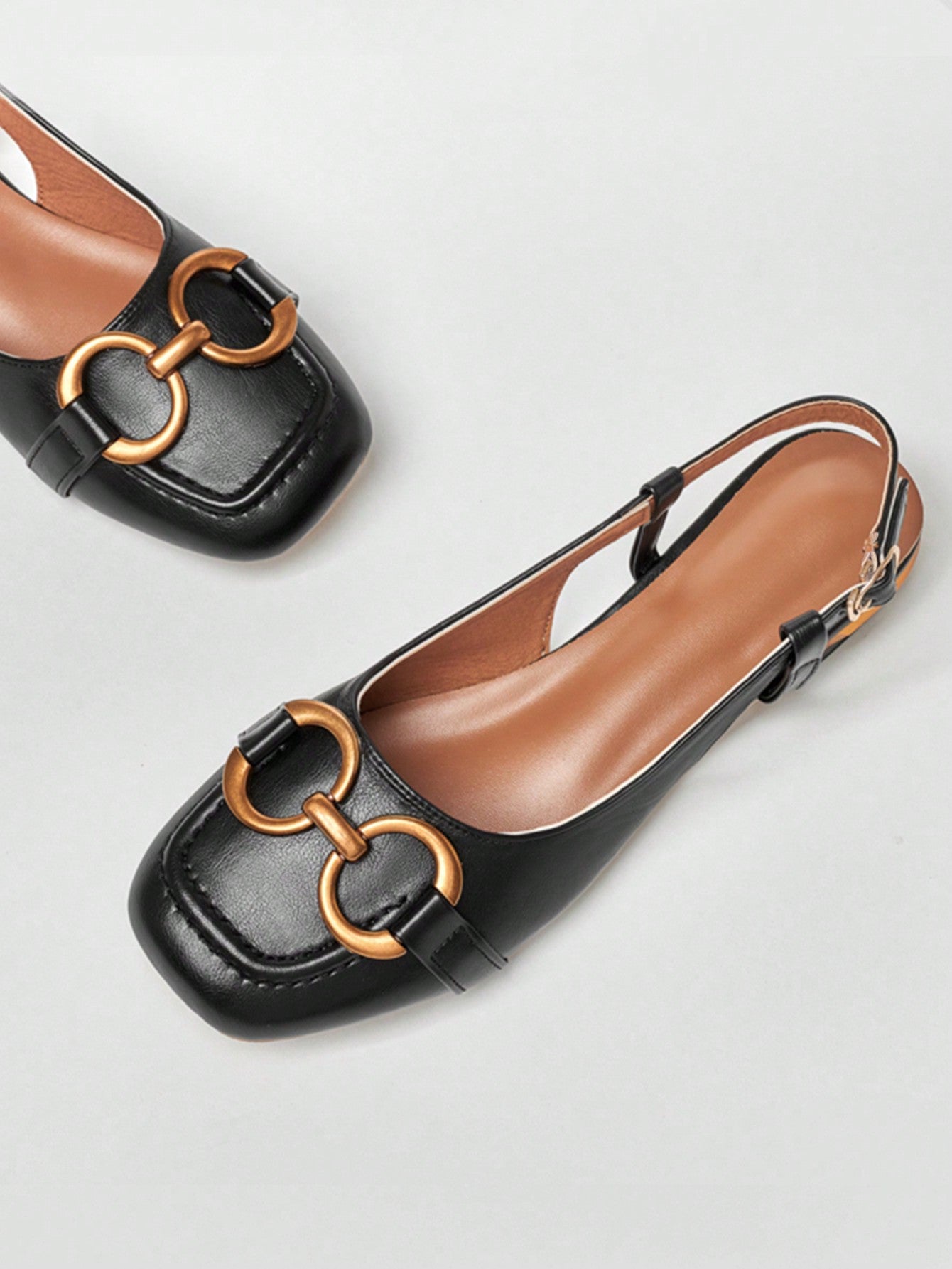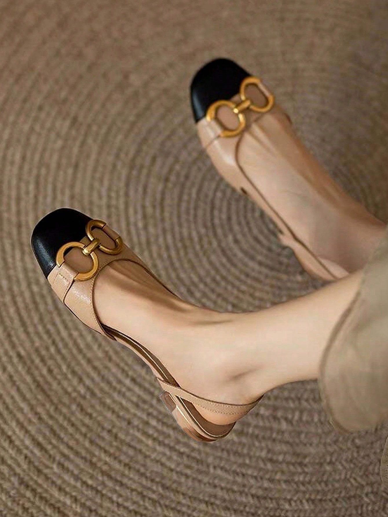 Chic Backless Strap Sandals with Metal Buckle - Trendy Low Chunky Heel for Spring/Summer