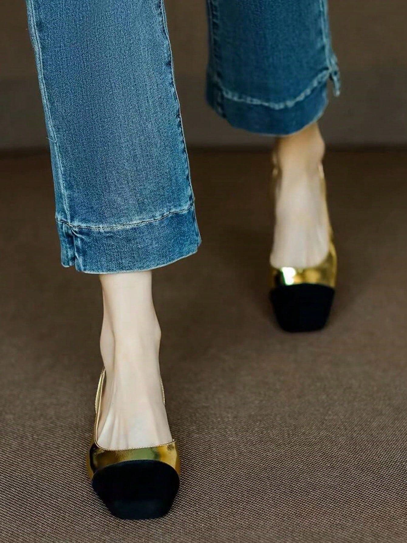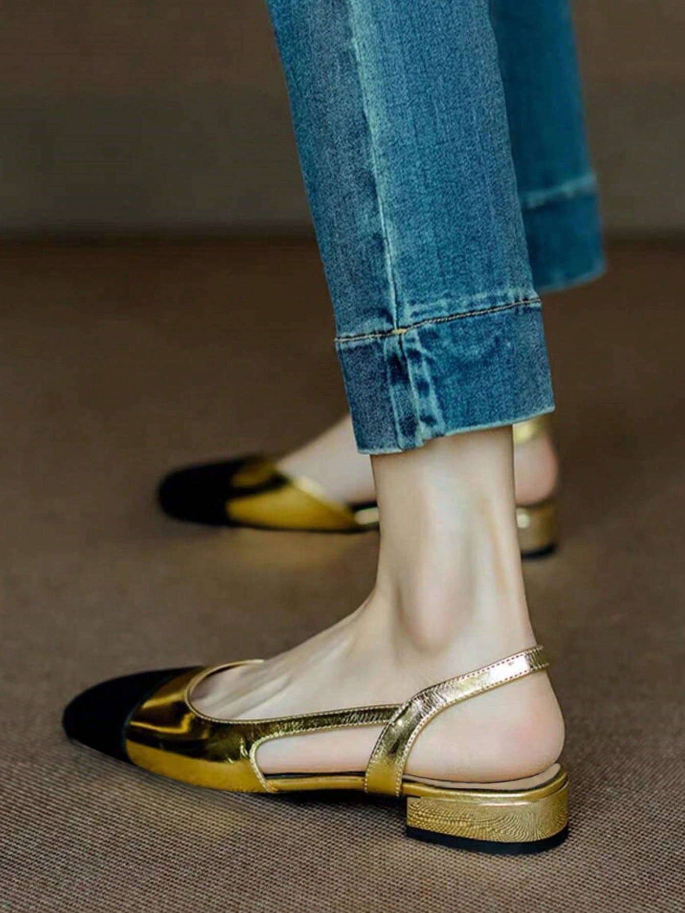 These chic backless strap sandals with metal buckle feature a trendy low chunky heel, perfect for spring and summer. The sleek design adds a touch of elegance to any outfit, while the buckle ensures a secure and comfortable fit. Step out in style with these stylish sandals.