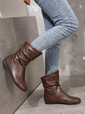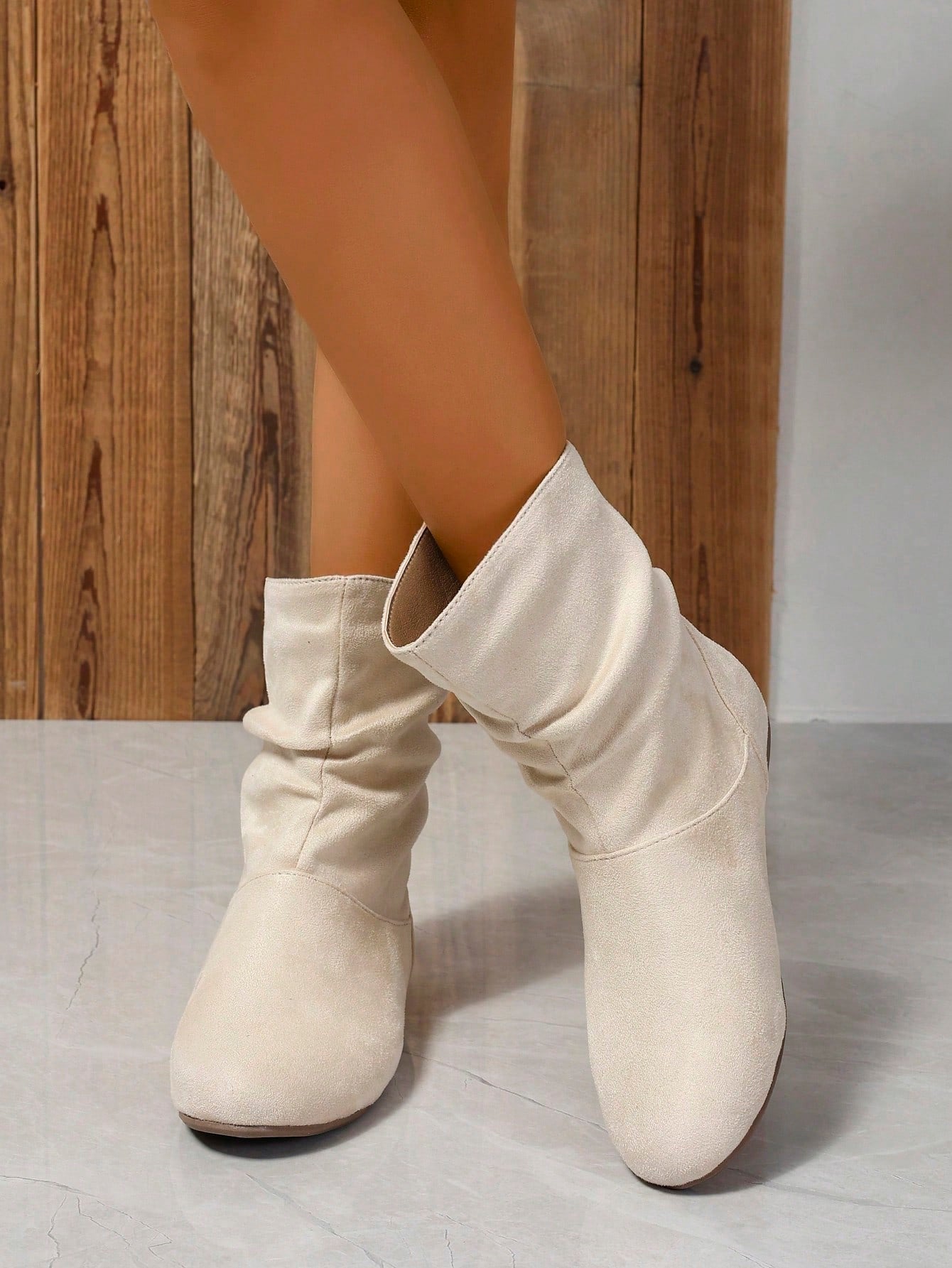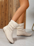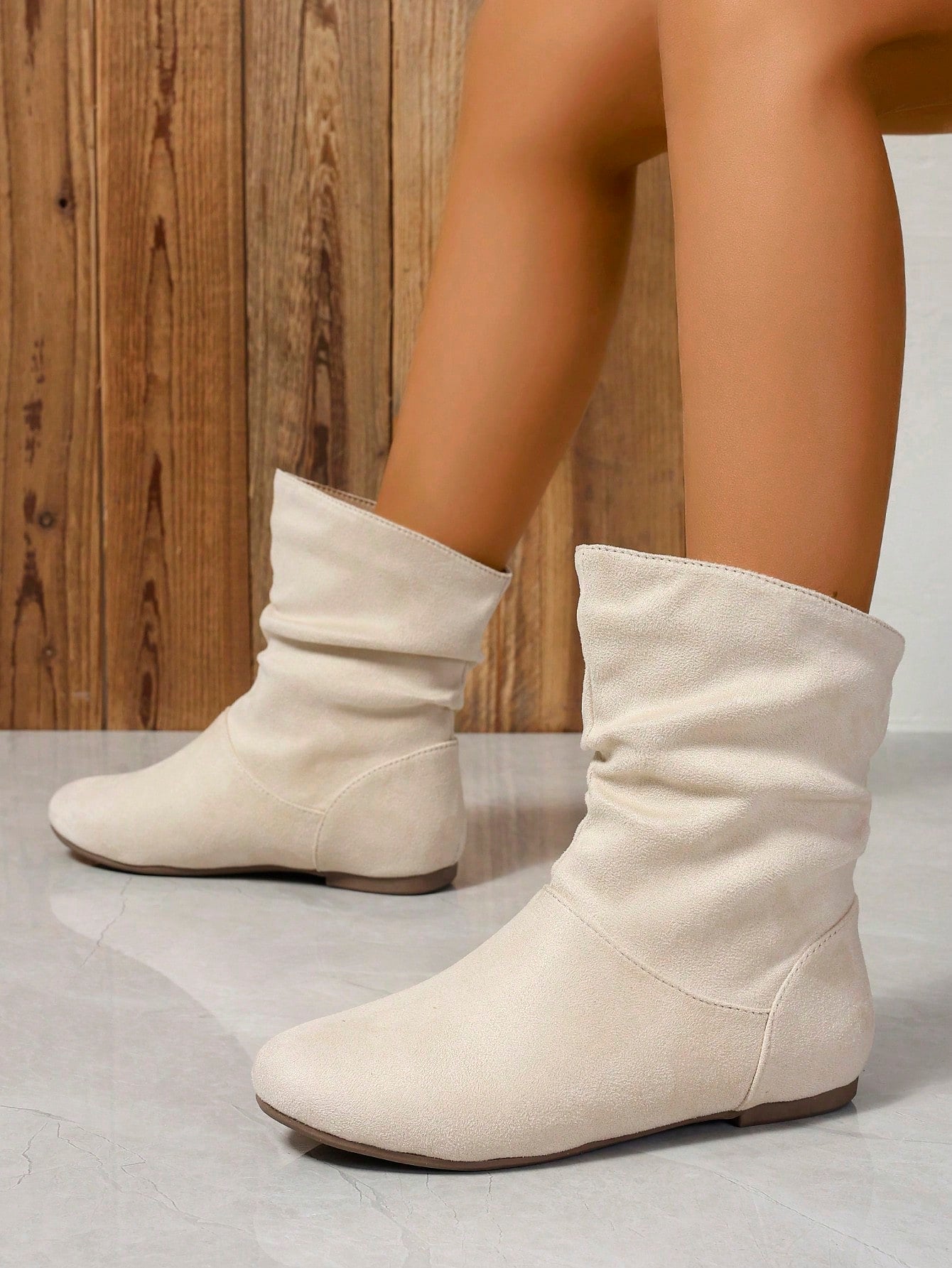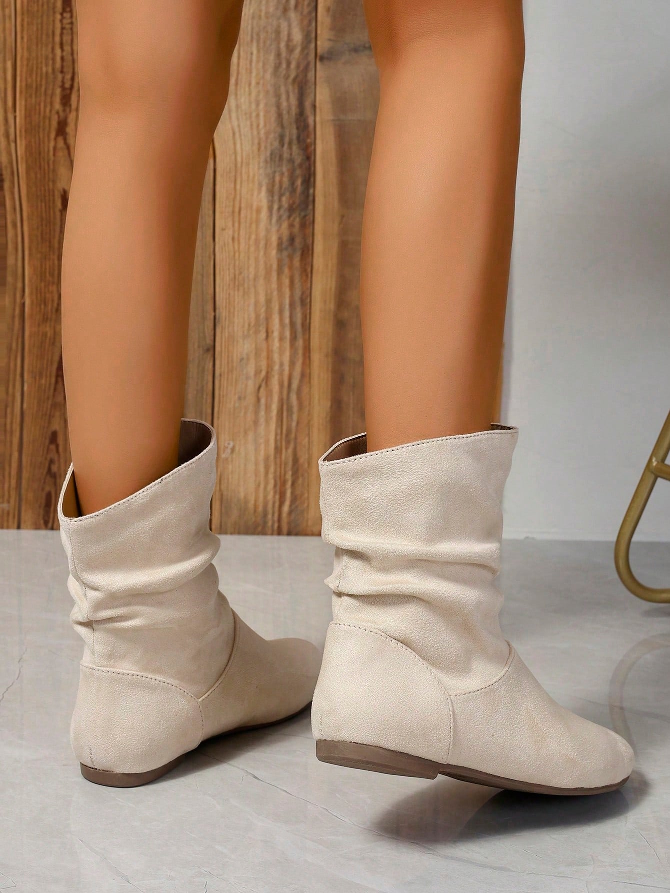 Chic Beige Crinkled Flat Casual Boots for Effortless Style