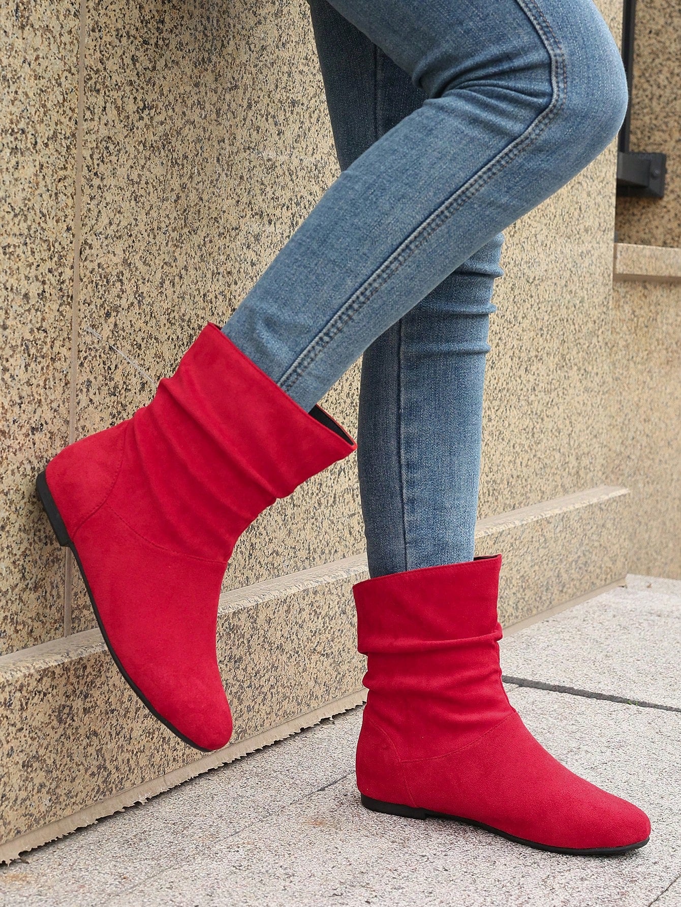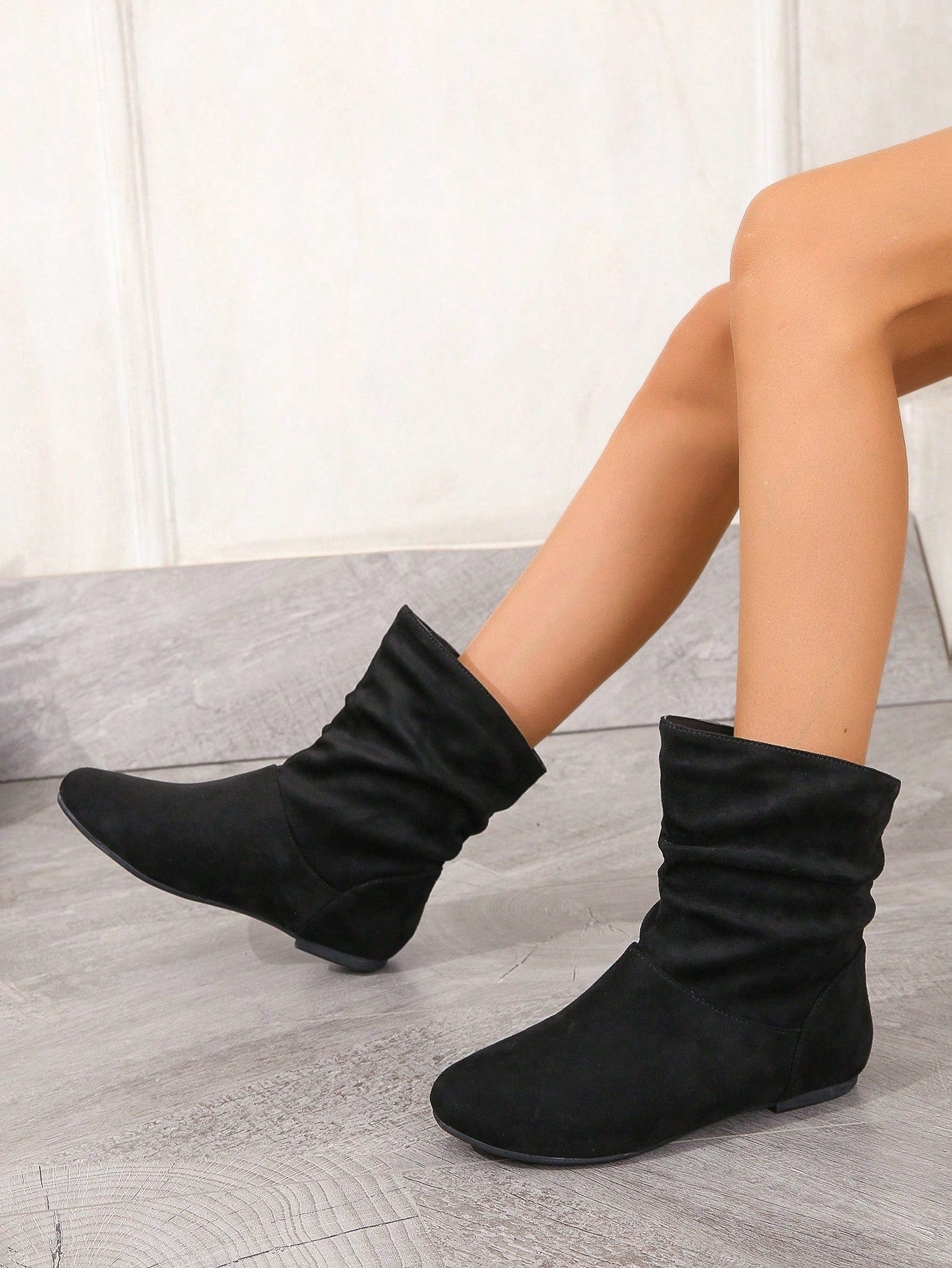 Upgrade your style effortlessly with our Chic Beige Crinkled Flat Casual Boots. Made with crinkled fabric, these boots add a subtle texture to any outfit. The flat heel provides comfort and stability, while the chic beige color effortlessly matches any look. Enhance your wardrobe with these versatile and stylish boots.