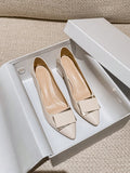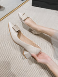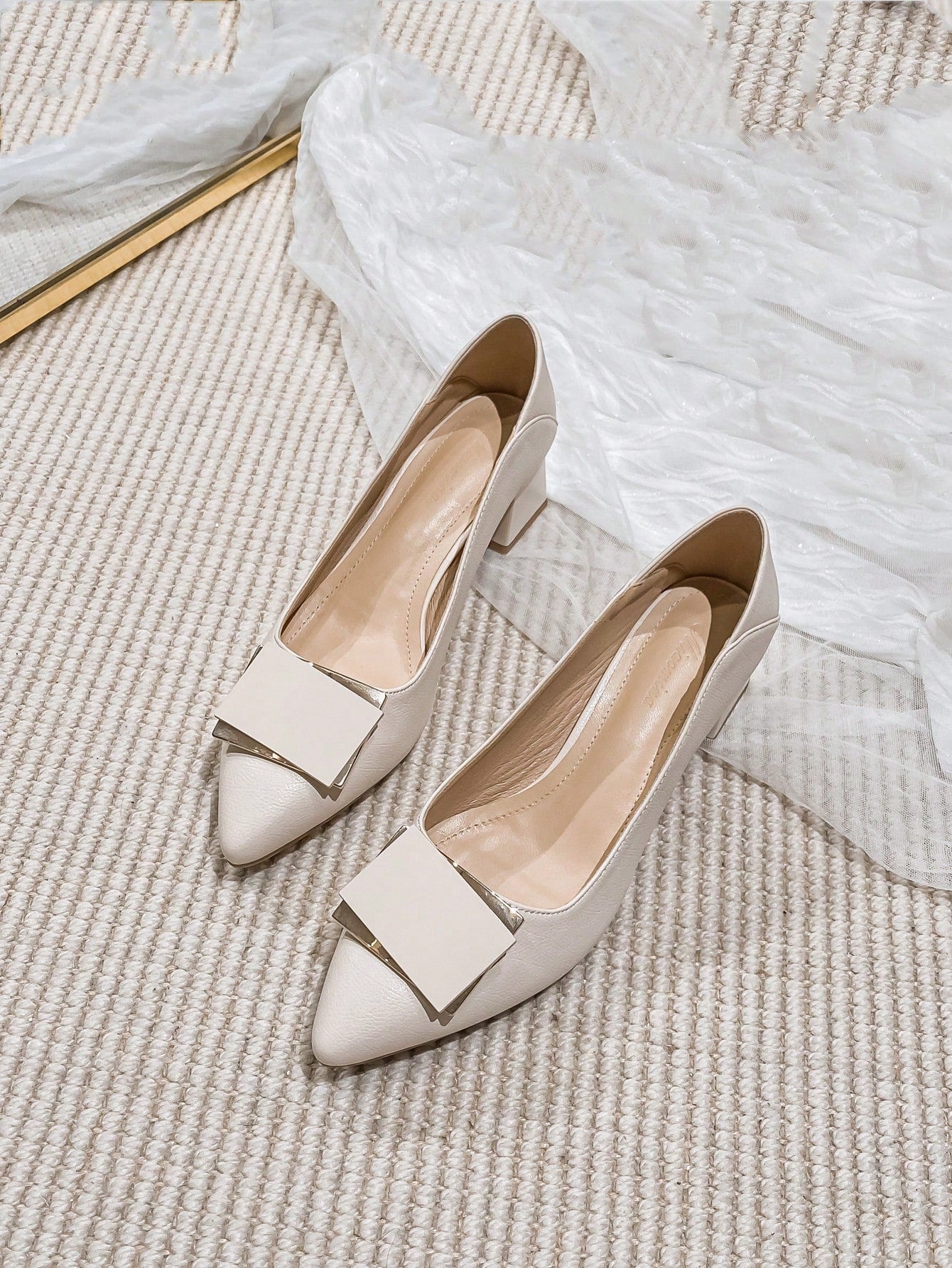 Chic Beige Metal Decor Chunky Heeled Pointed Toe Pumps