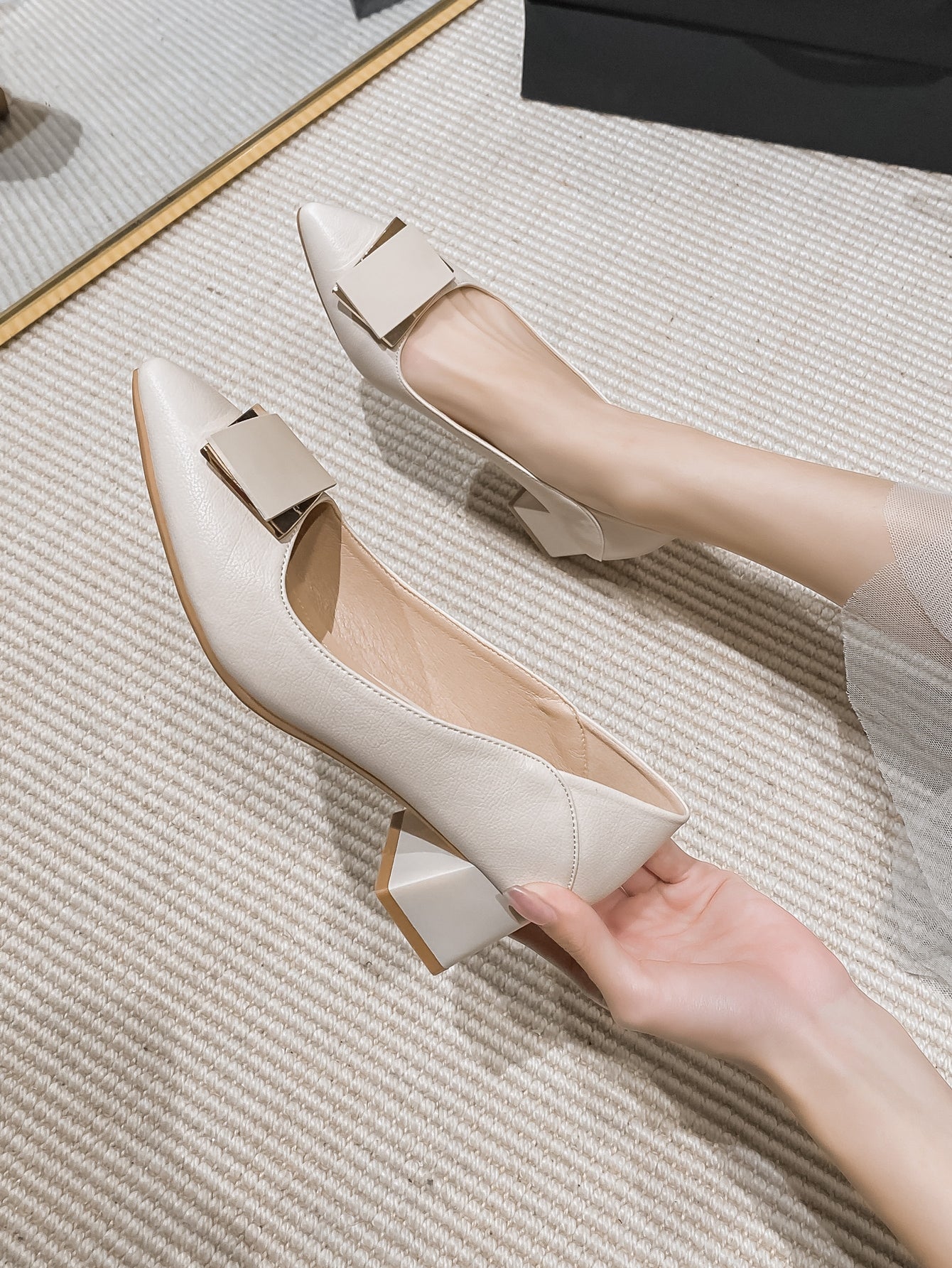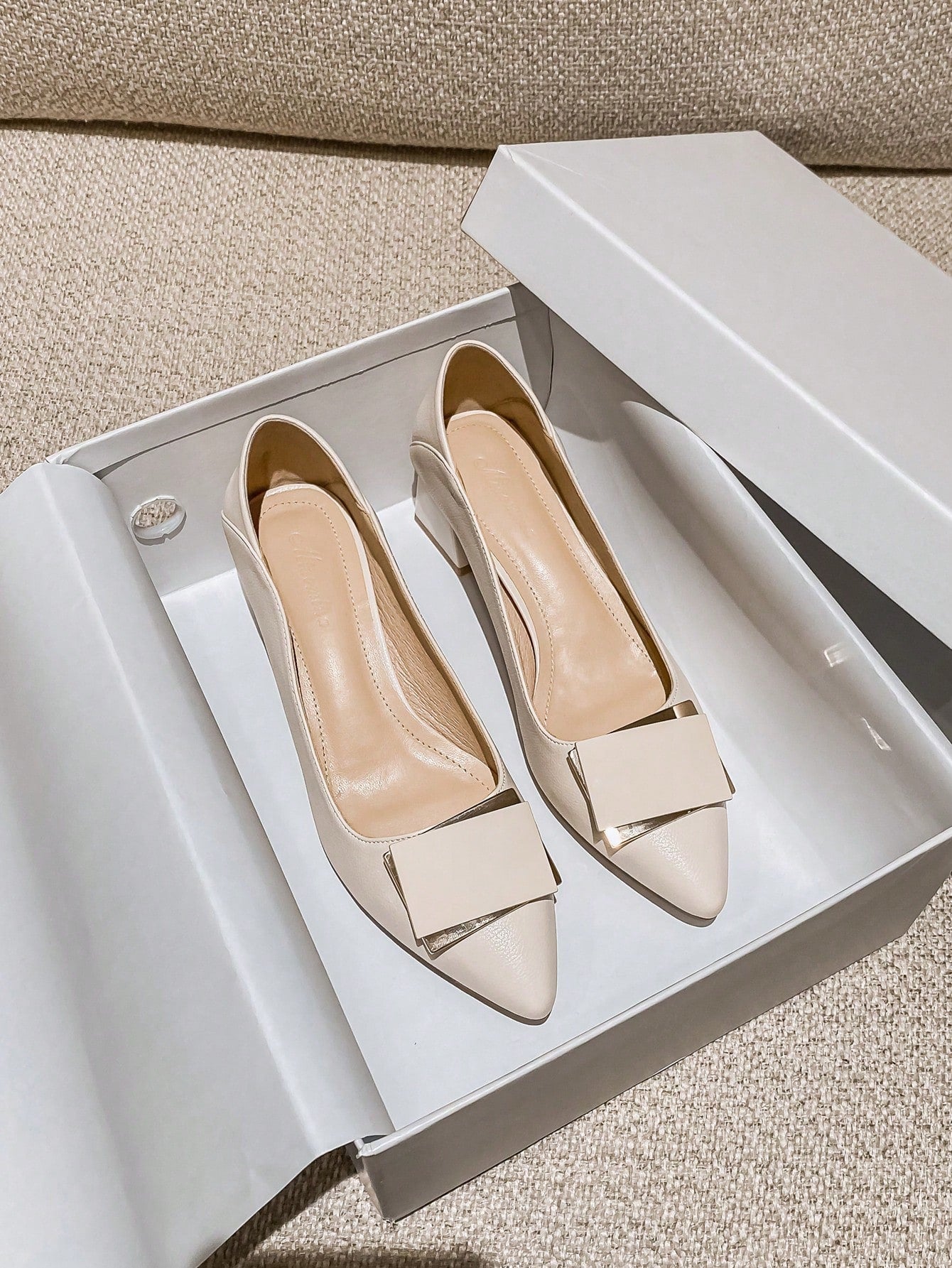 As an industry expert, enjoy these Chic Beige Metal Decor Chunky Heeled Pointed Toe Pumps for a professional, informative look. Made with a unique metal decoration and chunky heel, these pumps provide both style and comfort. Perfect for any formal occasion, these pumps elevate your outfit with their pointed toe design.