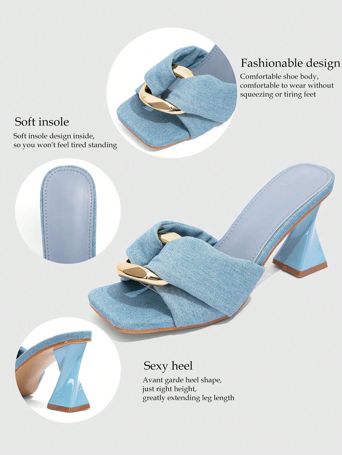 Chic Blue Pyramid Heeled Mules with Metallic Accents for Stylish Women