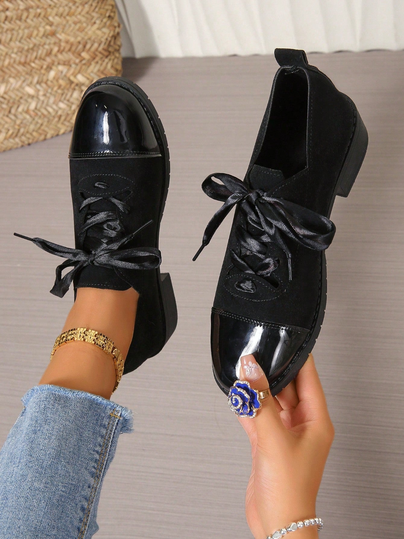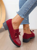 Chic Bow Tie High-Heel Casual Loafers - Stylish Thick Sole Leather Boots for Effortless Elegance