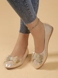 Chic Bowknot Flat Loafers for Women - Soft Anti-Slip Slip-On Shoes in Shimmery Gold and Silver Variants