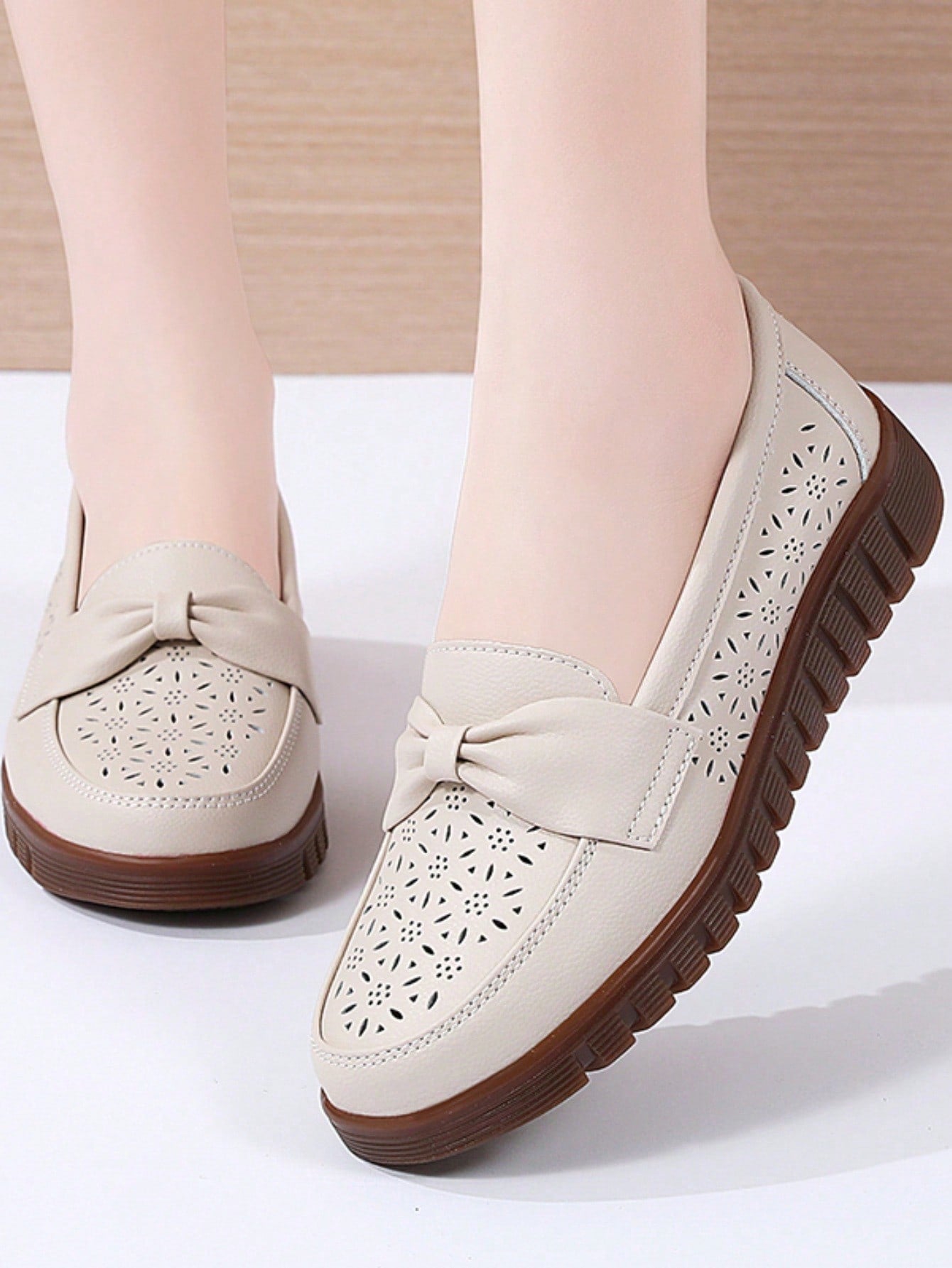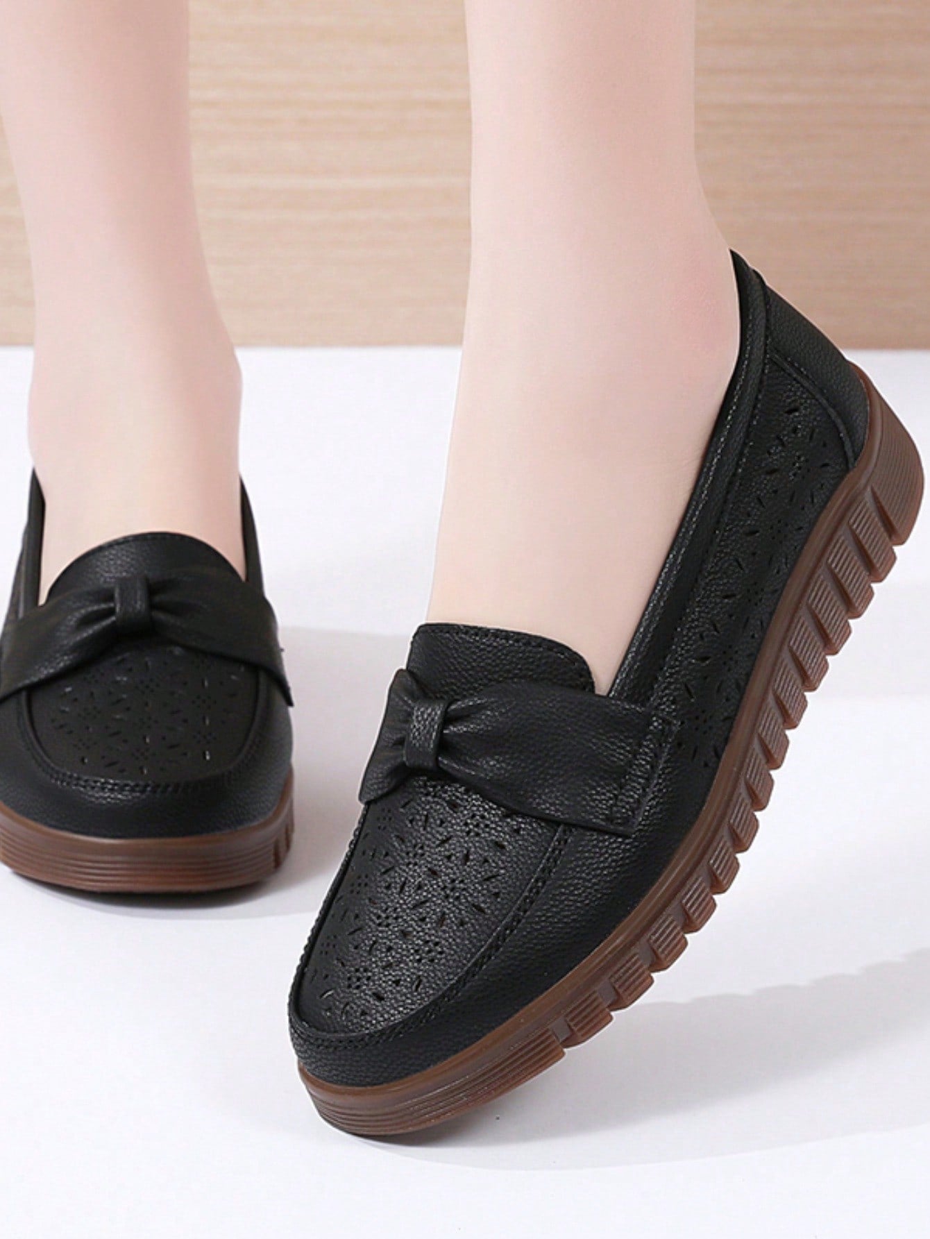 Chic Bowknot Slip-On Loafers with Cut-Out Patterns - Soft Sole Oxford Shoes for Effortless Style