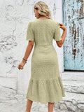 Chic & Breezy V-Neck Puff Sleeve Dress with Ruffle Hem
