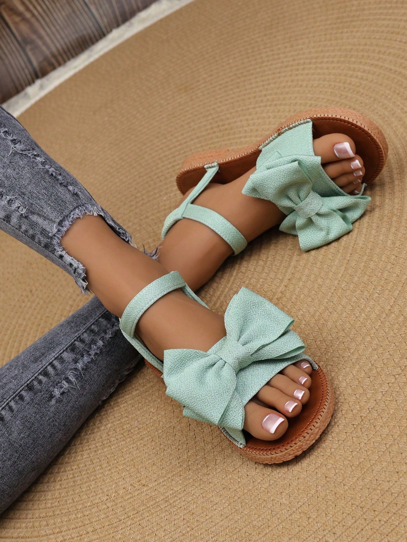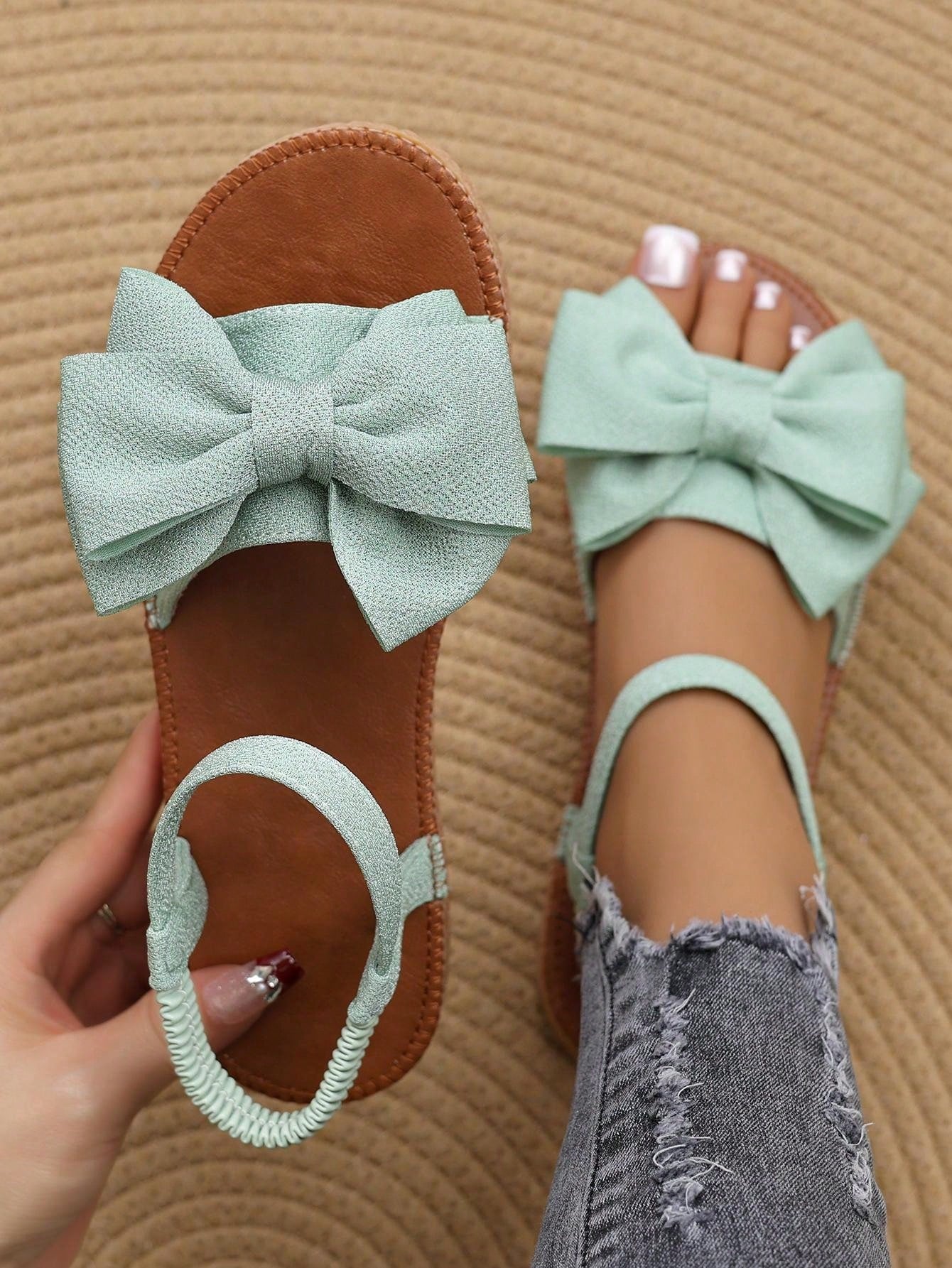 Chic British-Inspired Green Bowknot Slingback Sandals for Effortless Style