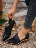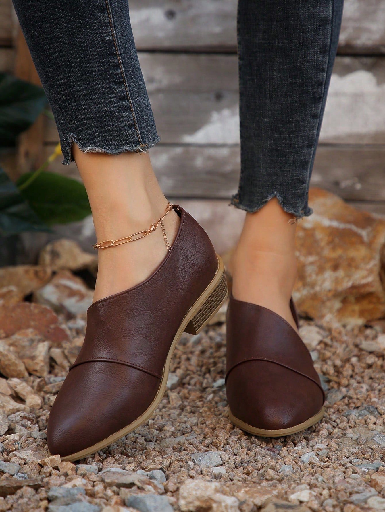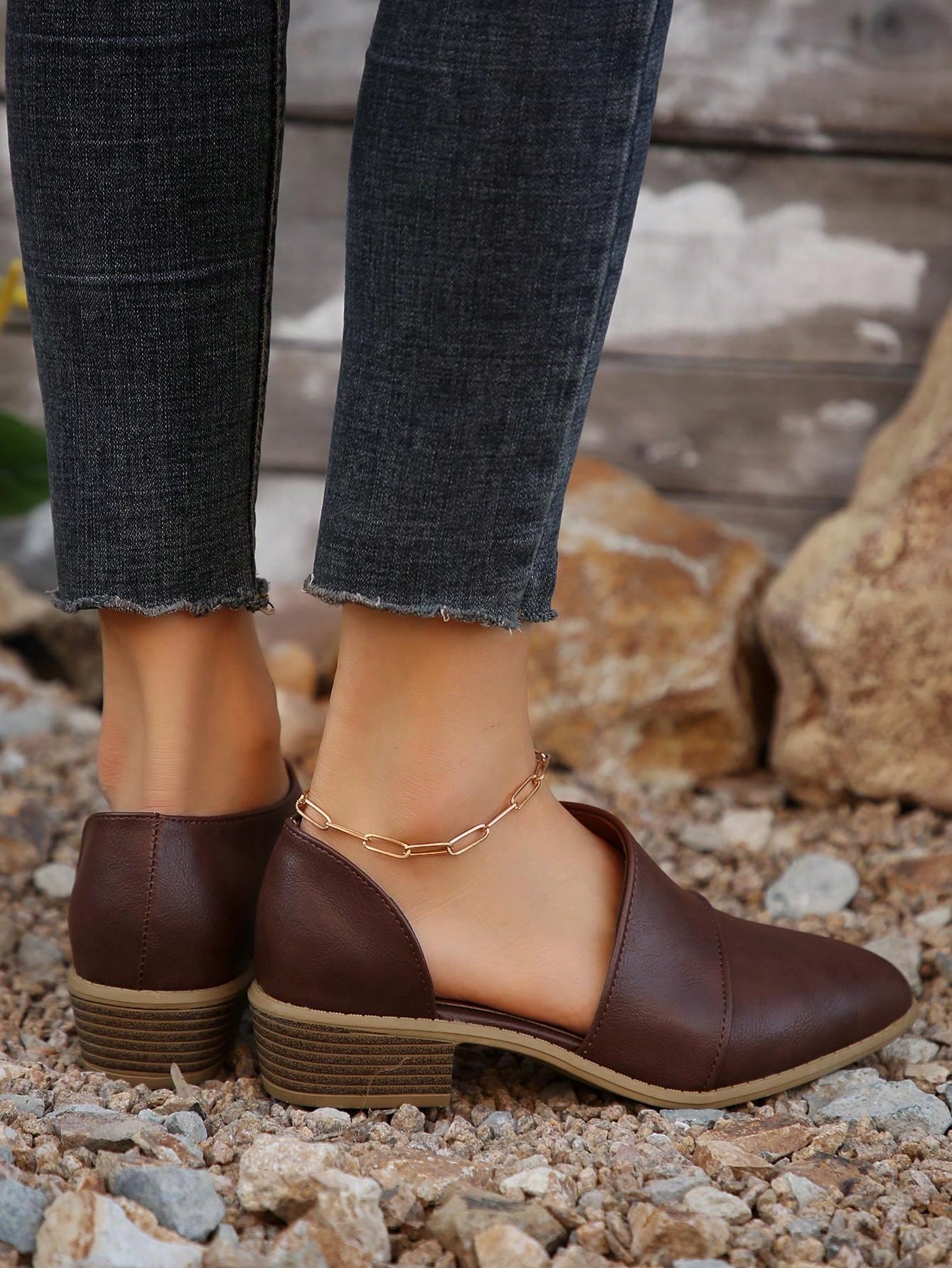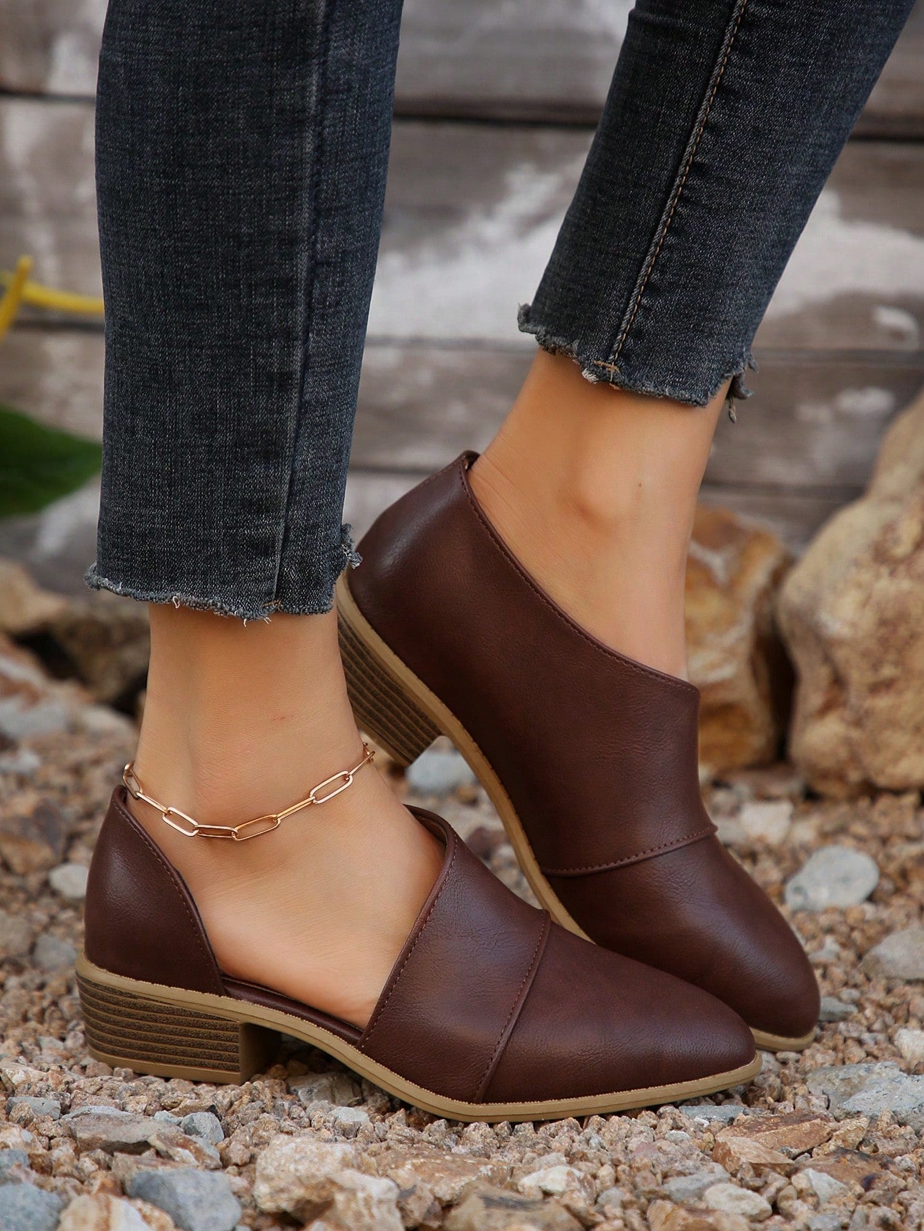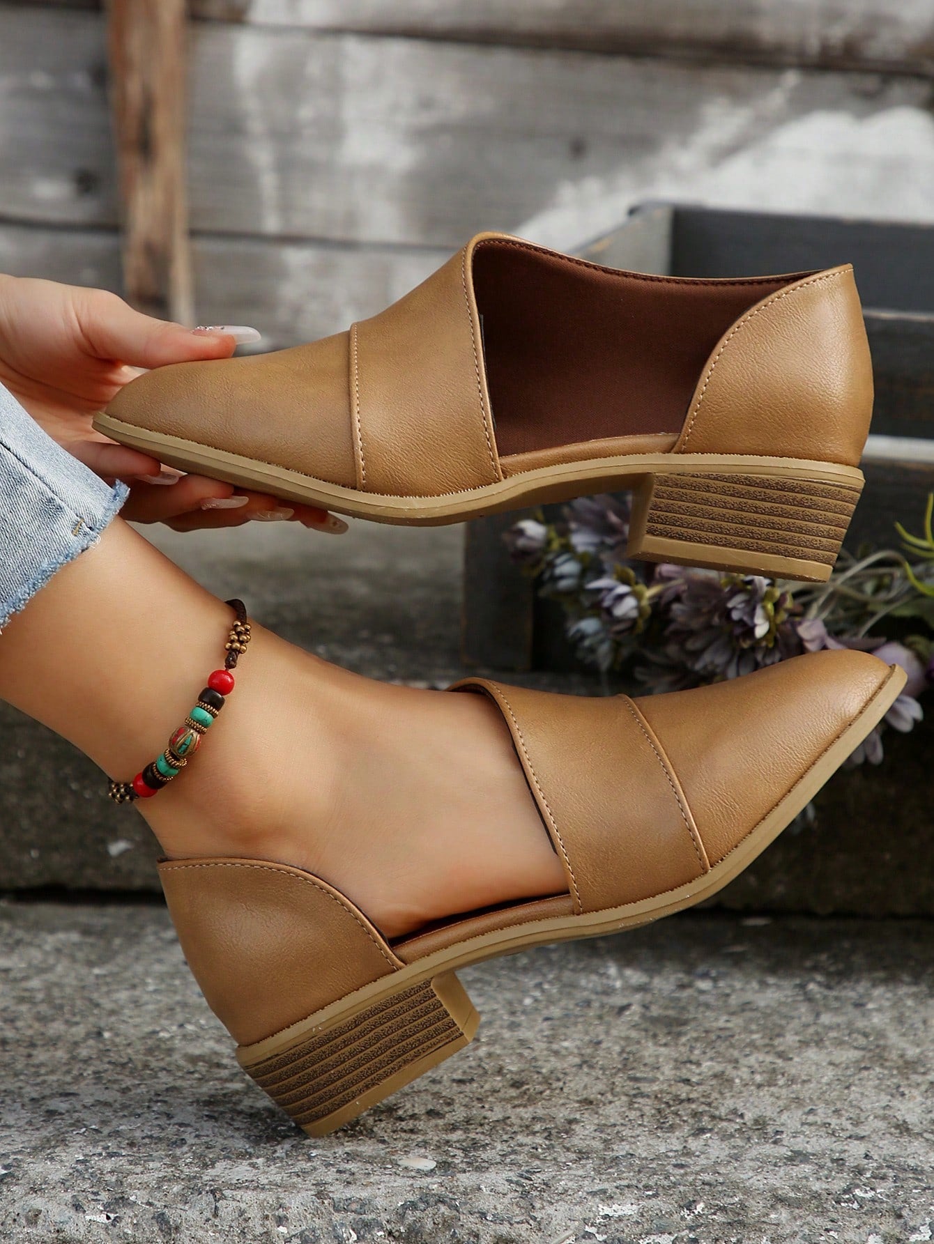 Chic Brown Pointed Toe Mules with Hollowed Sides and Chunky Heels for Effortless Elegance