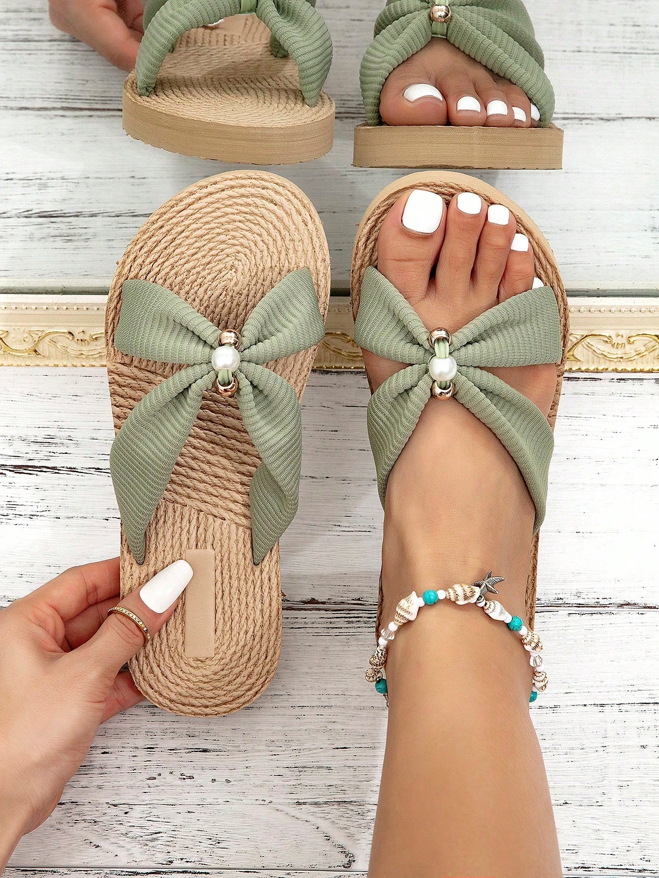 Chic Coastal Vibes: Stylish Flat Sandals with Thick Bottom and Linen Texture