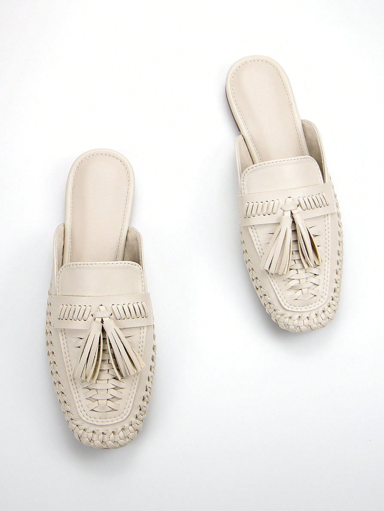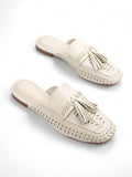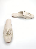 Chic Comfort: Women’s Beige Crinkled Microfiber Hand-Woven Slip-On Mule Loafers
