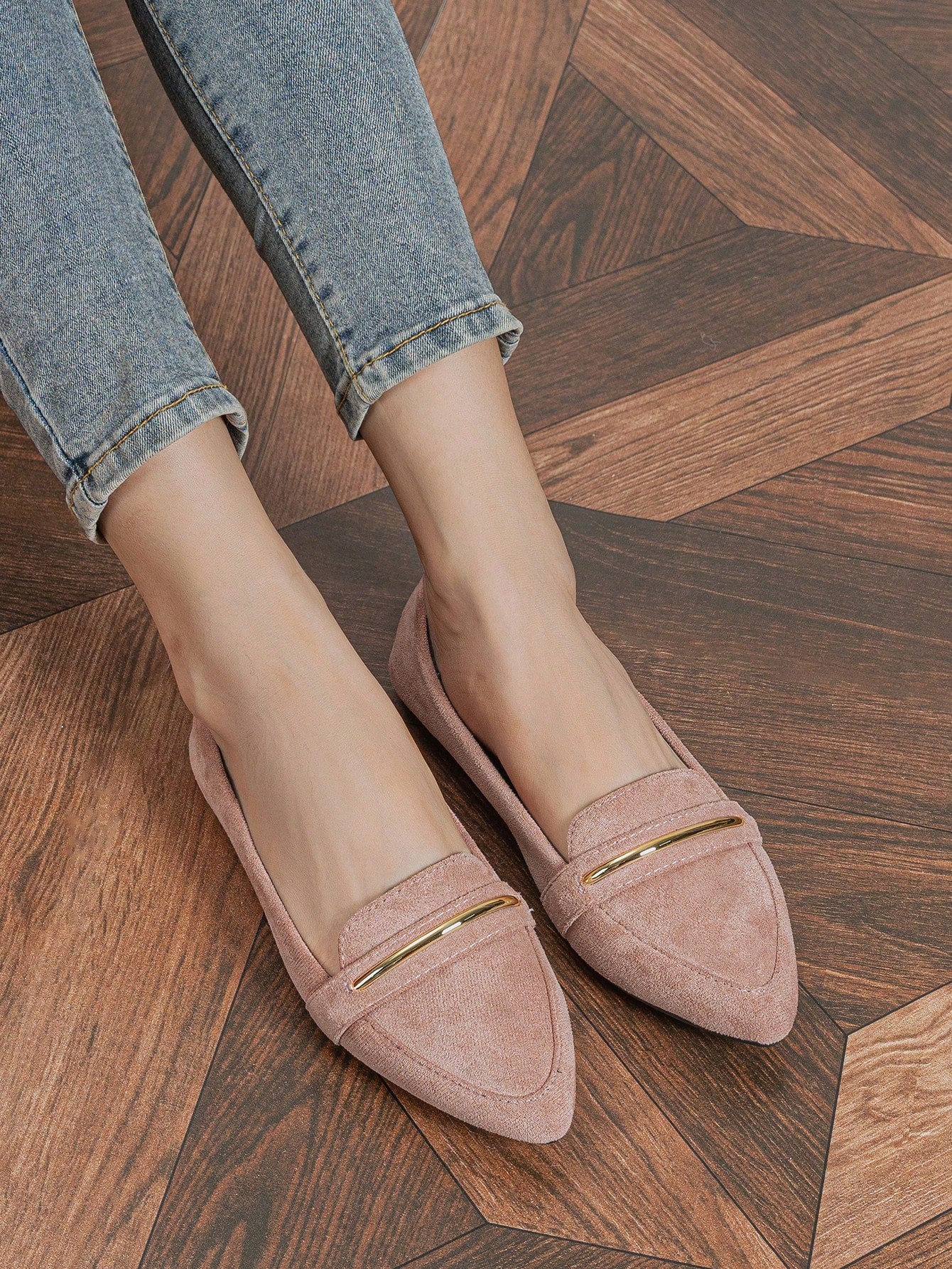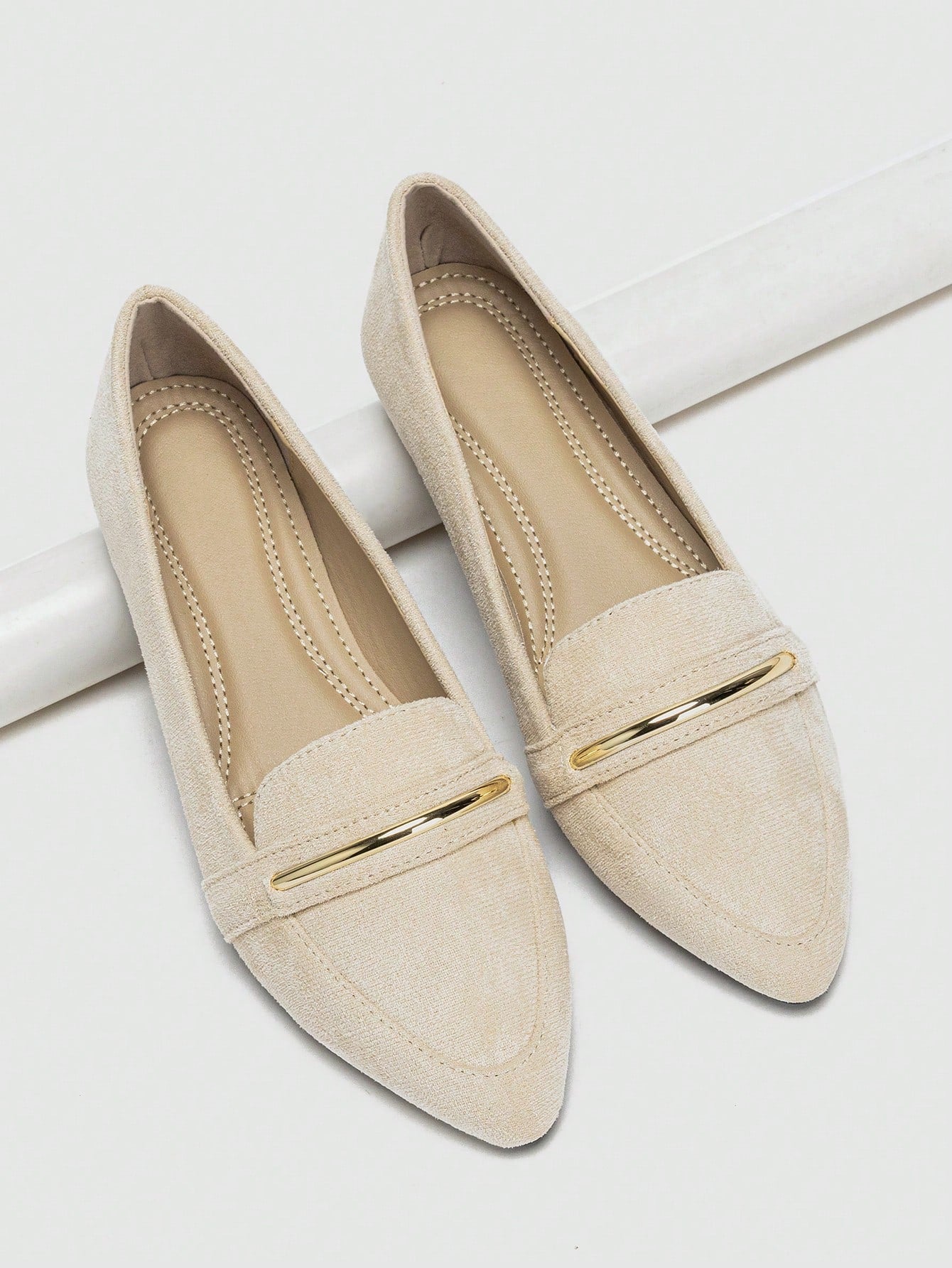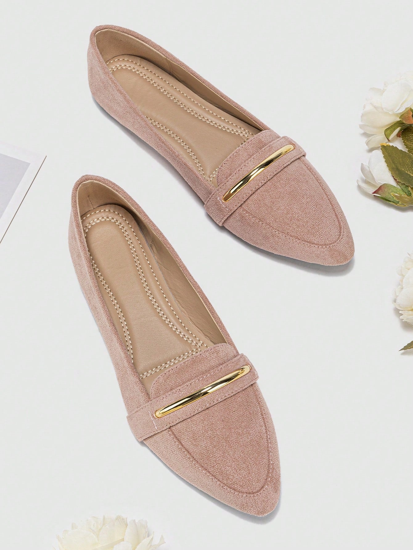 Chic Comfort: Women's Pointed Toe Flat Ballet Shoes with Metallic Strap