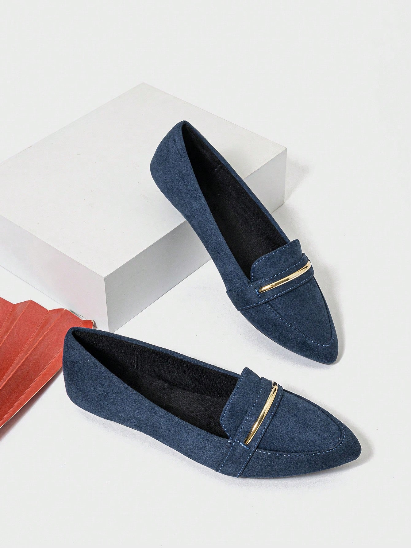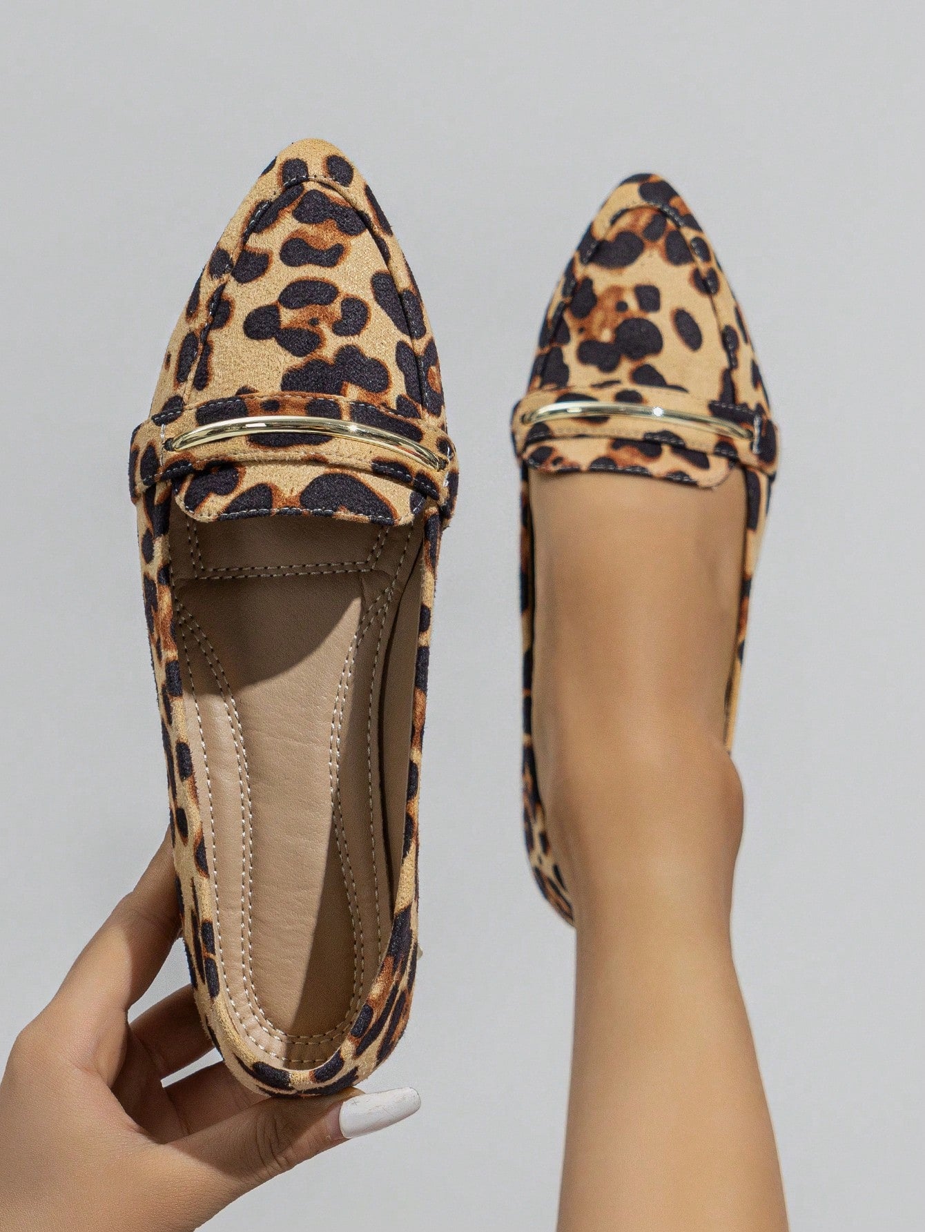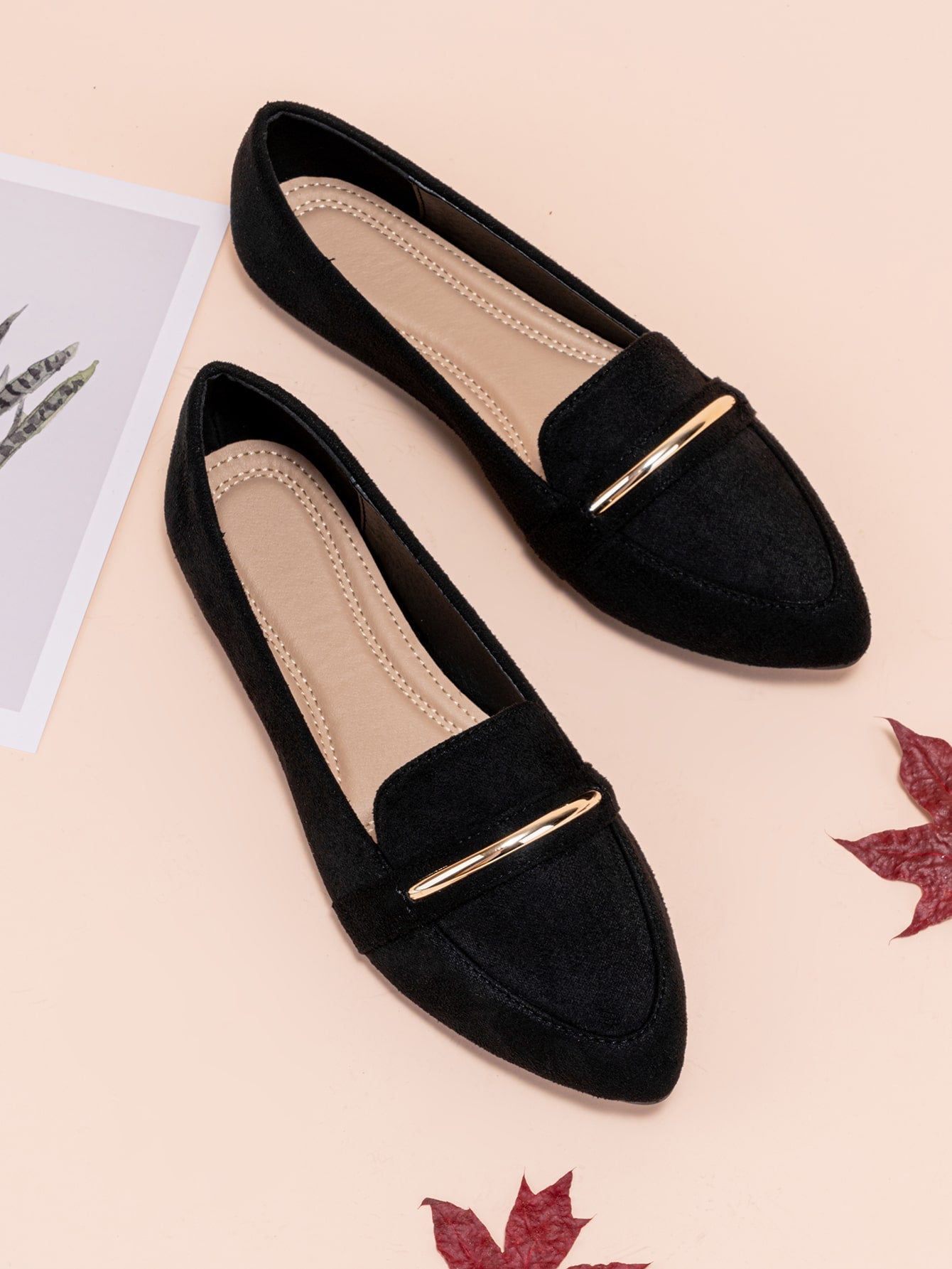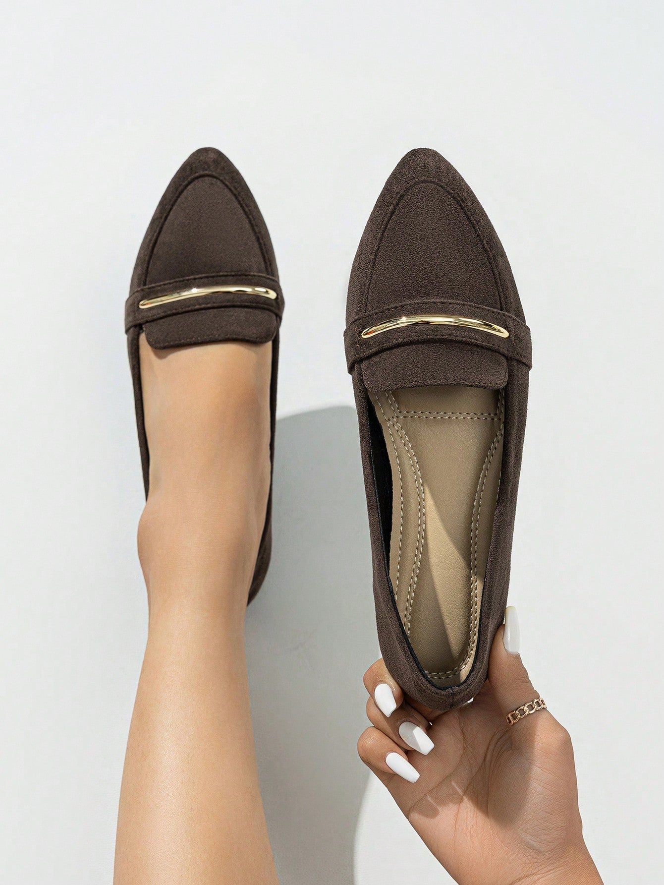 Chic Comfort: Women's Pointed Toe Flat Ballet Shoes with Metallic Strap
