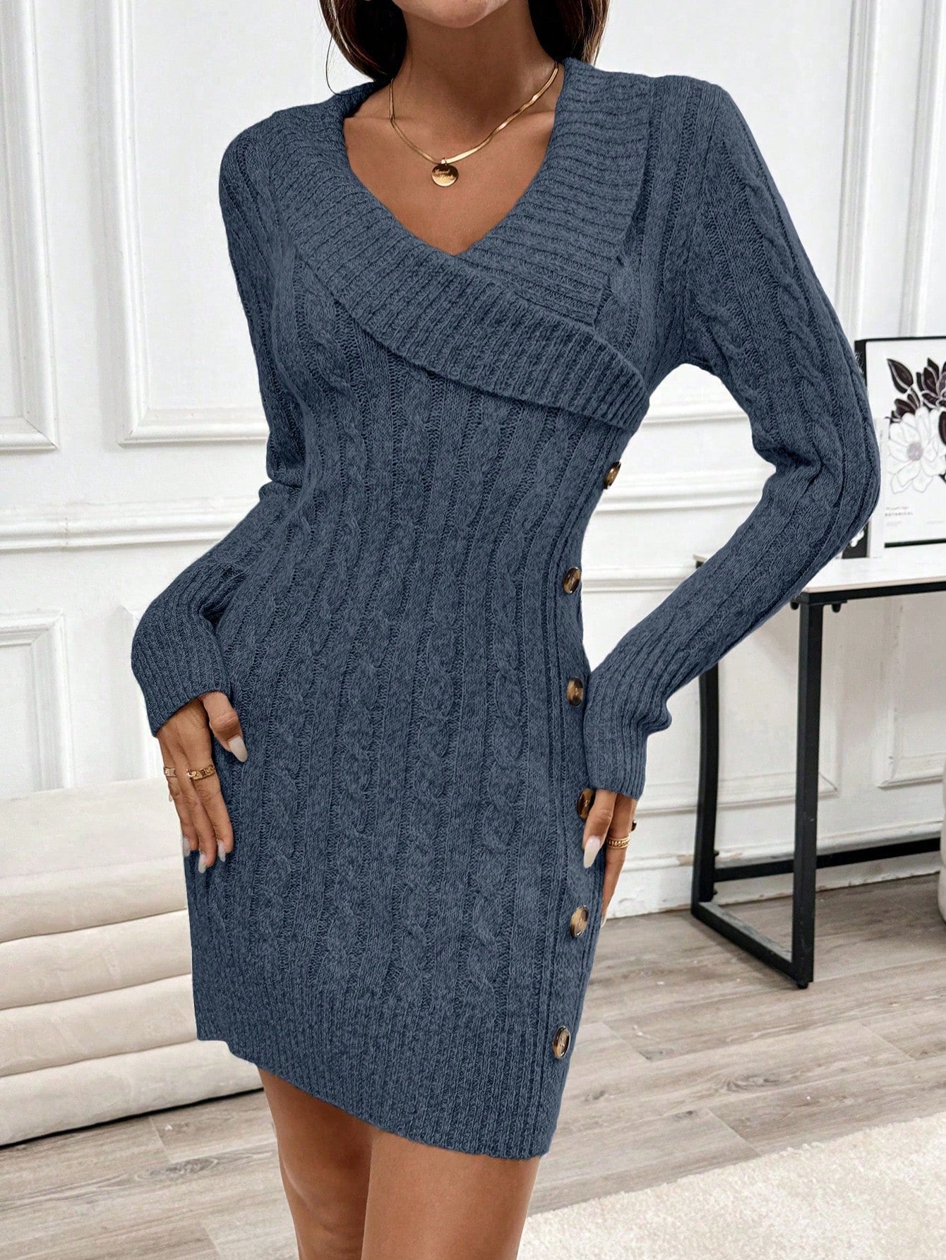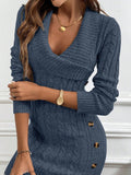 Chic & Cozy: Collared Knit Long Sleeve Sweater Dress