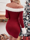 Chic & Cozy: Off-Shoulder Fuzzy Trim Sweater Dress