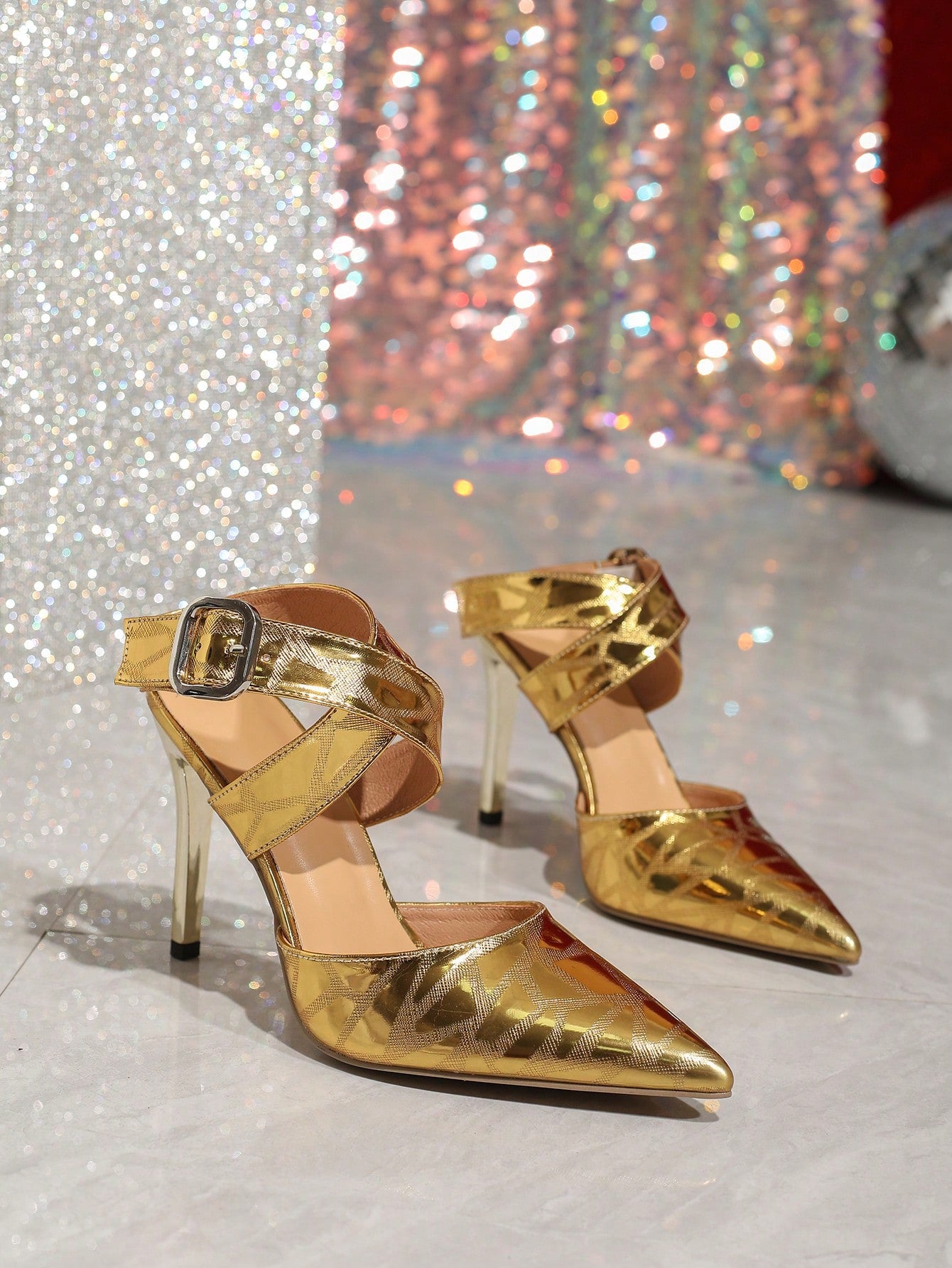 Chic Criss-Cross High-End Patent Leather Stiletto Sandals