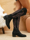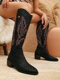 Chic Embroidered Knee-High Cowboy Boots with Pointed Toe & High Heel
